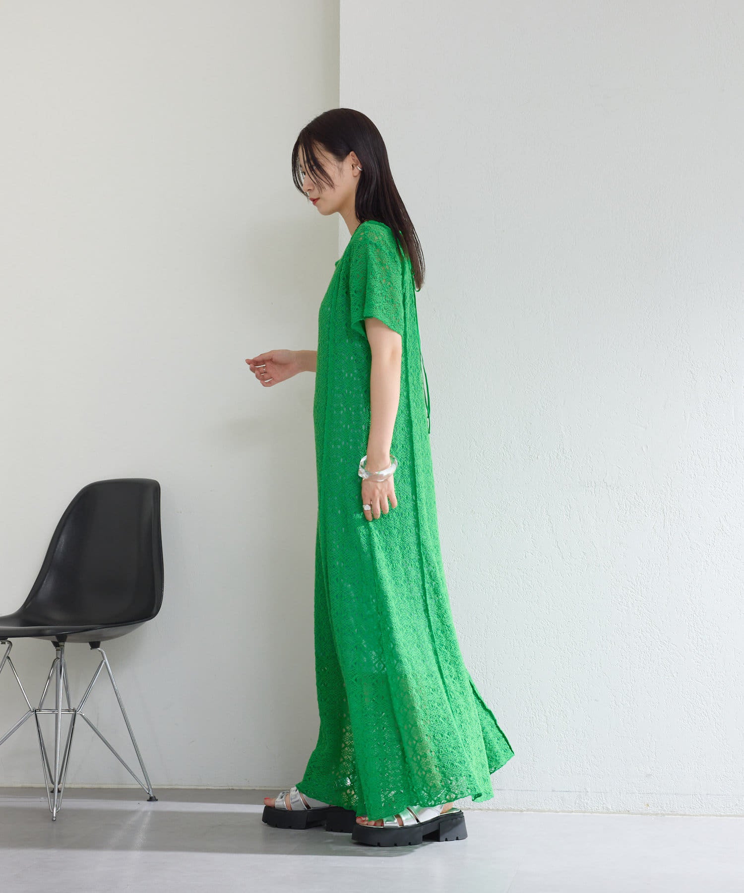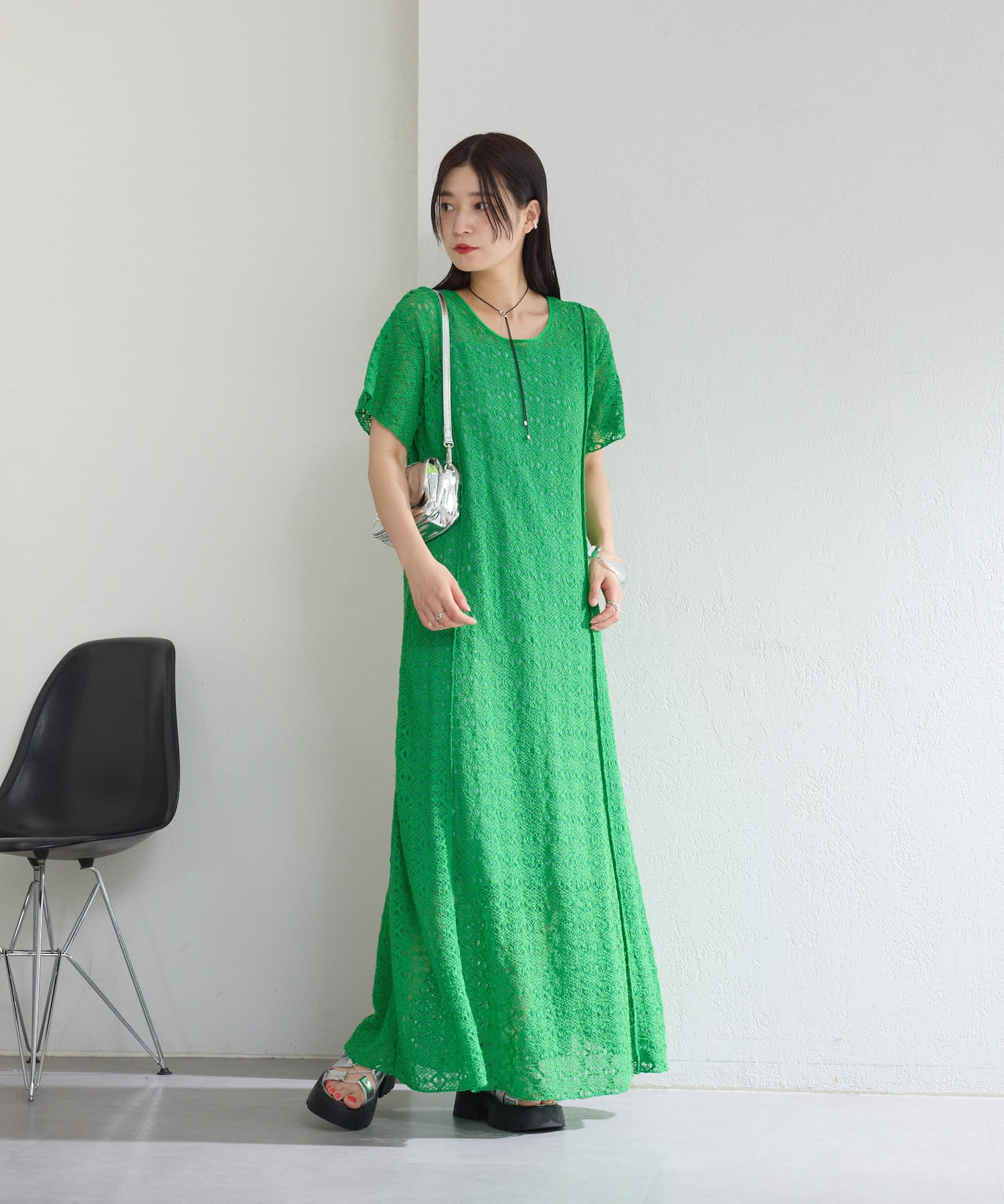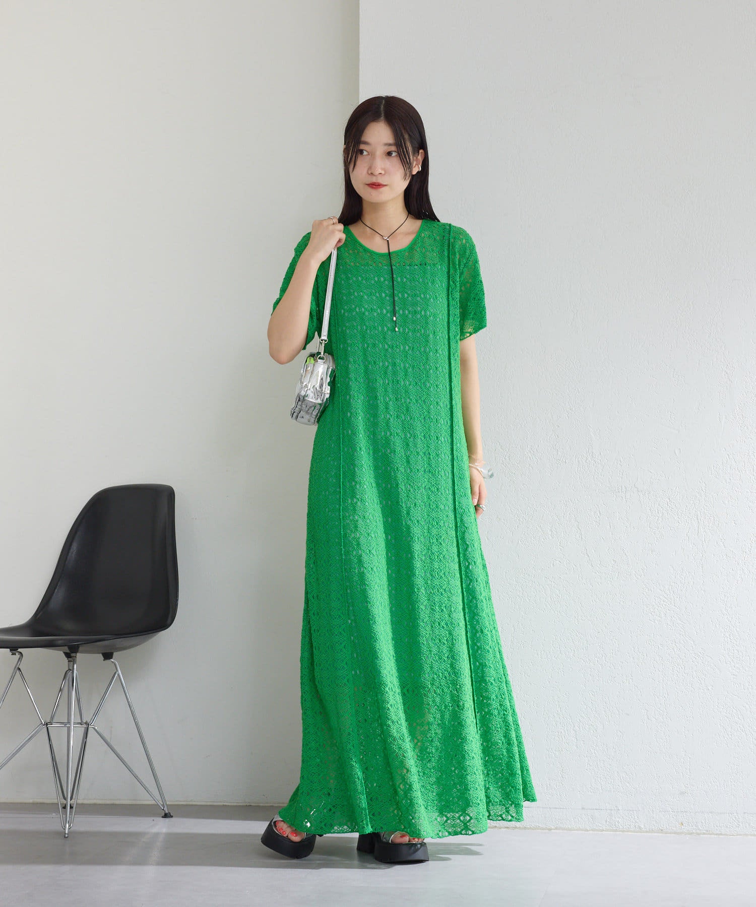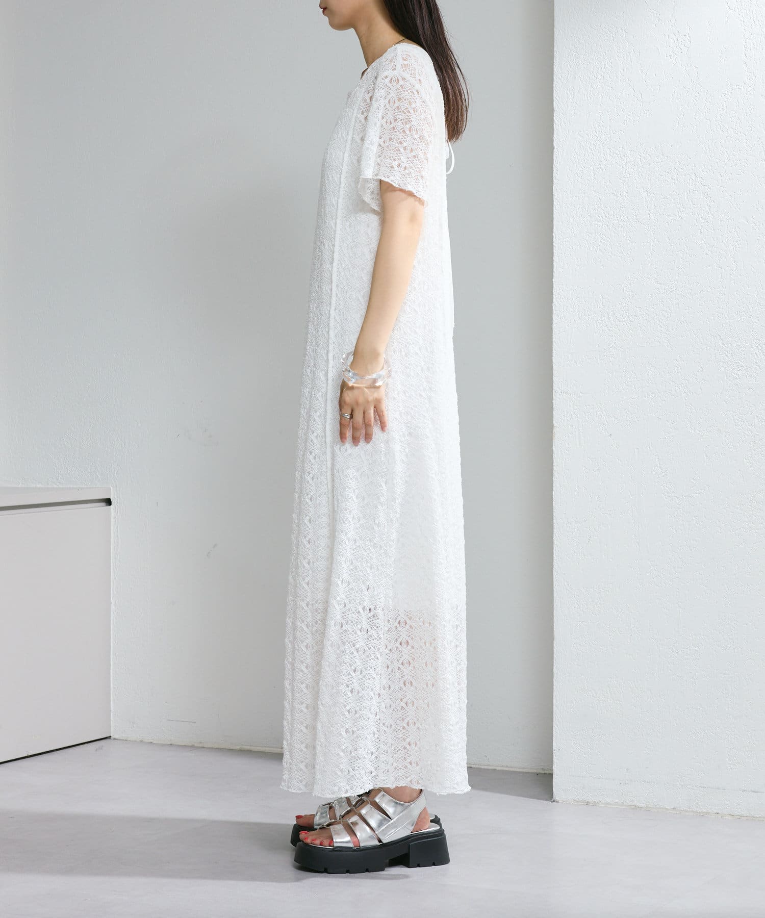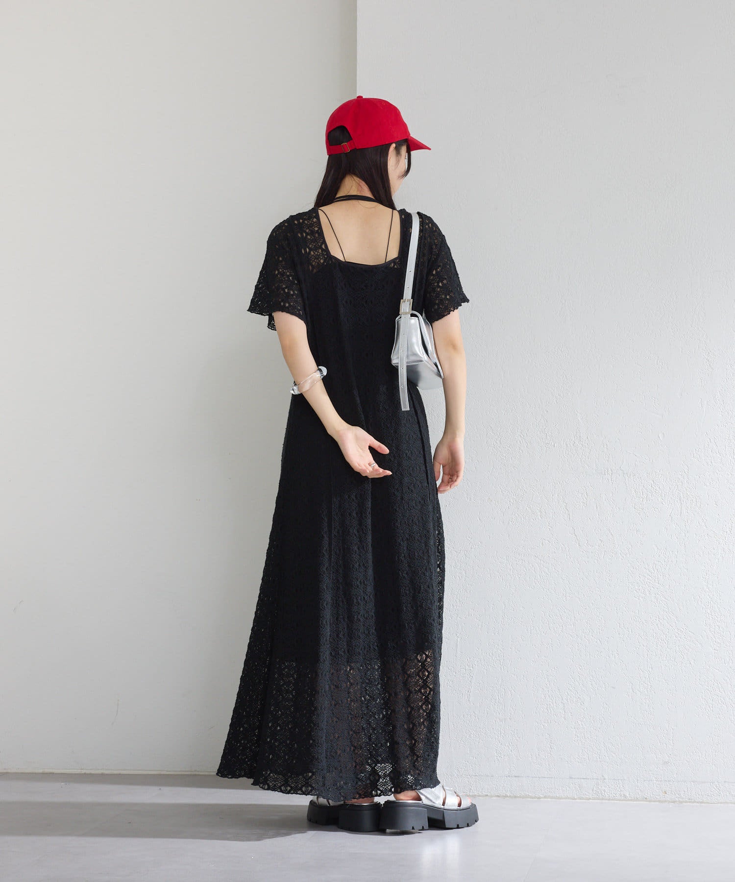 【2尺寸/套裝/前後2WAY】短袖蕾絲連衣裙