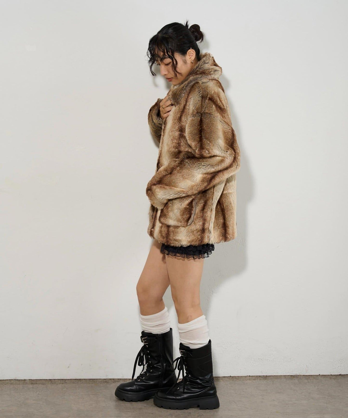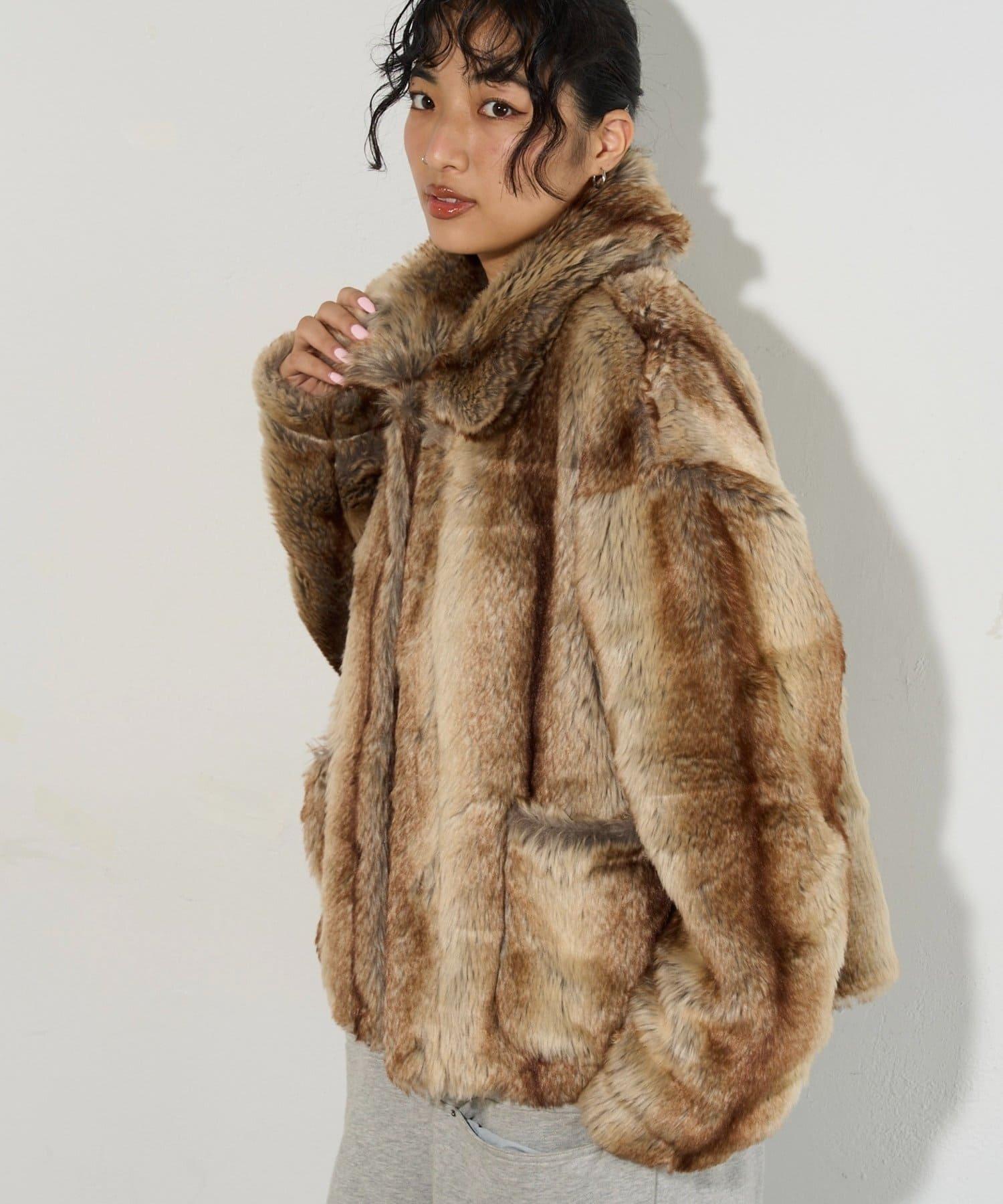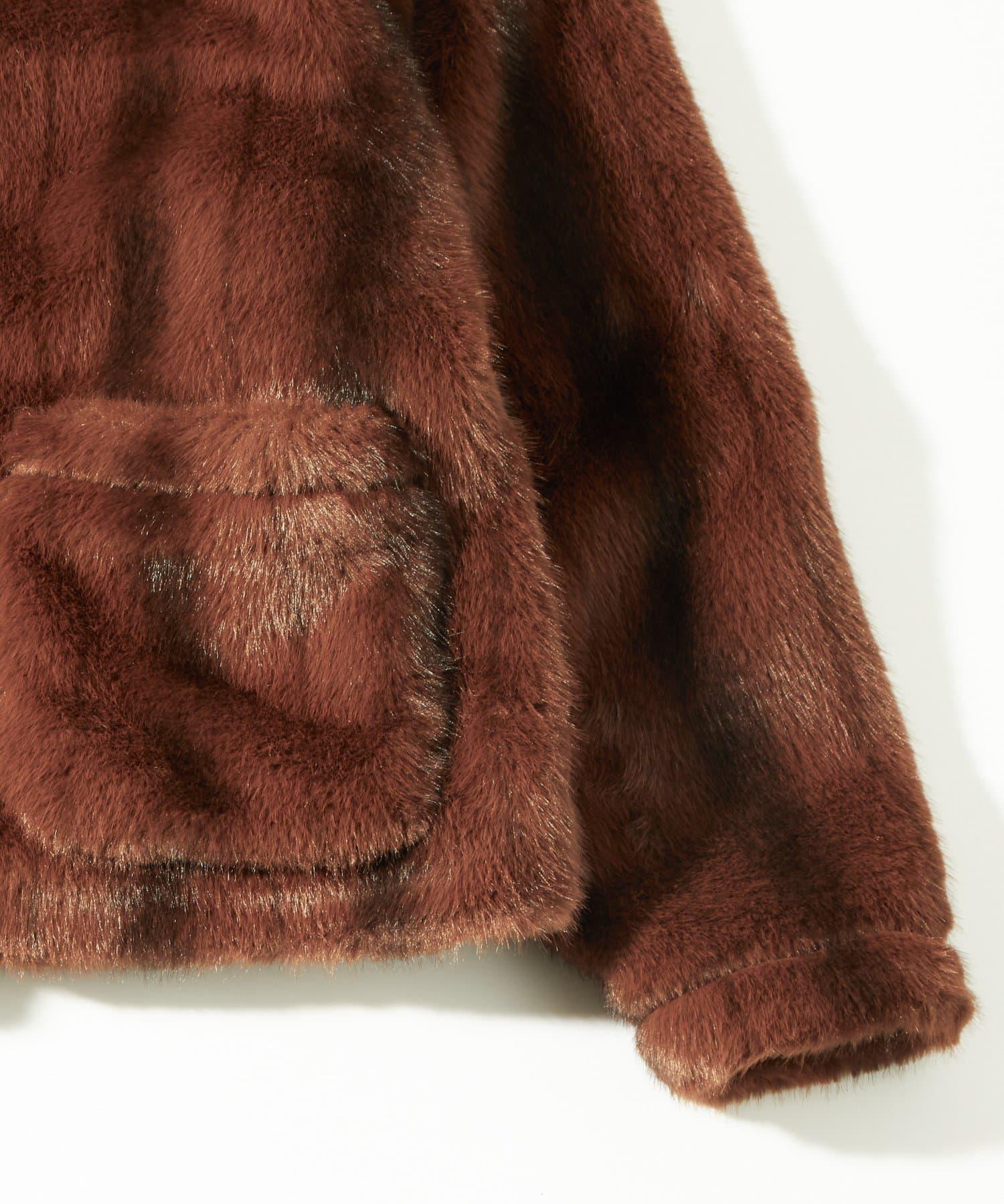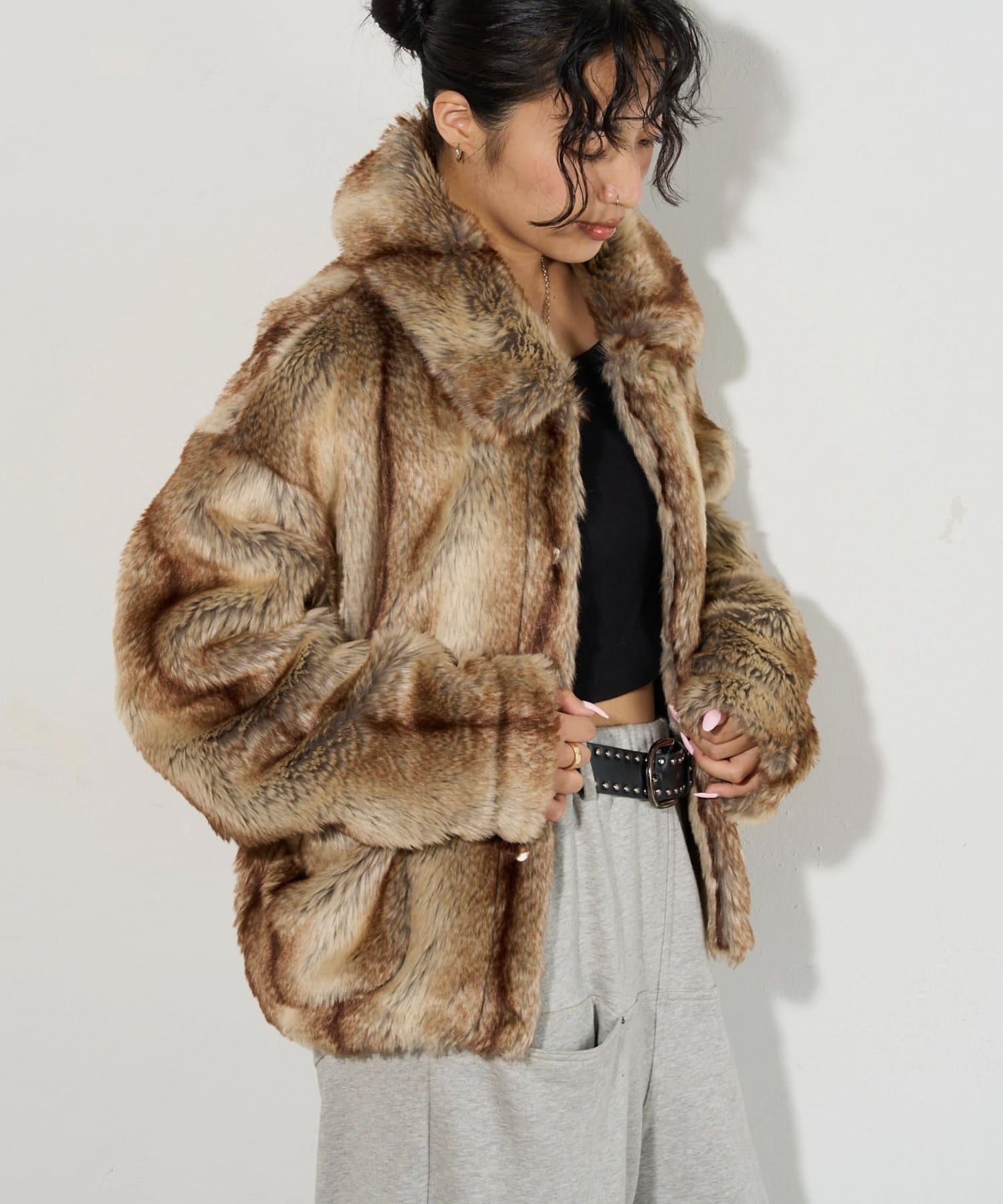 皮草夾克圖案獨特,搭配具有加工感的牛仔褲,看起來簡直酷斃了。