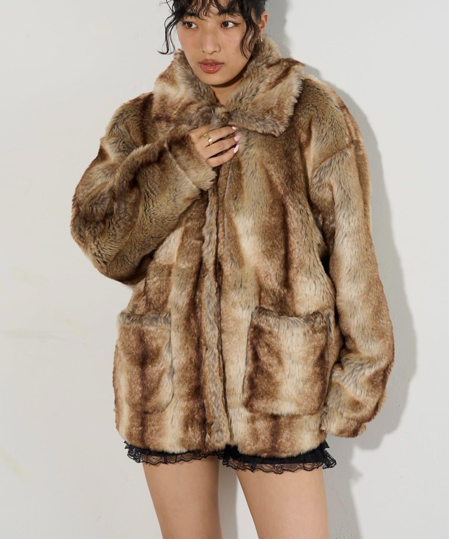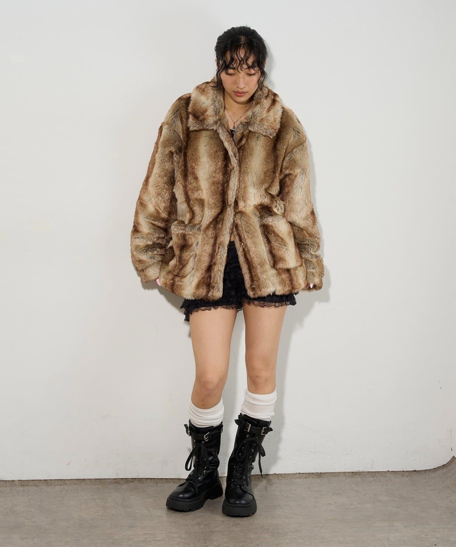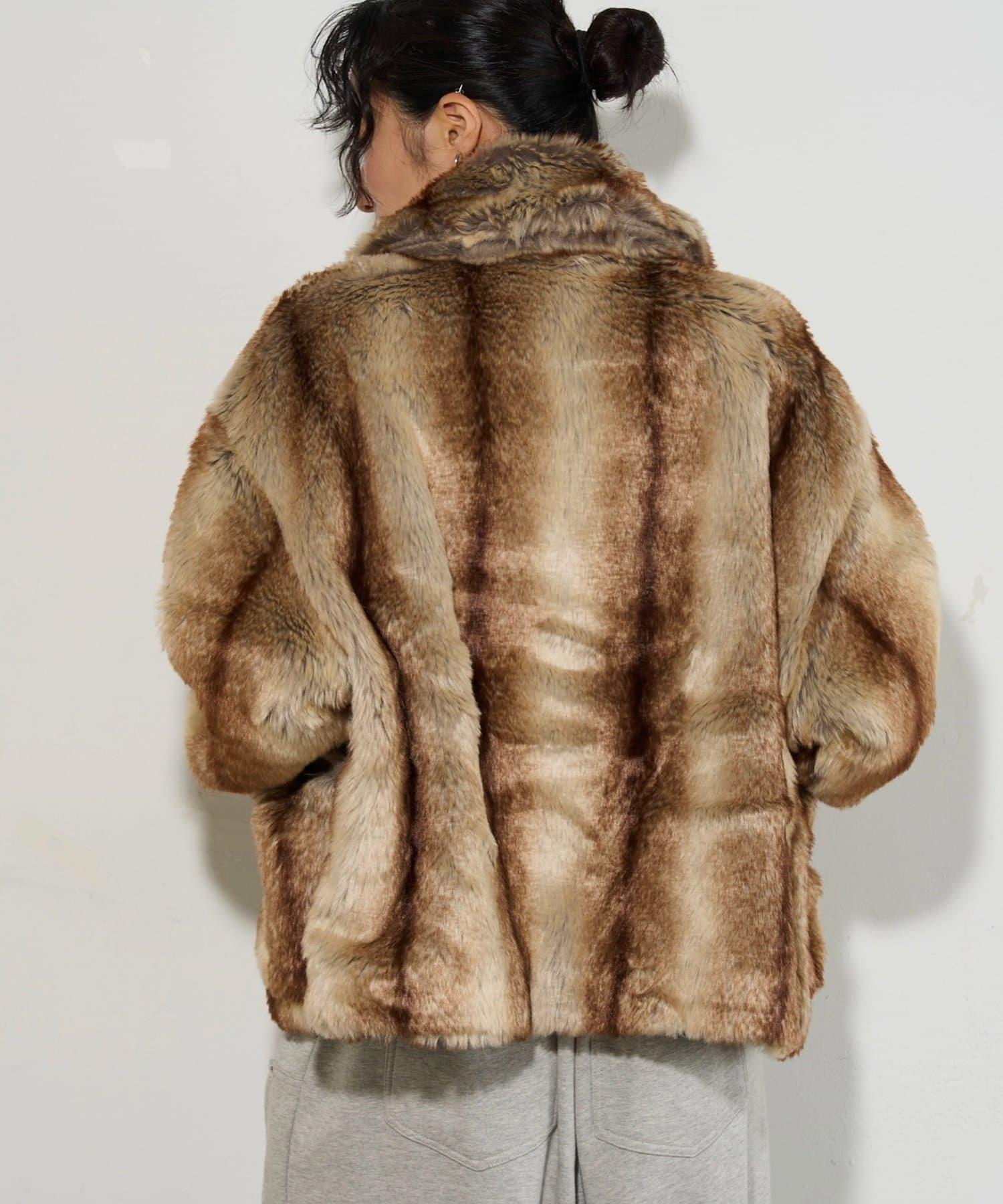 皮草夾克圖案獨特,搭配具有加工感的牛仔褲,看起來簡直酷斃了。