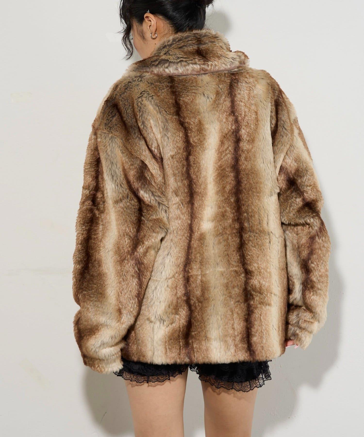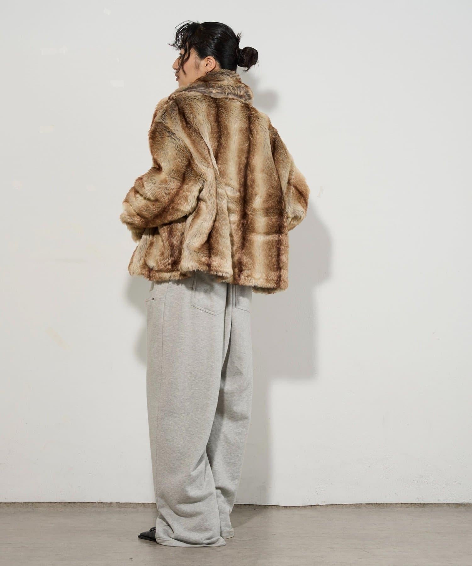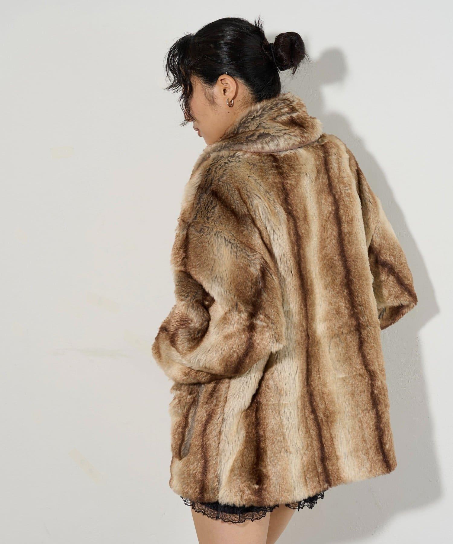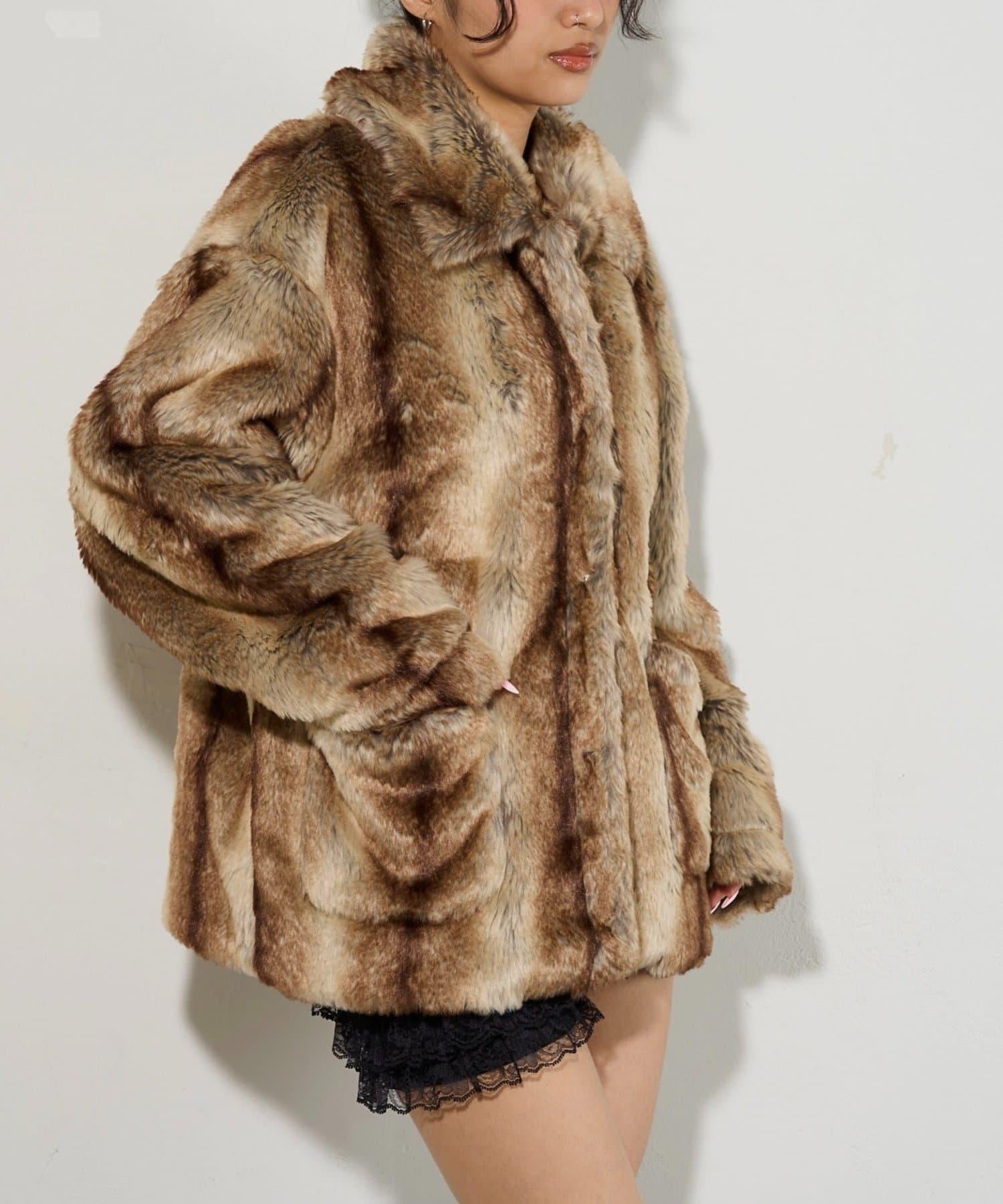 皮草夾克圖案獨特,搭配具有加工感的牛仔褲,看起來簡直酷斃了。