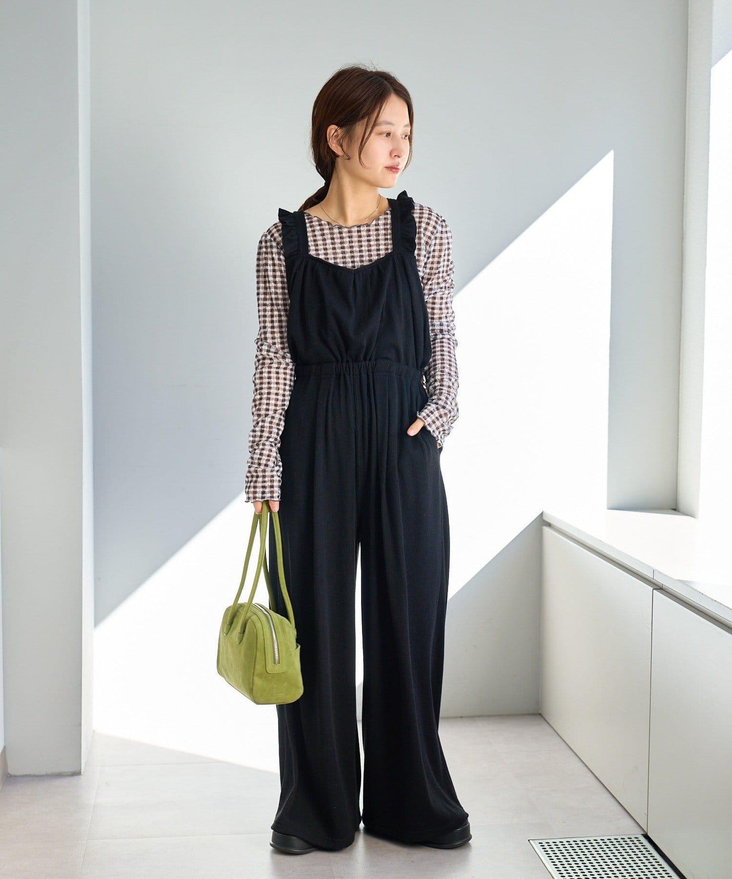 【2尺碼可選/適合身材嬌小/可調節衣長】荷葉邊揹帶褲