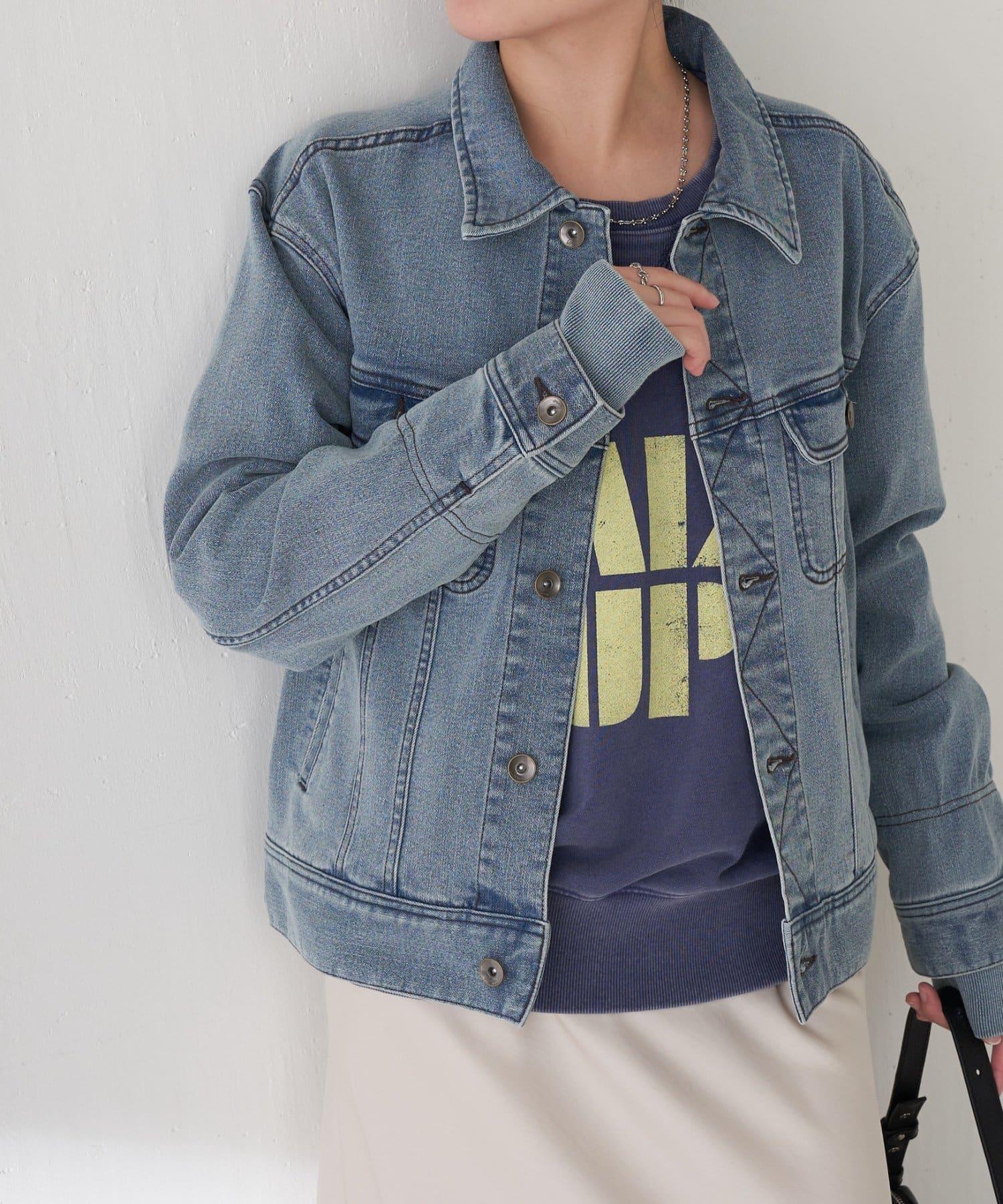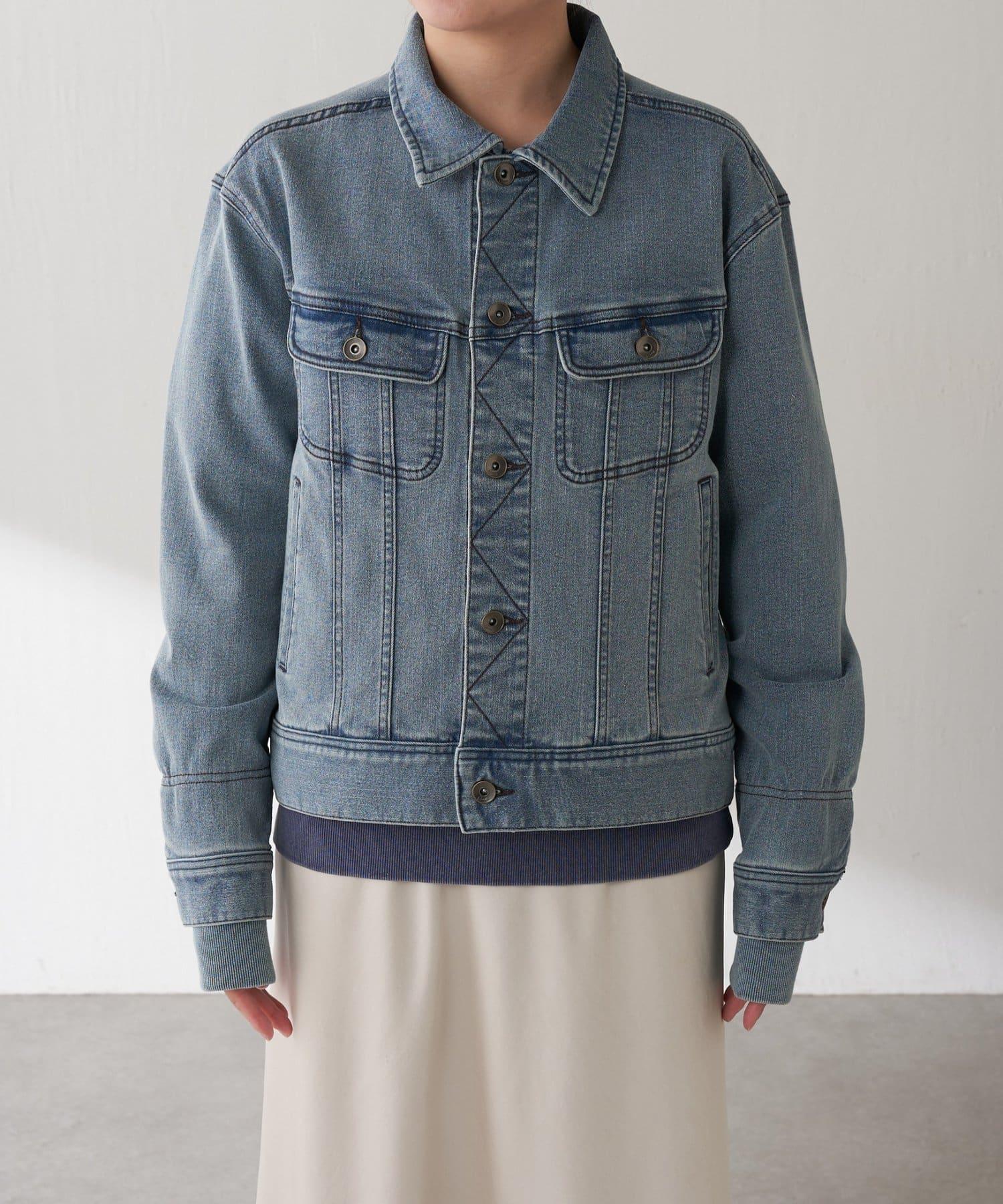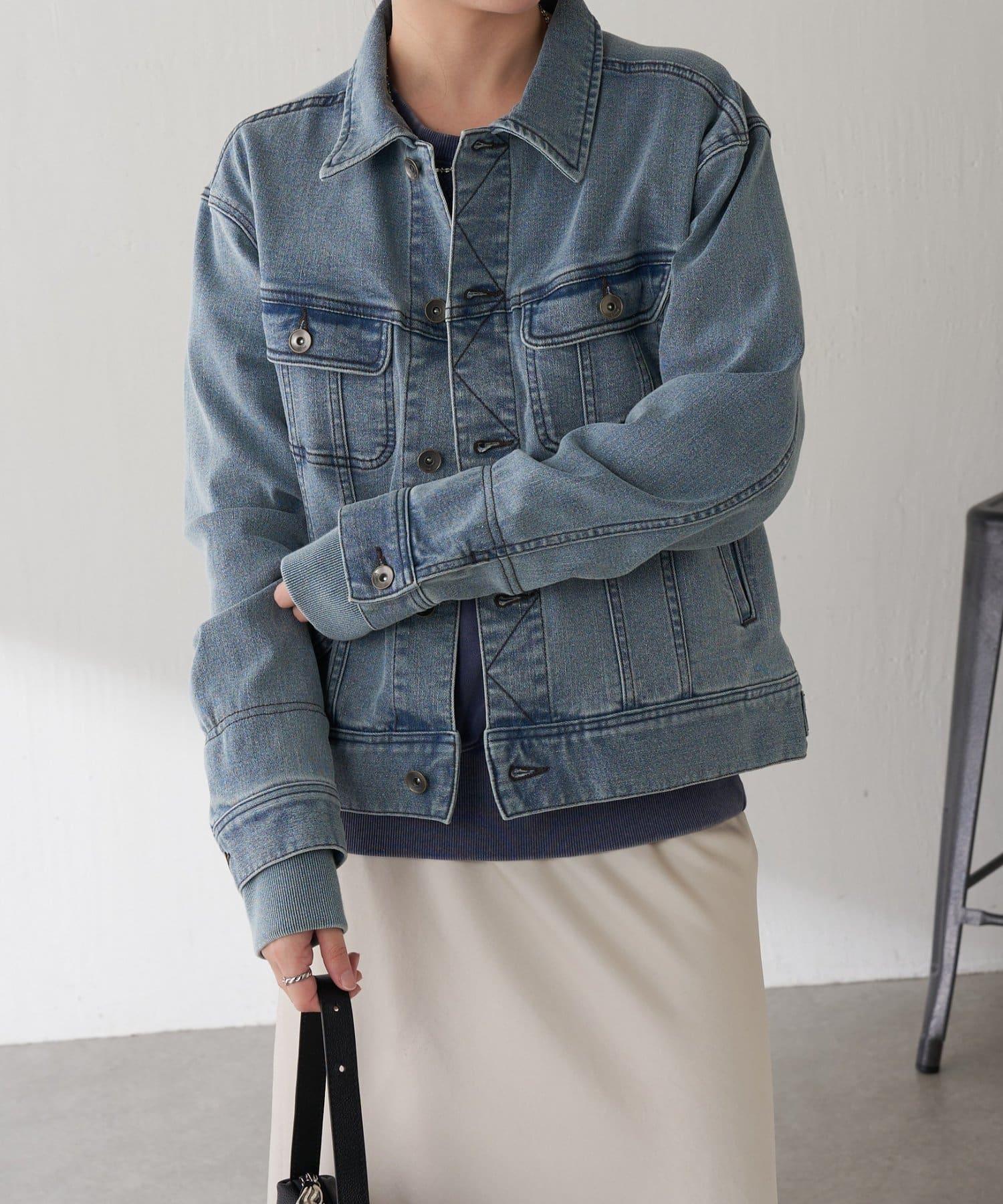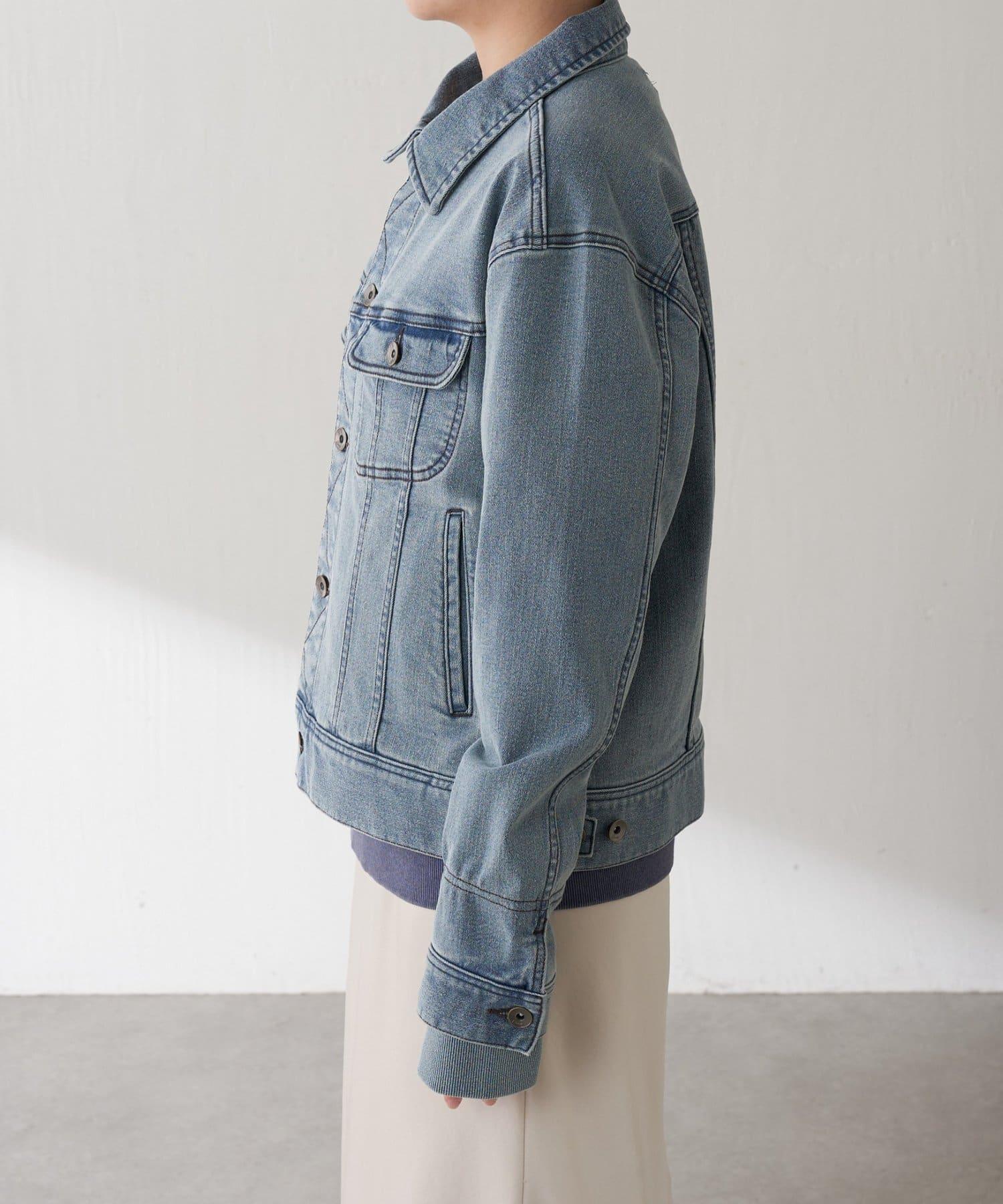 這款夾克採用彈力牛仔面料製成,袖子上有羅紋。