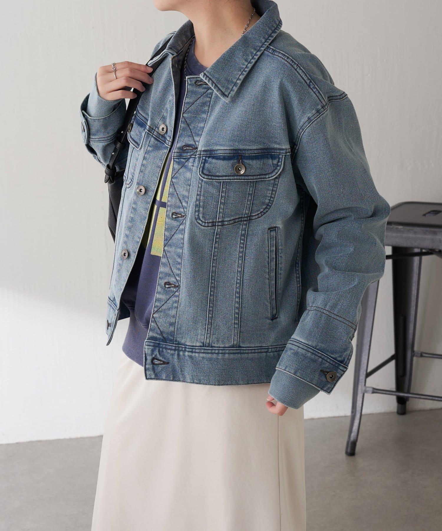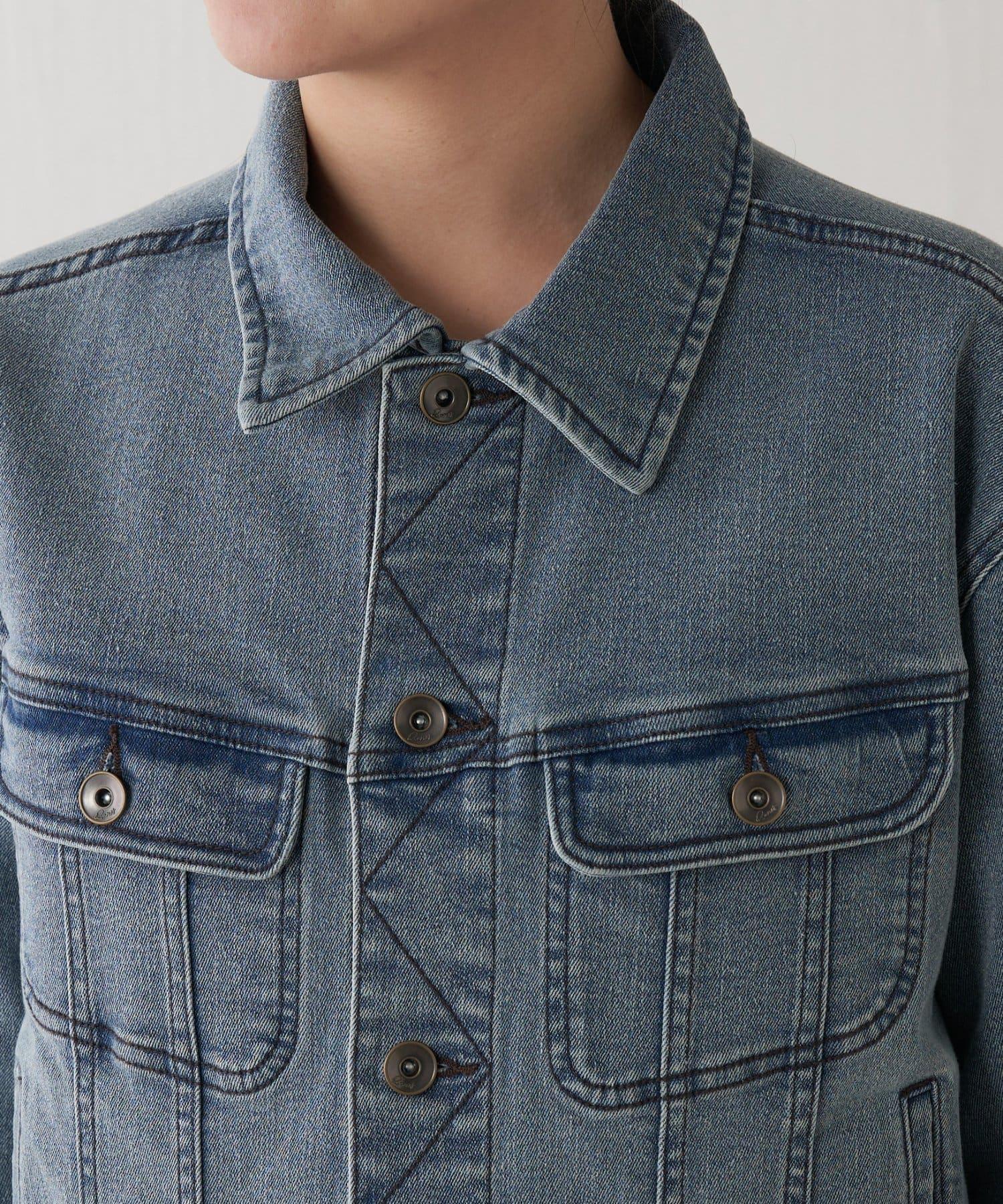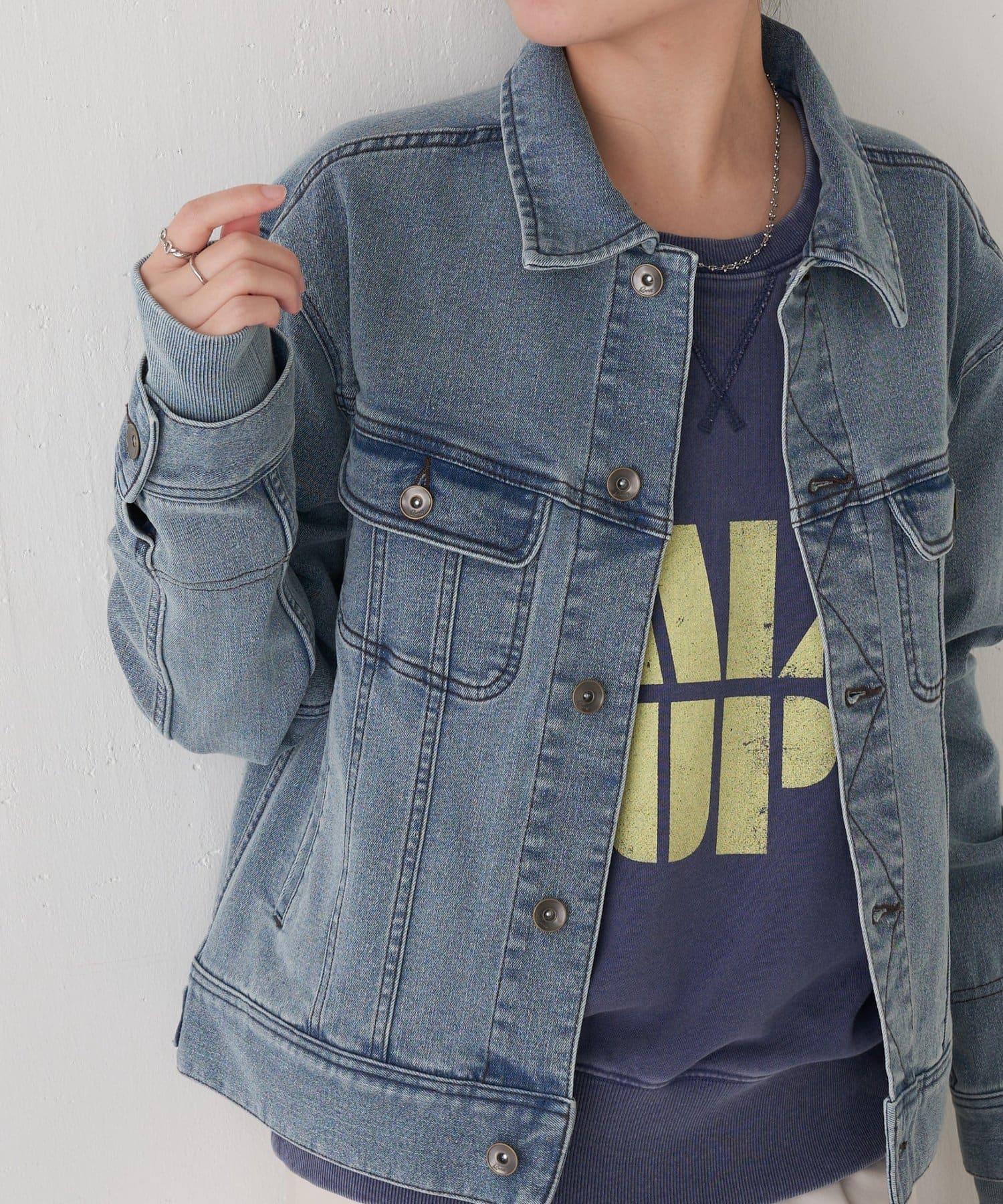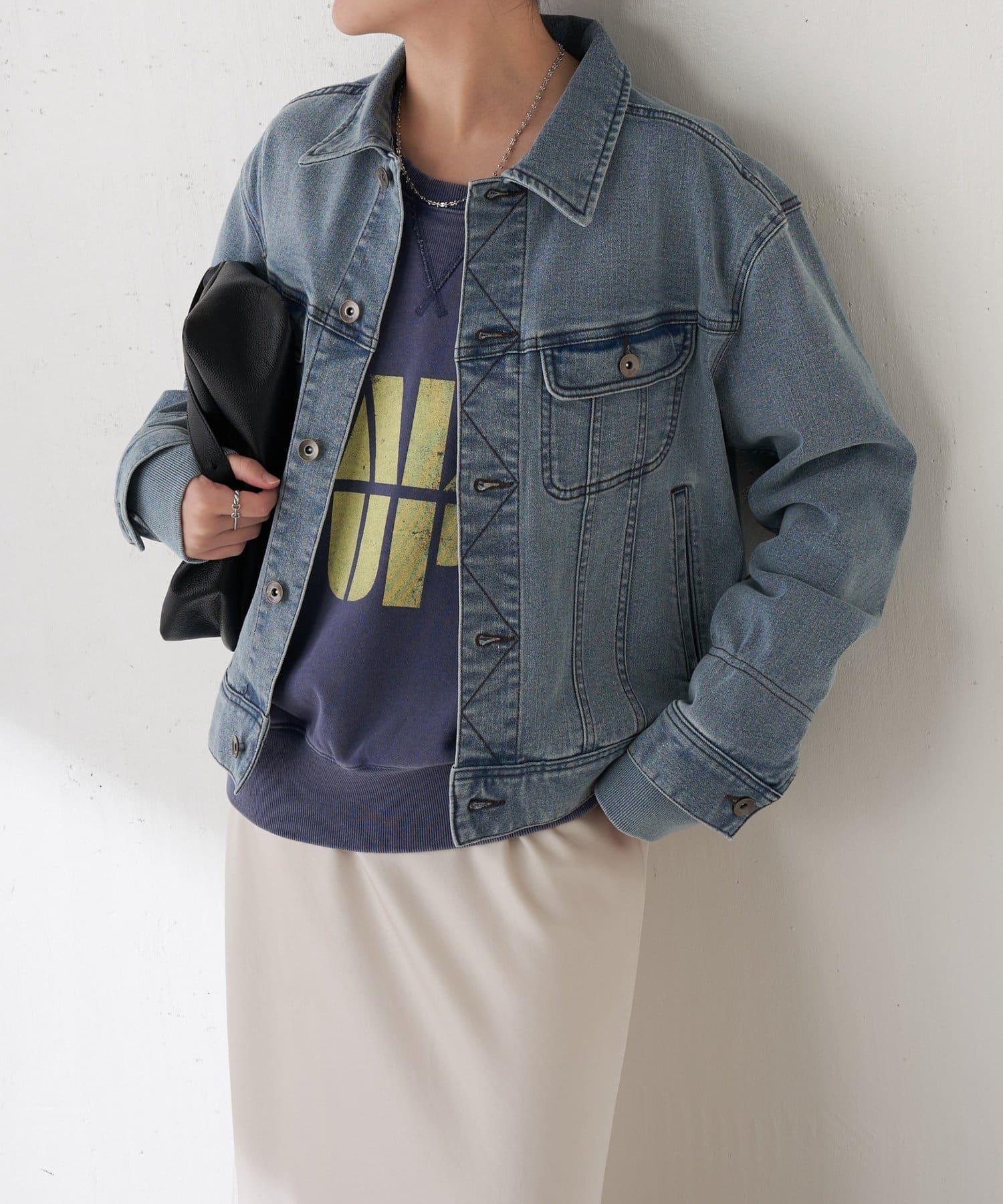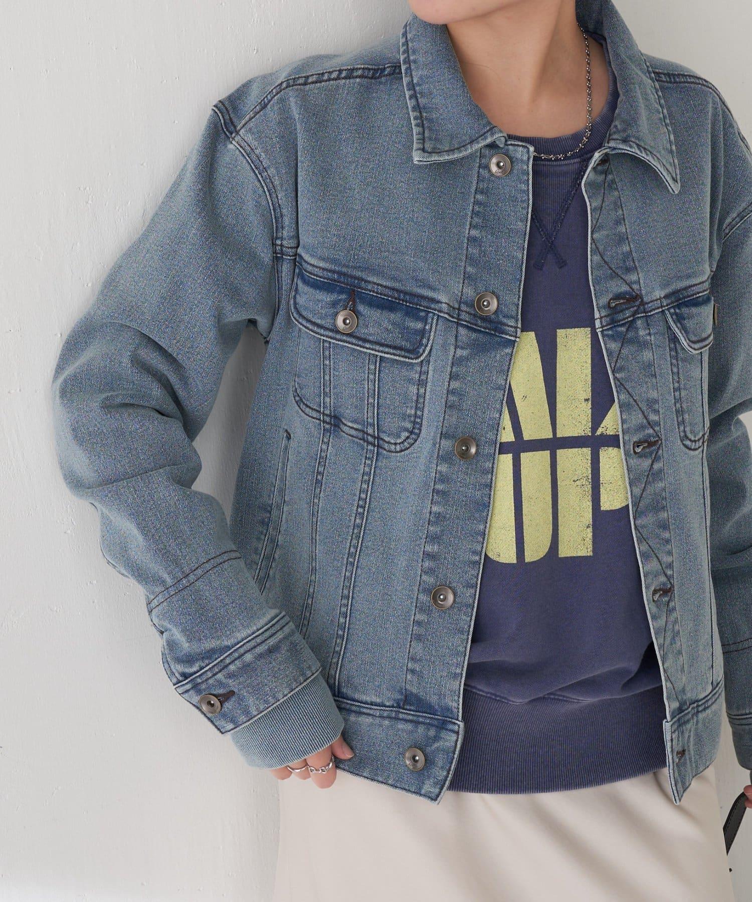 這款夾克採用彈力牛仔面料製成,袖子上有羅紋。