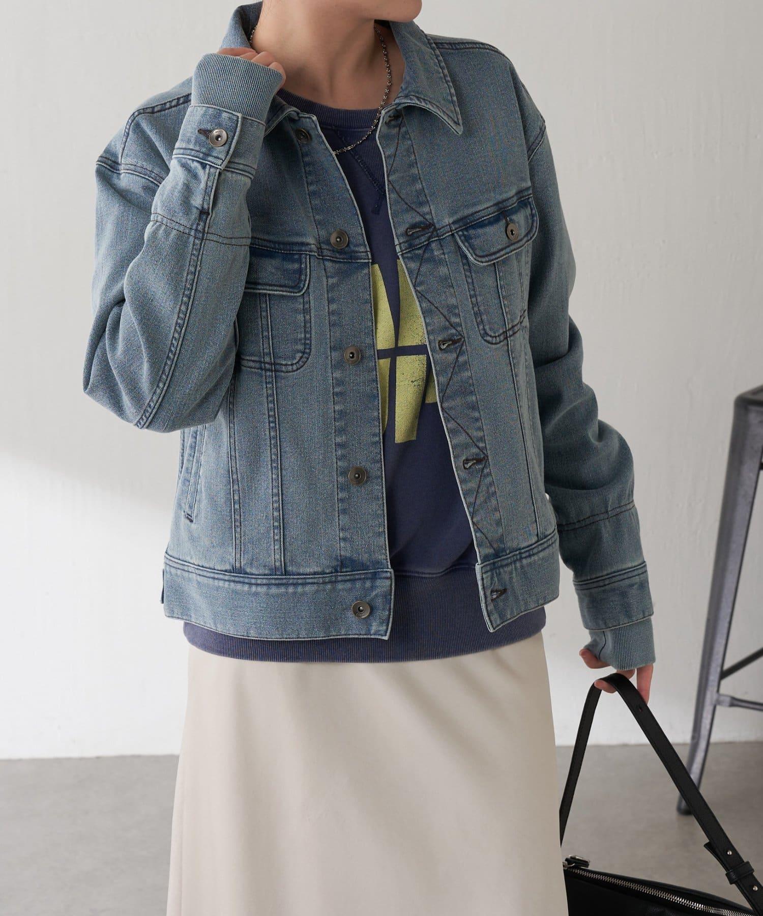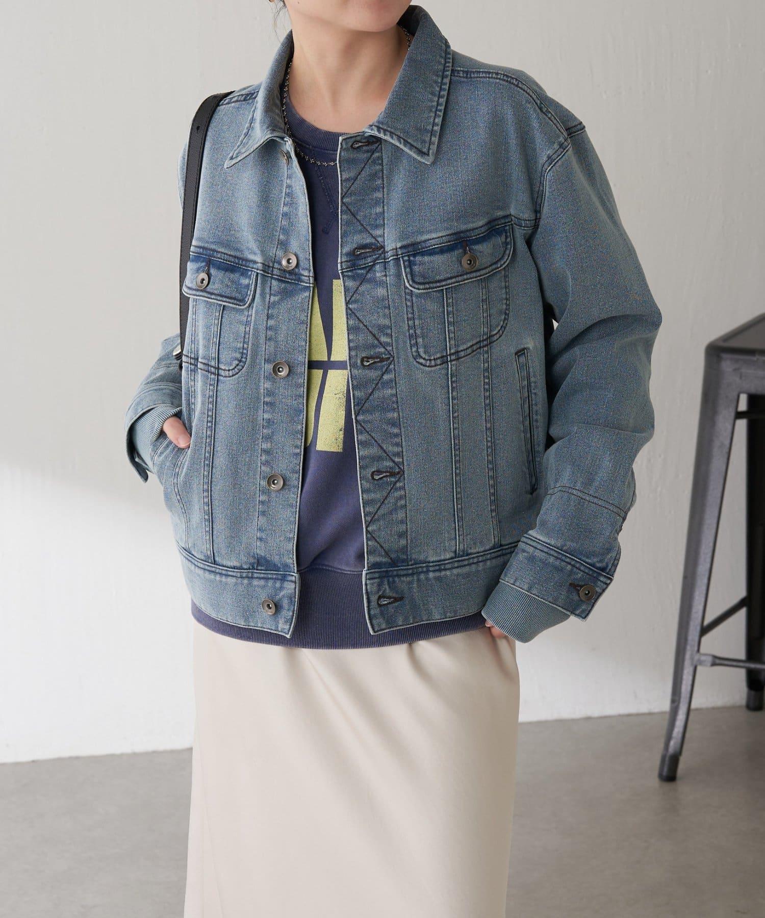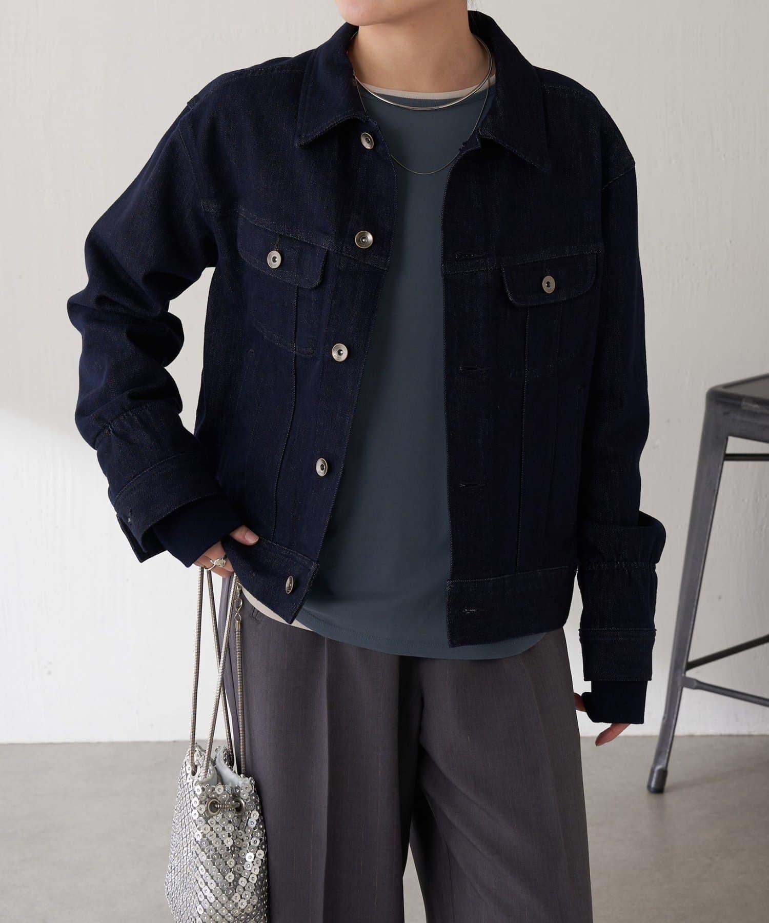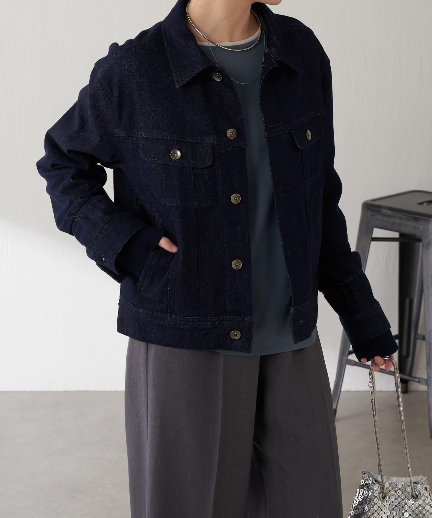 這款夾克採用彈力牛仔面料製成,袖子上有羅紋。