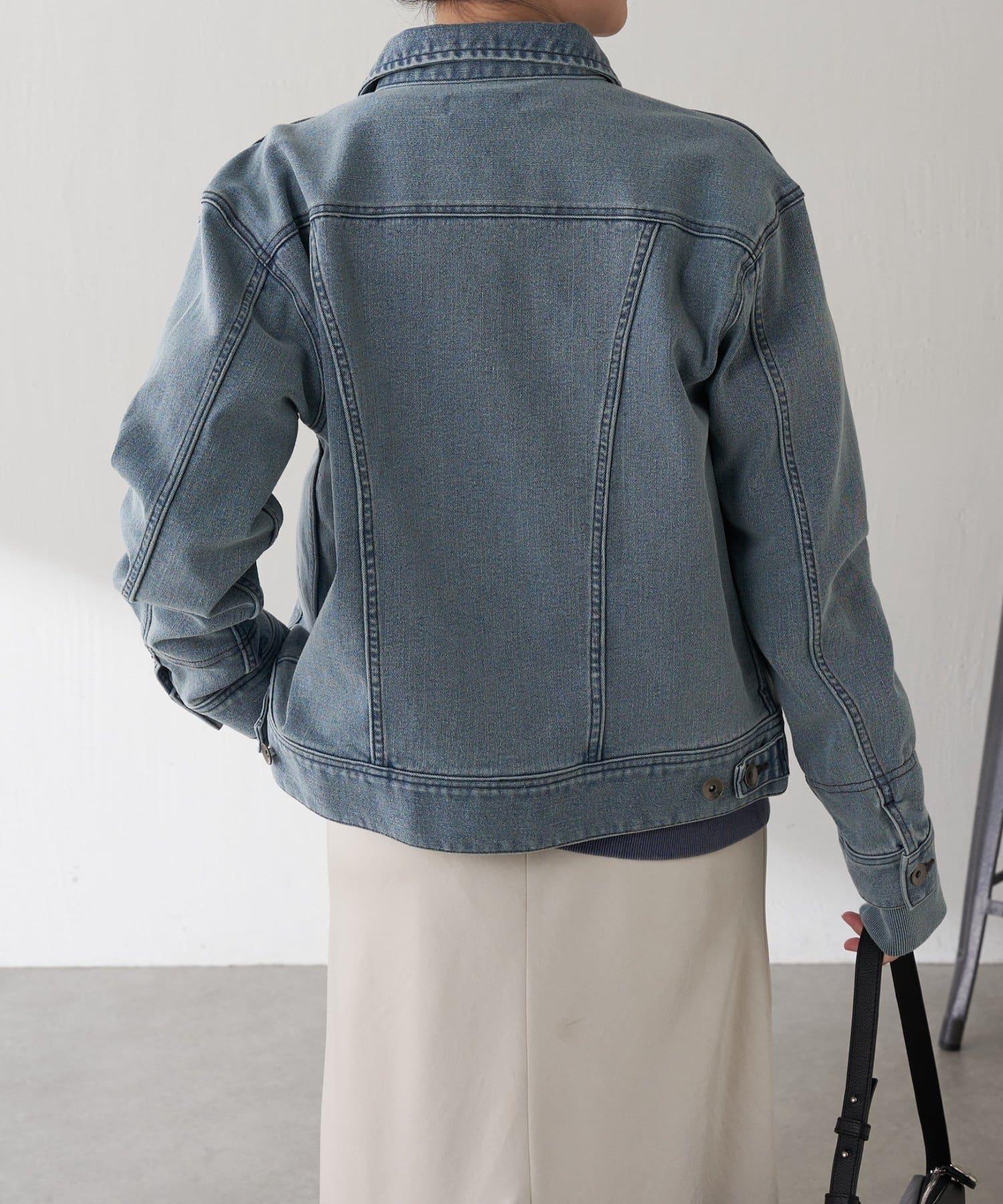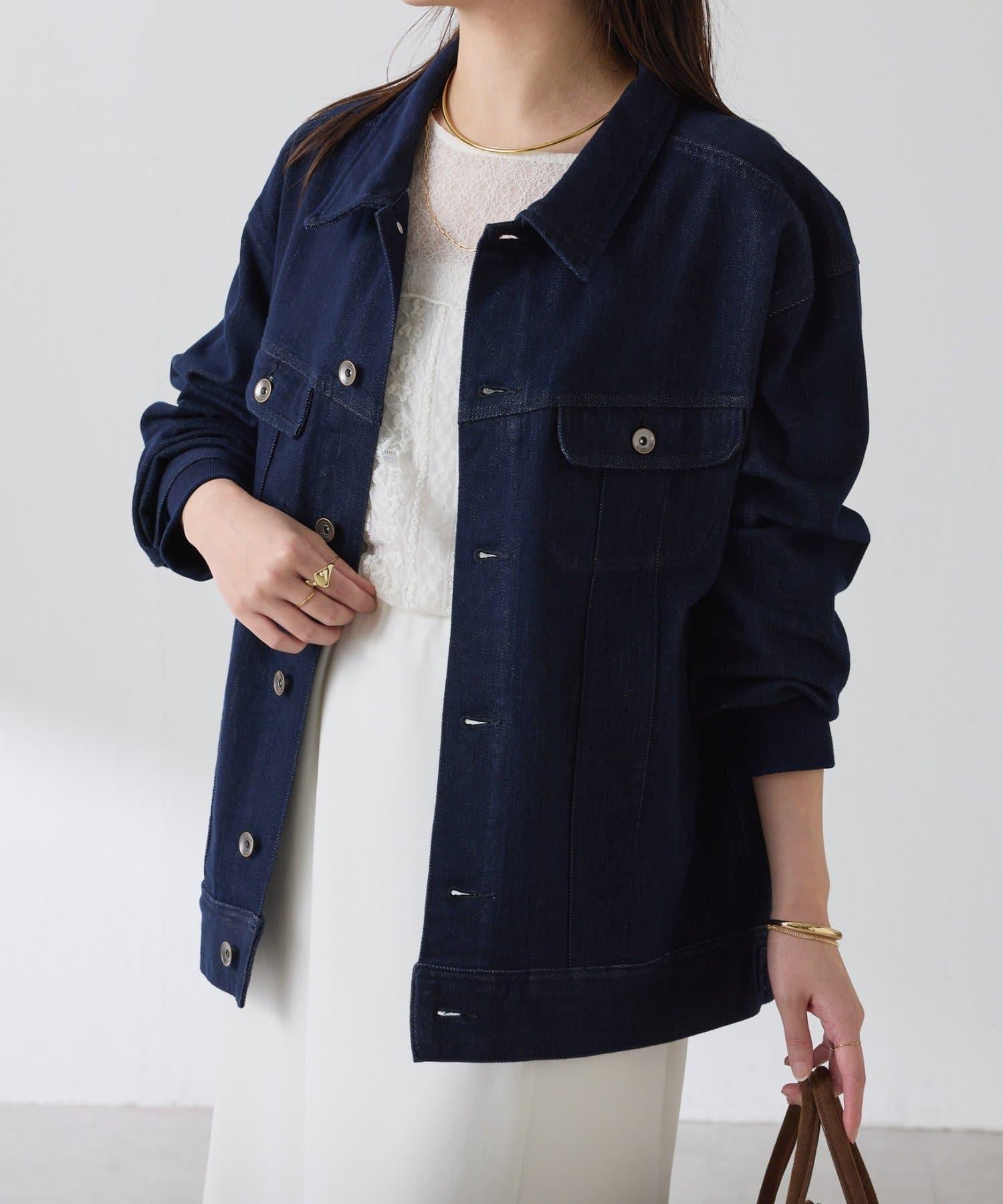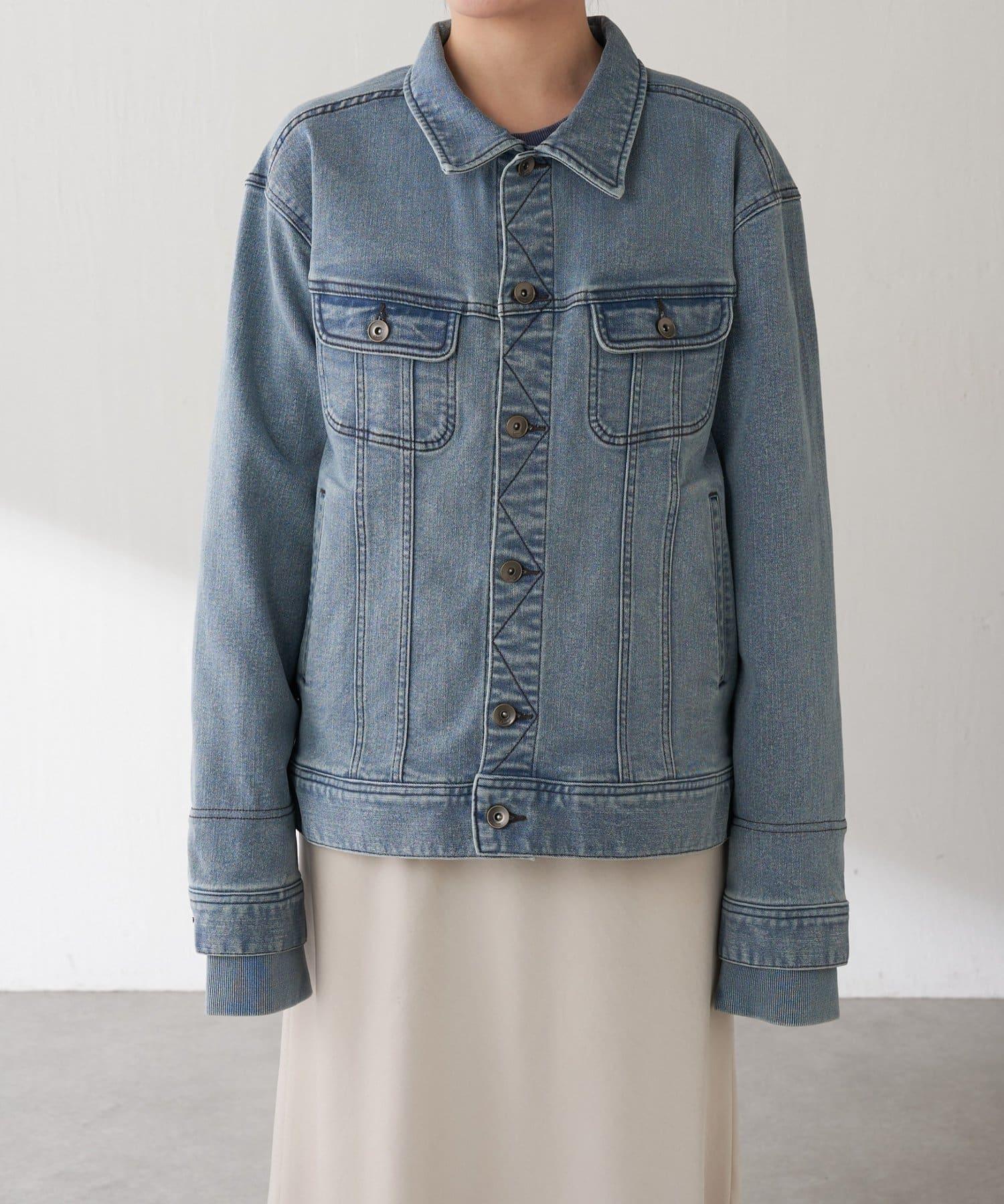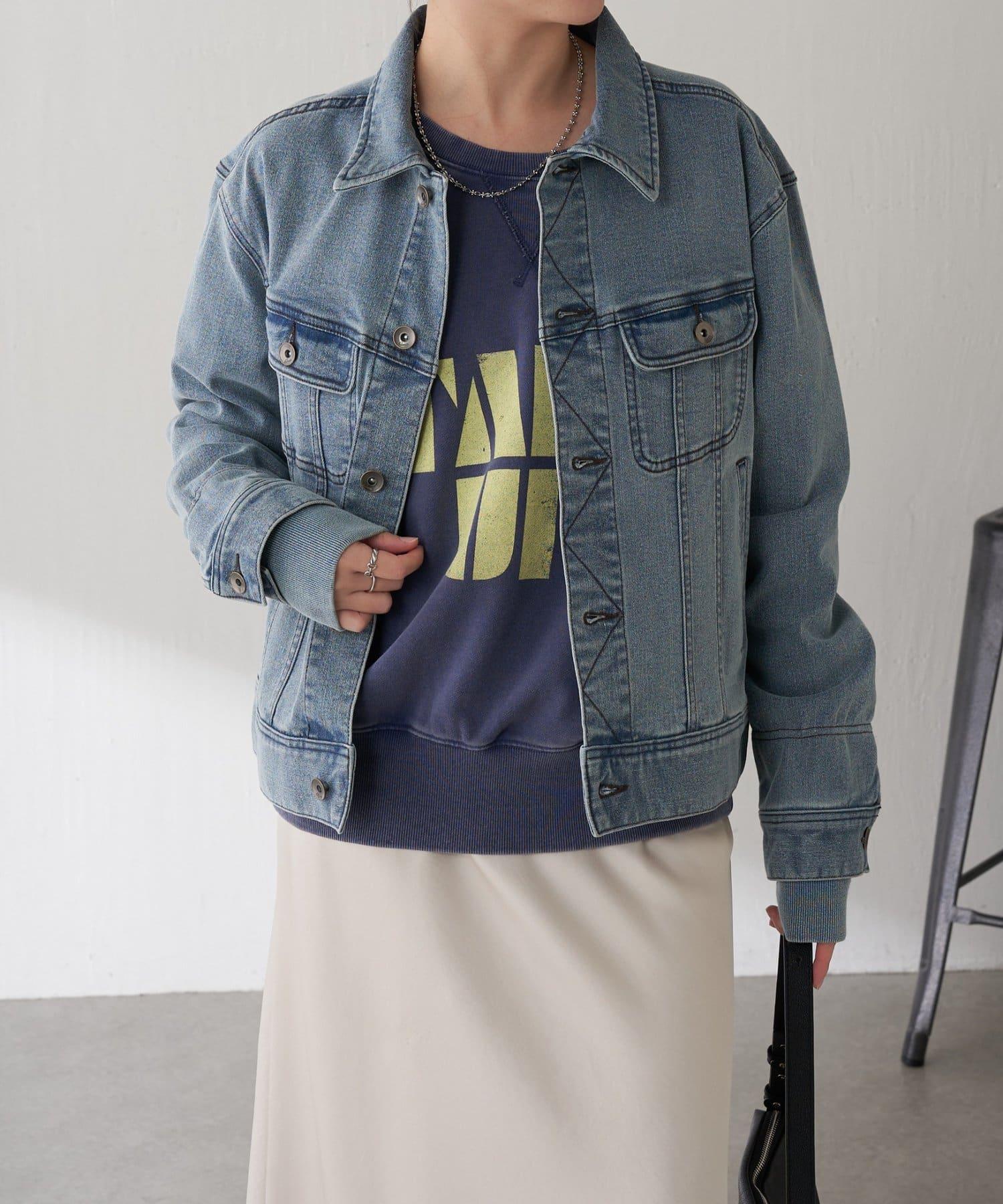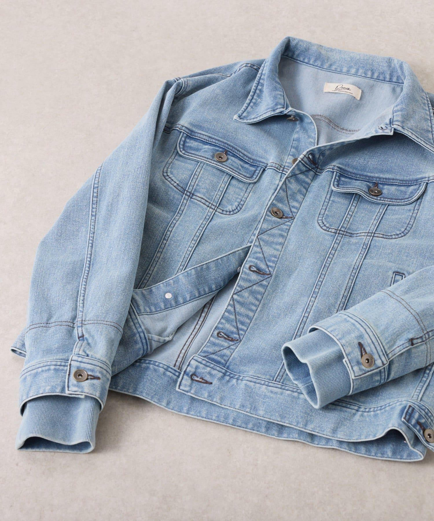 這款夾克採用彈力牛仔面料製成,袖子上有羅紋。