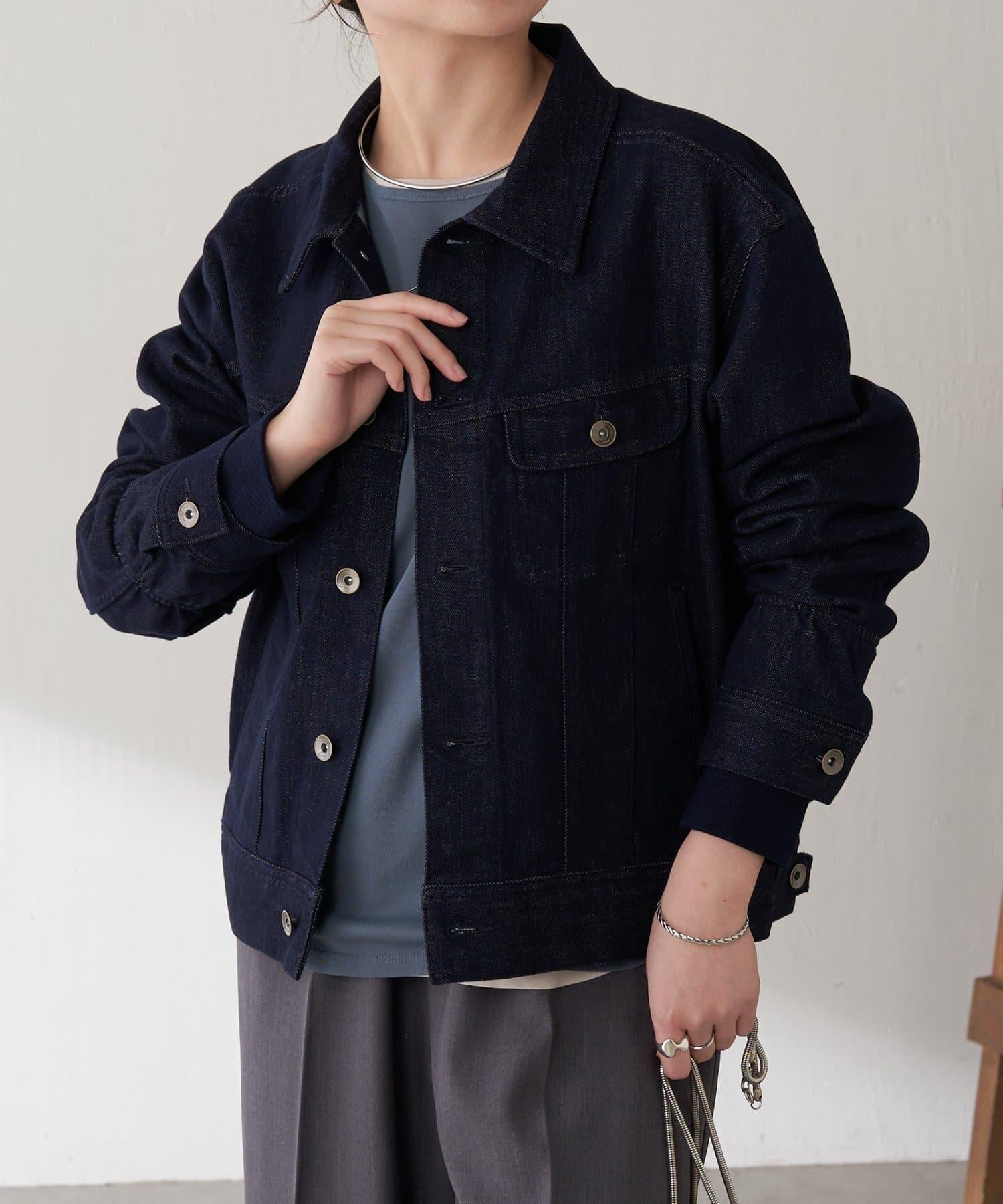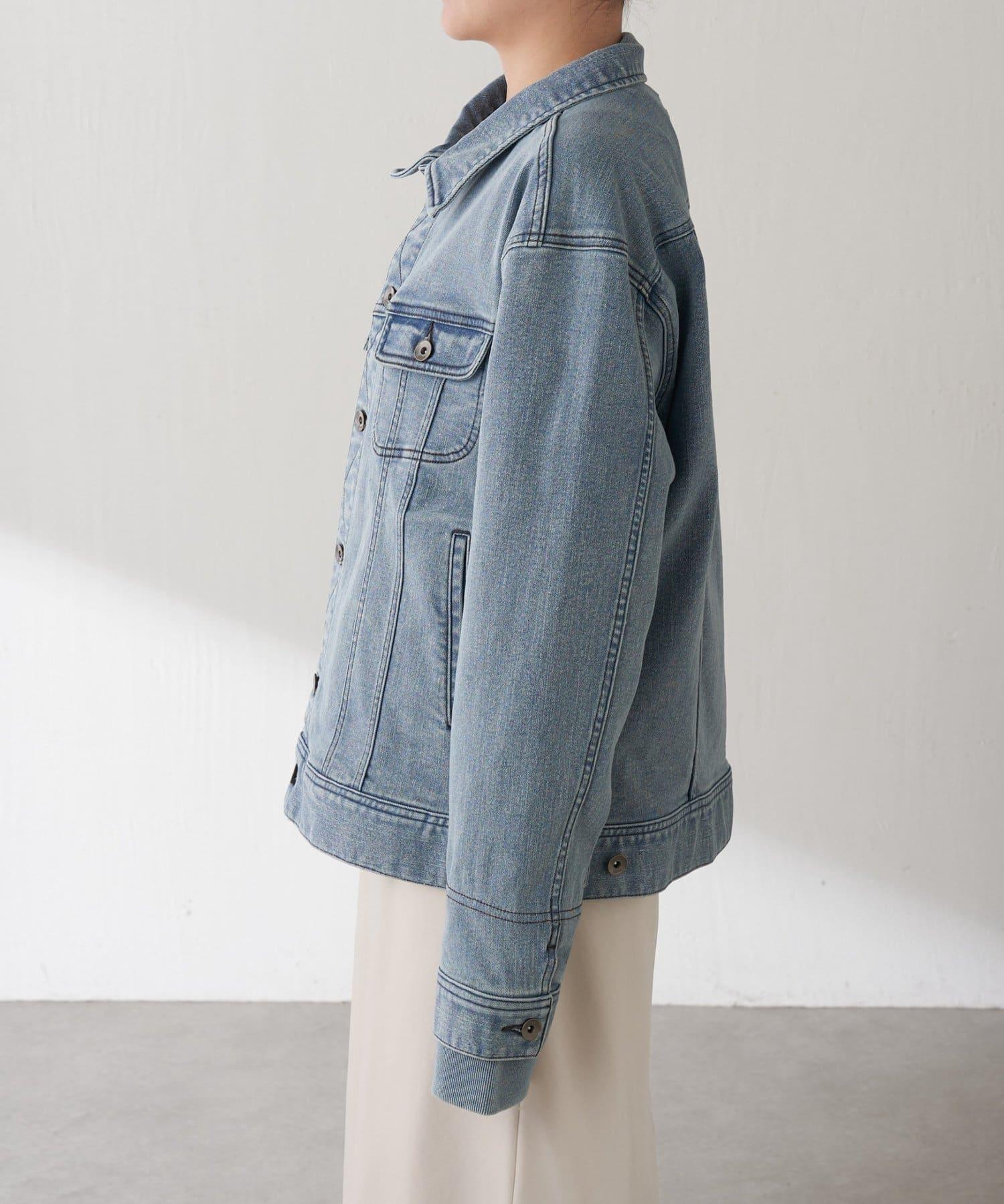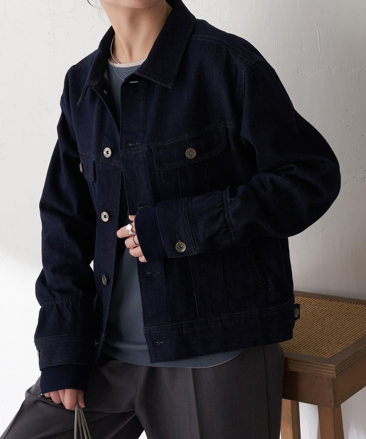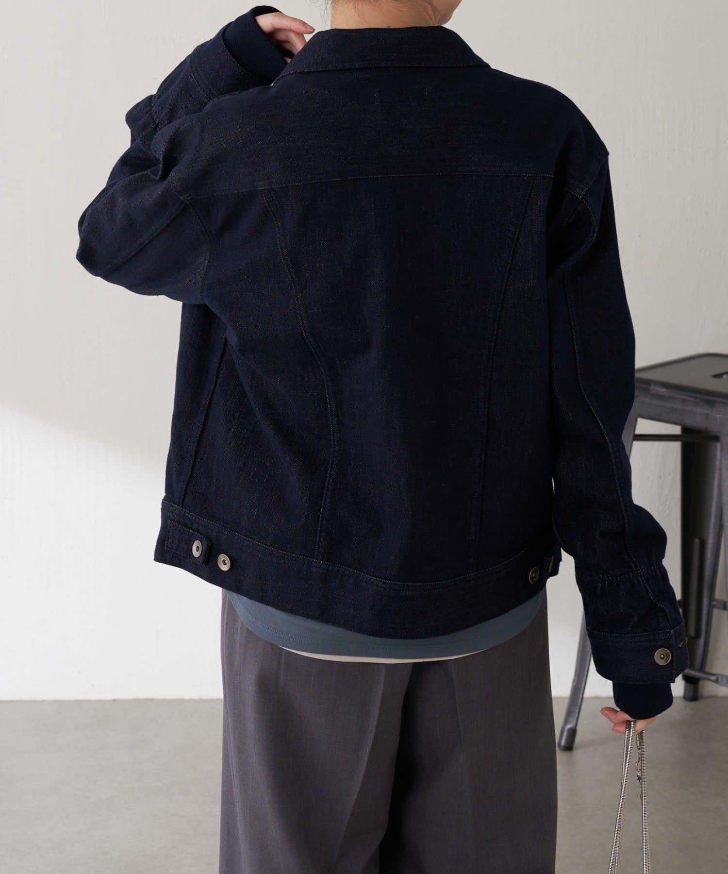 這款夾克採用彈力牛仔面料製成,袖子上有羅紋。