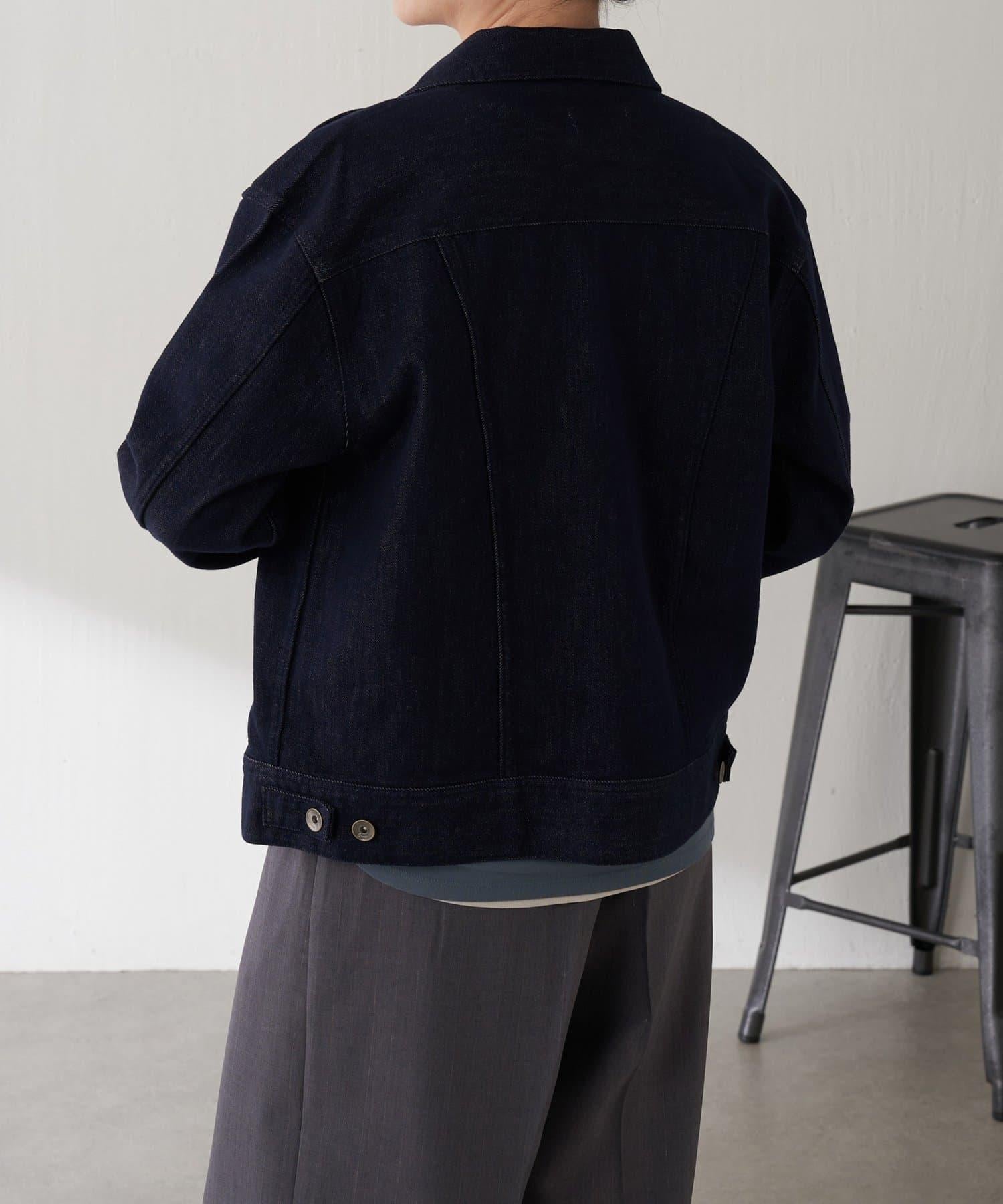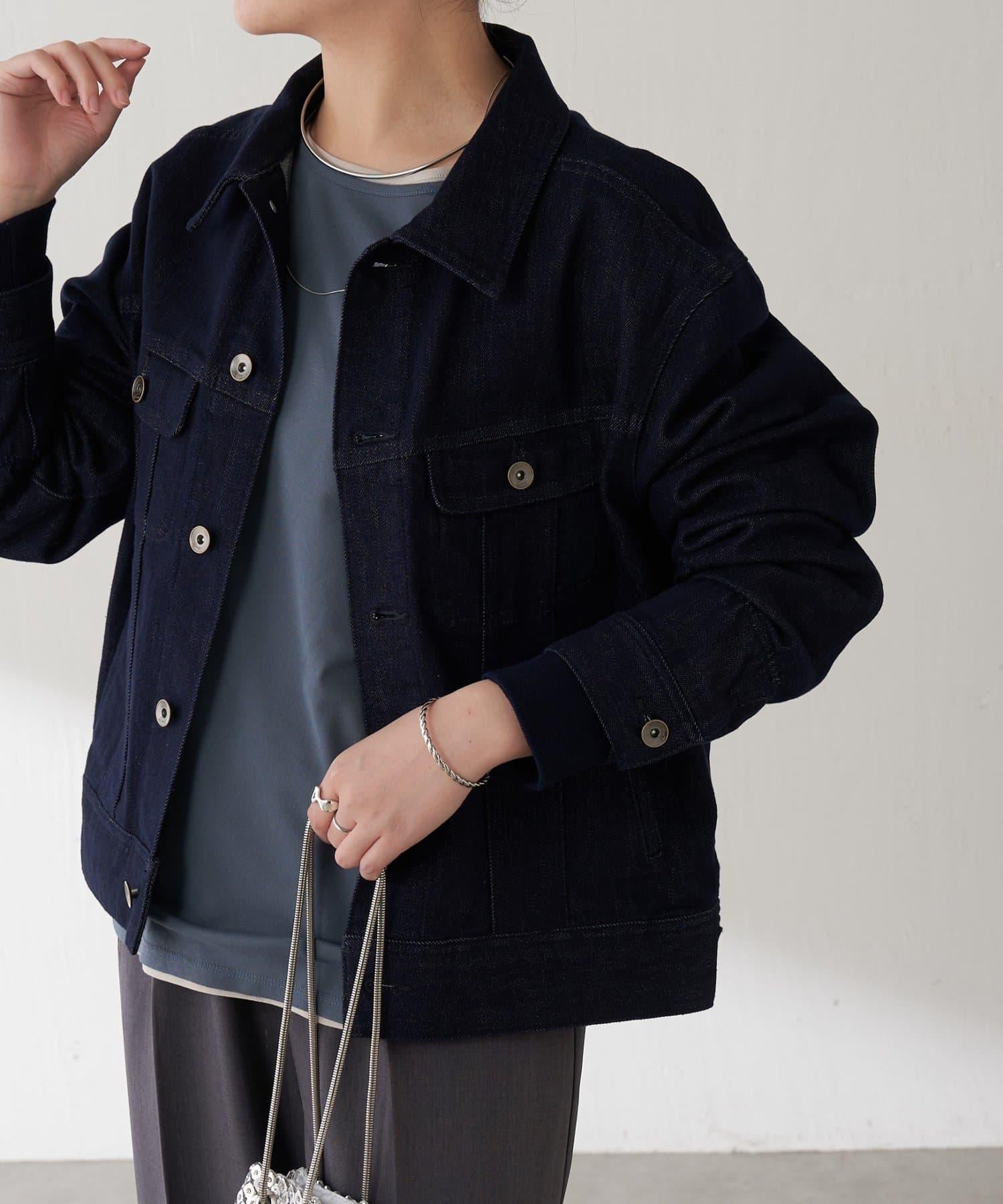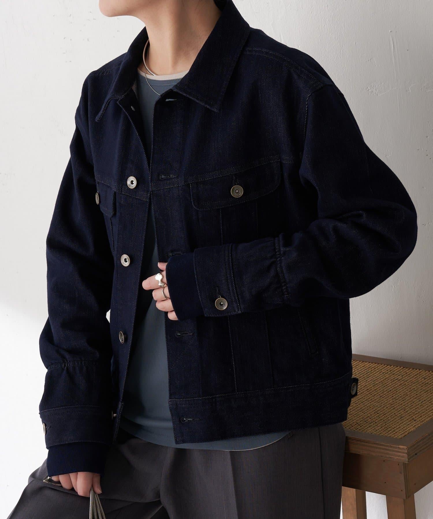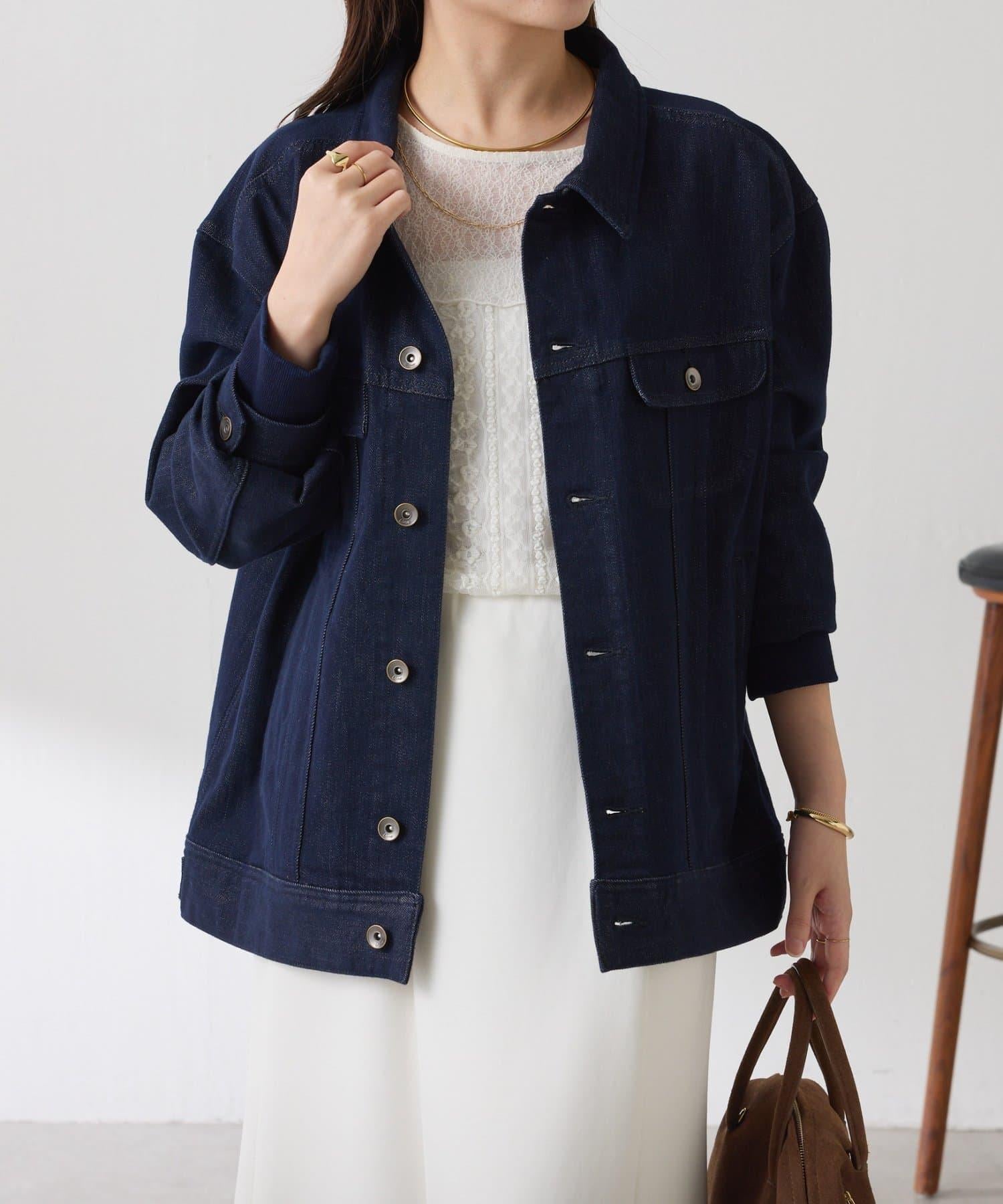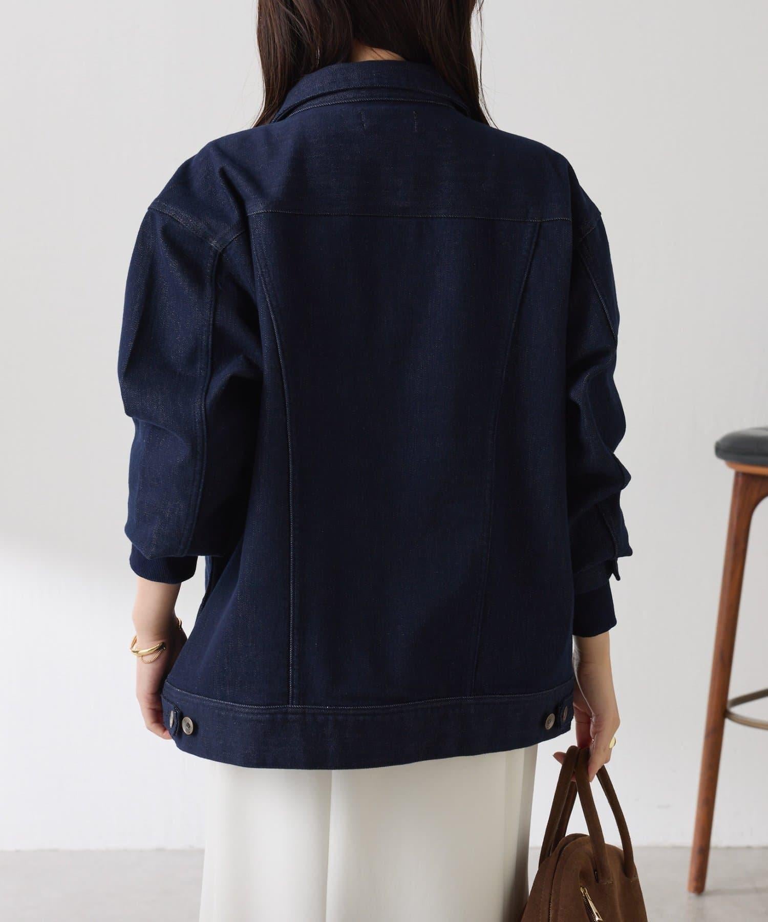 這款夾克採用彈力牛仔面料製成,袖子上有羅紋。