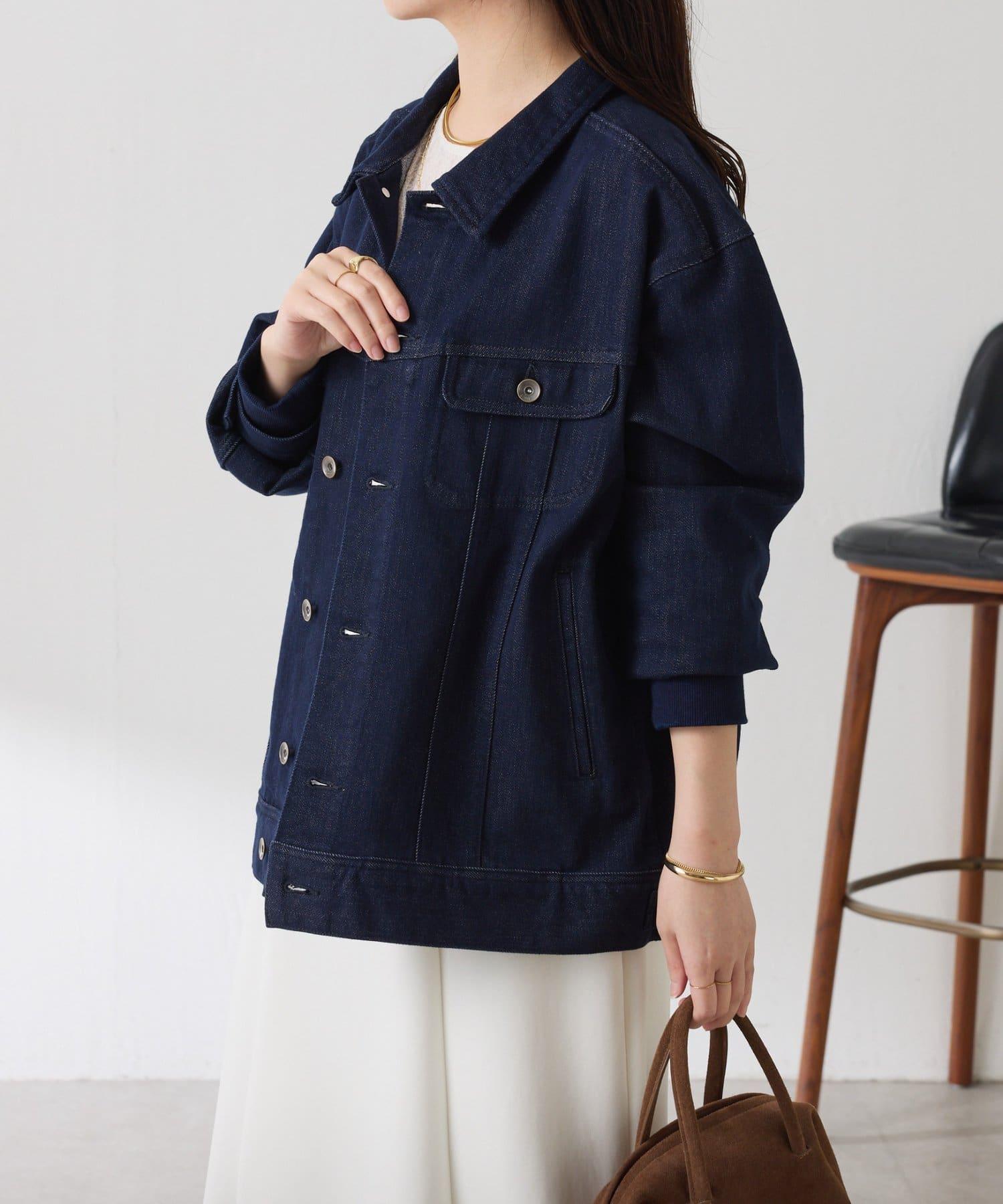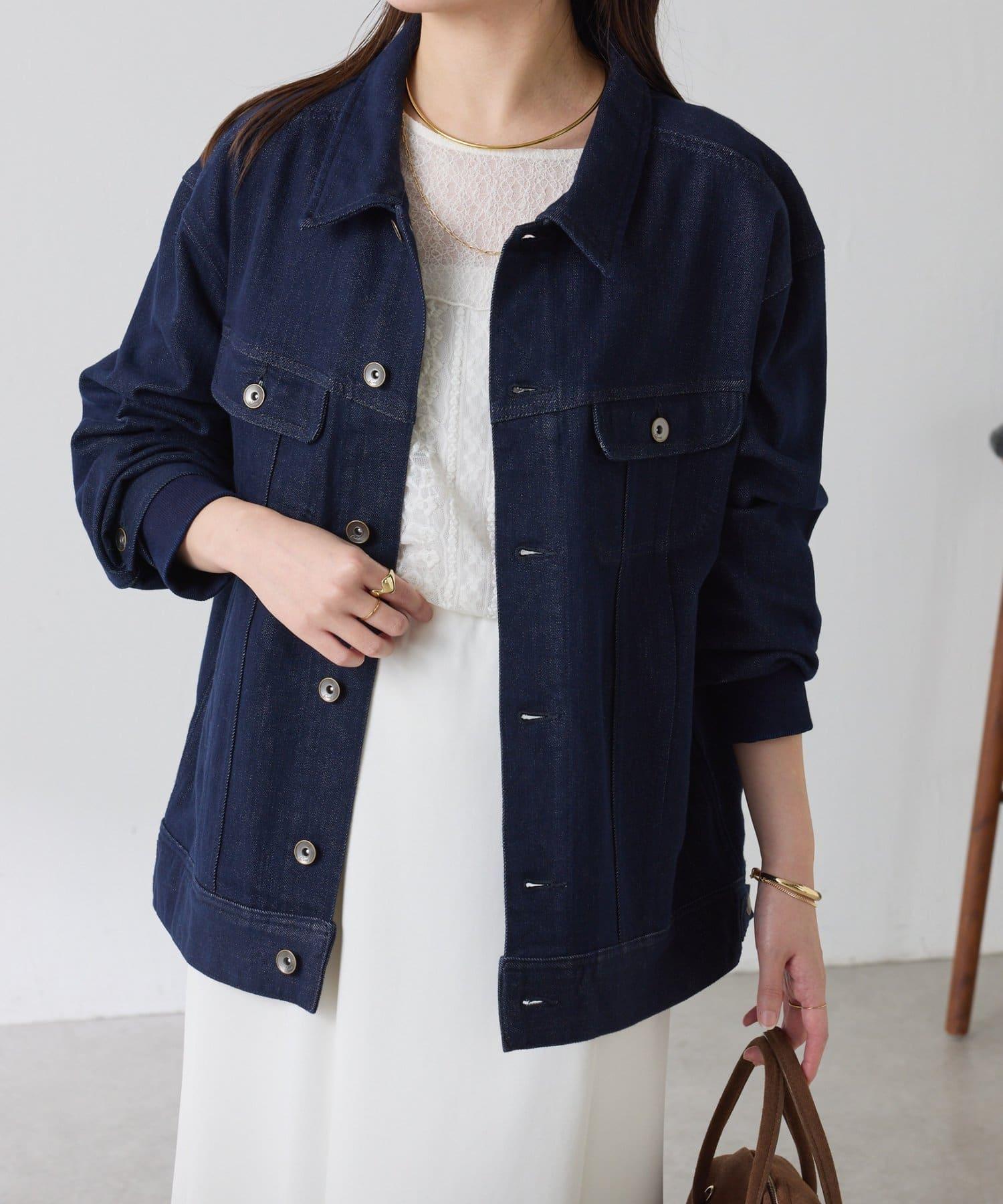 這款牛仔夾克採用彈力牛仔面料製成,袖子上有羅紋,穿起來不會有緊繃感。