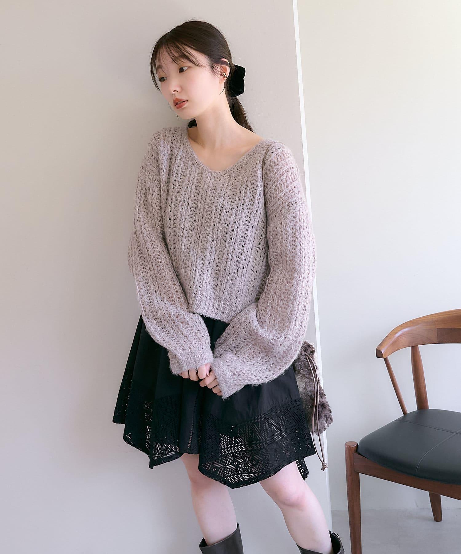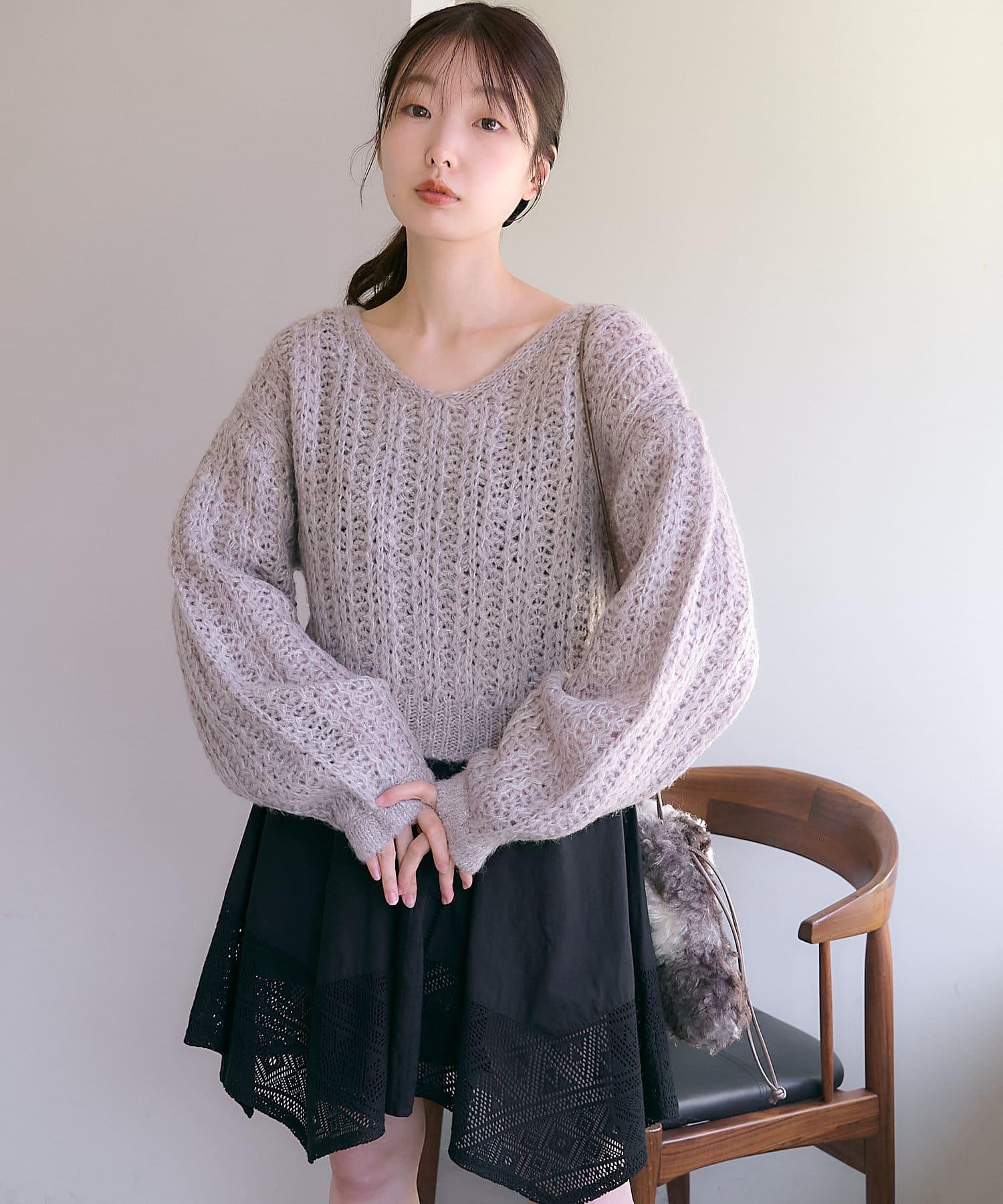 【2尺碼展開/4色展開】羊毛透孔編織毛衣