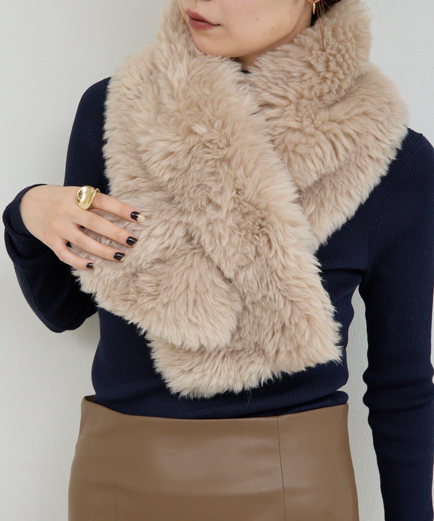 預約商品【2秒即可佩戴!】環保仿皮草交叉圍巾