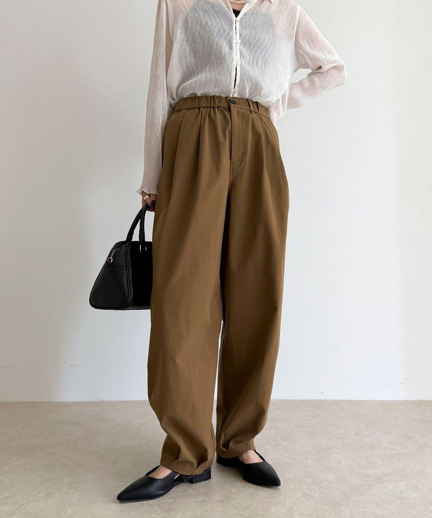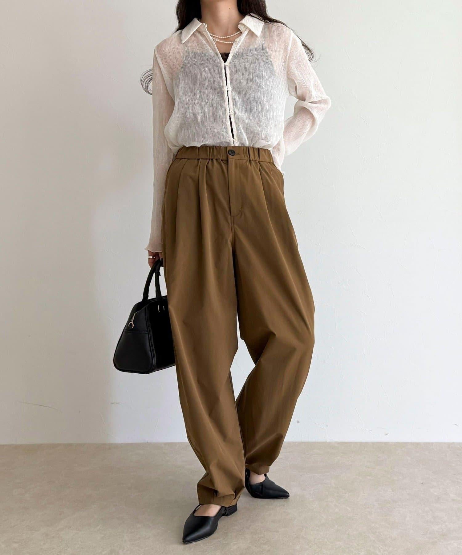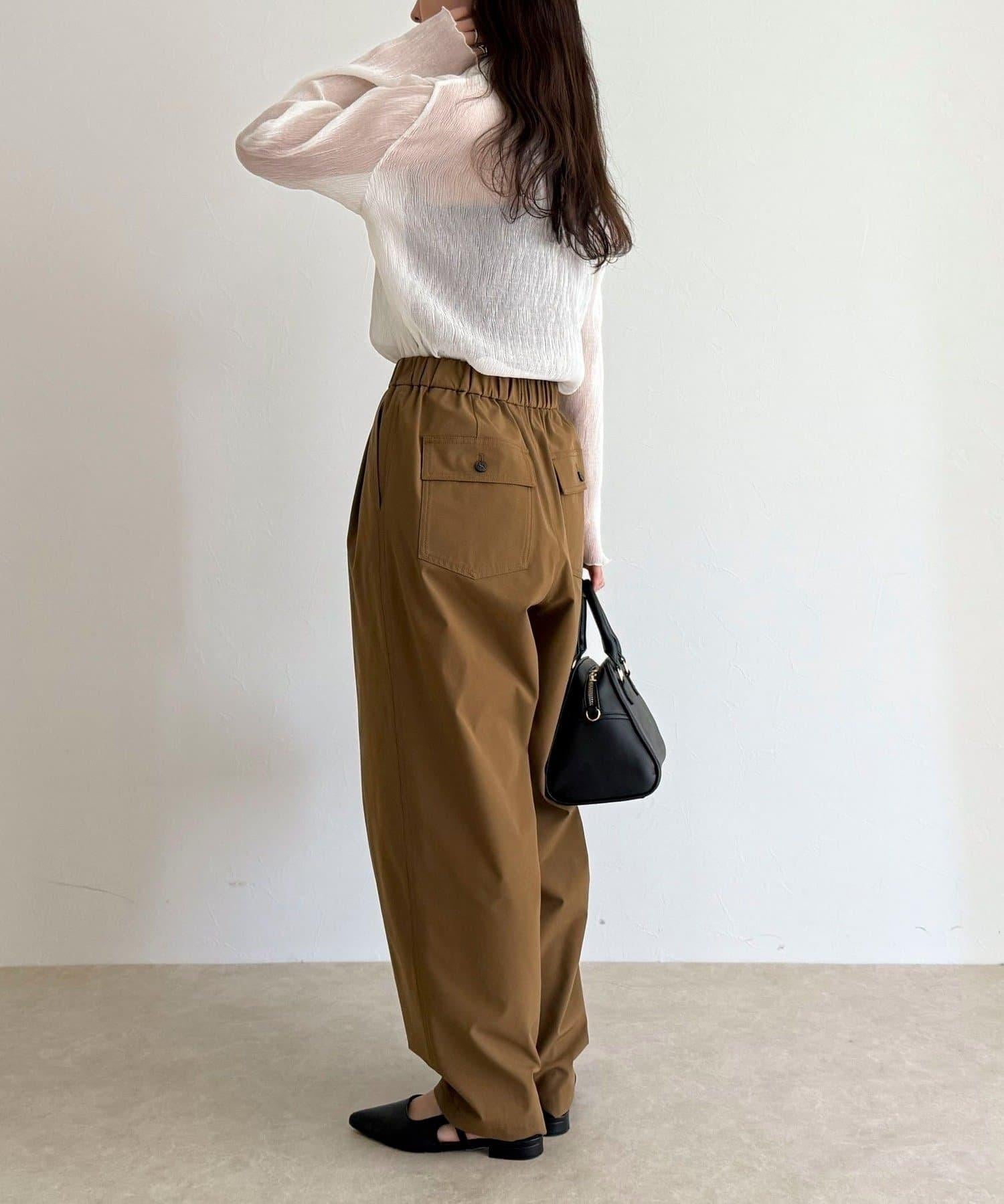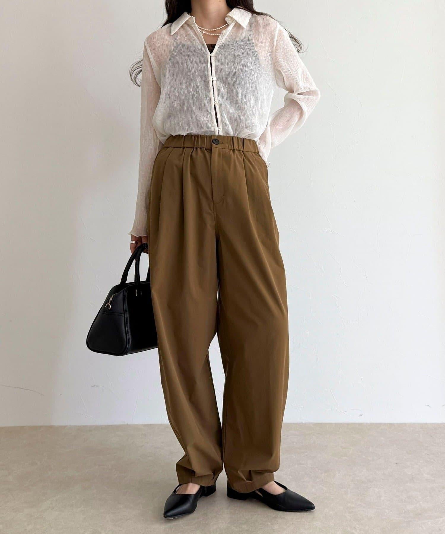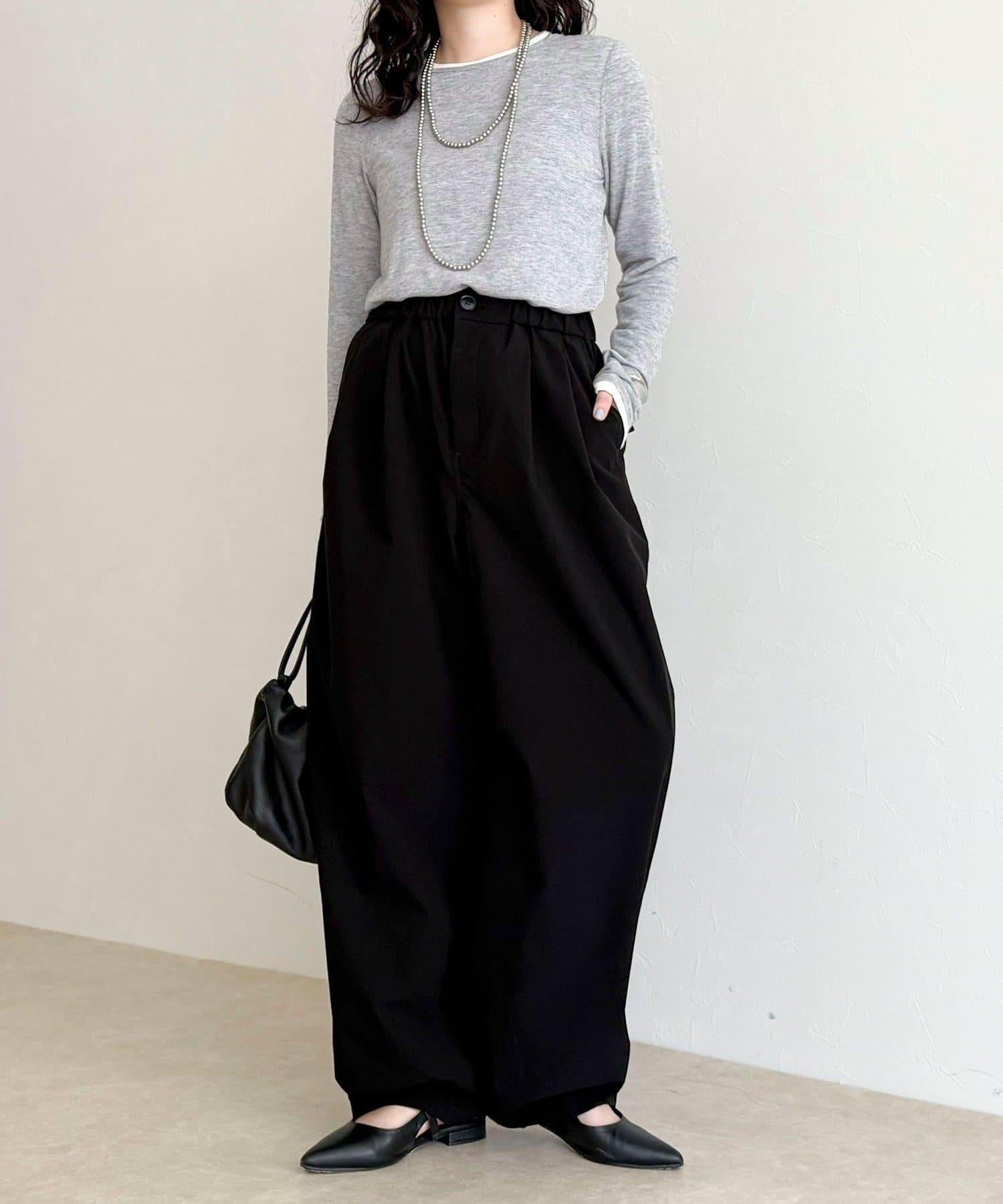 身高 156 厘米/穿 38 號:長度剛好蓋住腳踝,可以搭配平底鞋,平衡感很好!腰部有彈性,穿著方便,但廓形看起來很簡潔,輕鬆完成當下造型◎。