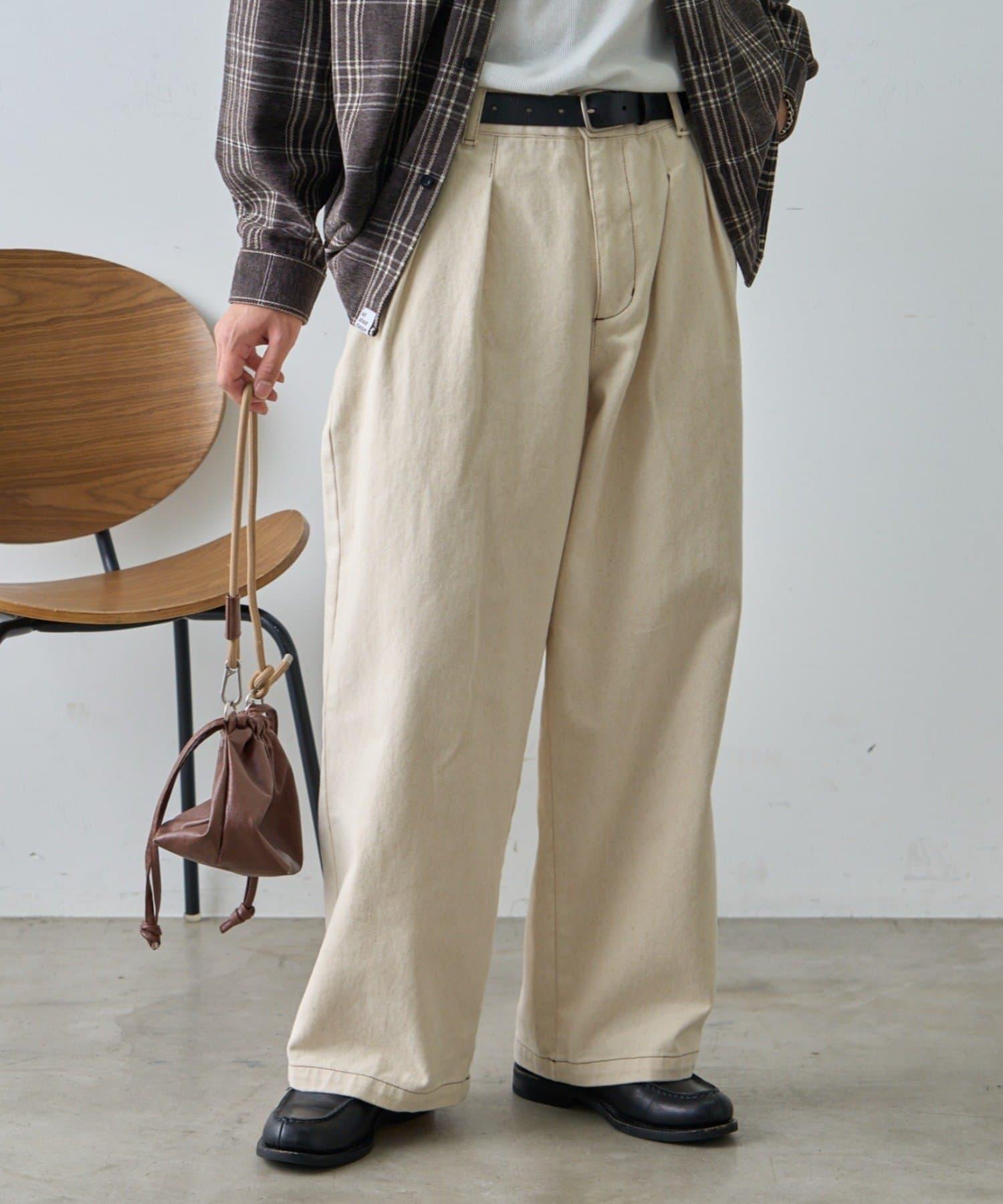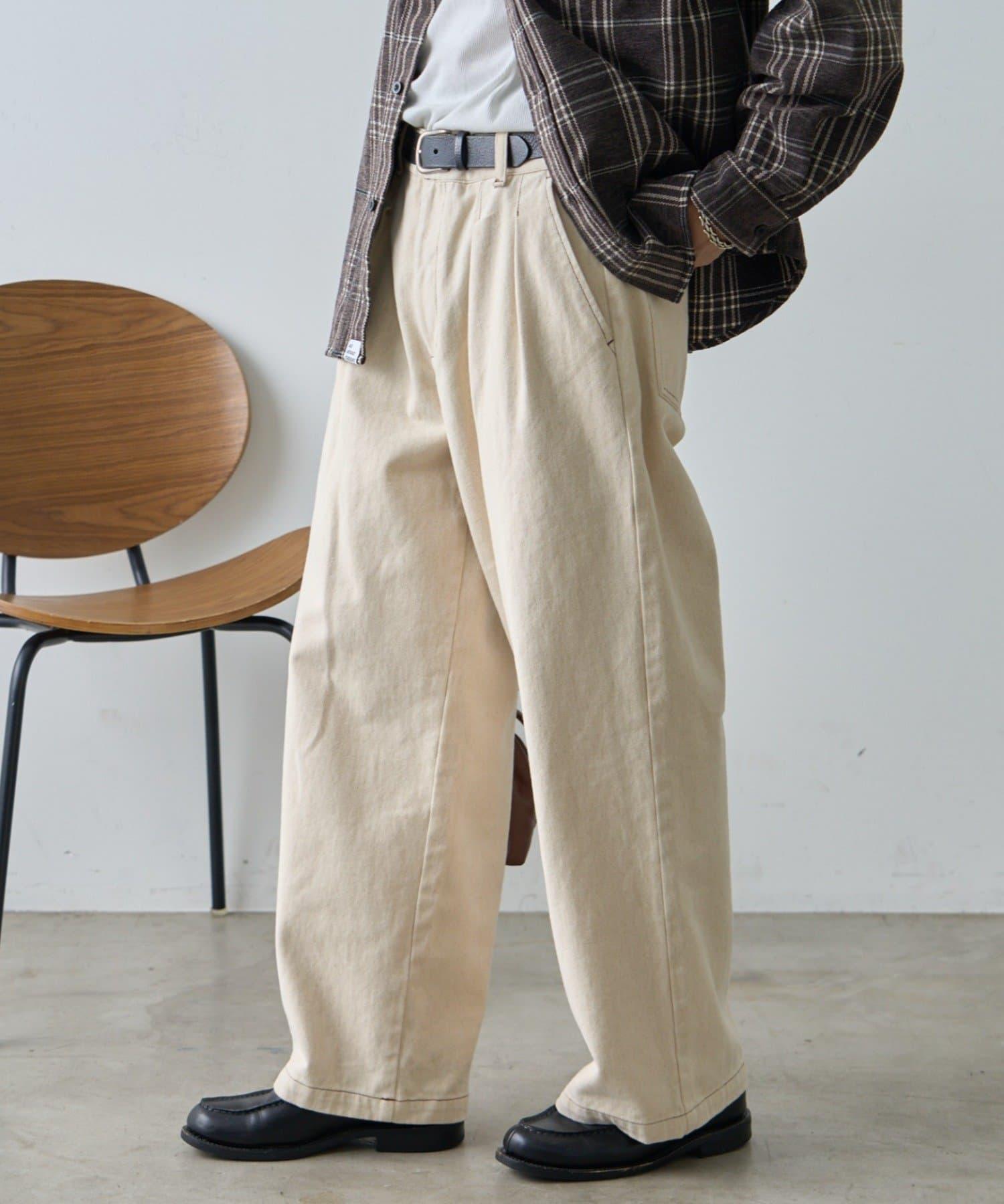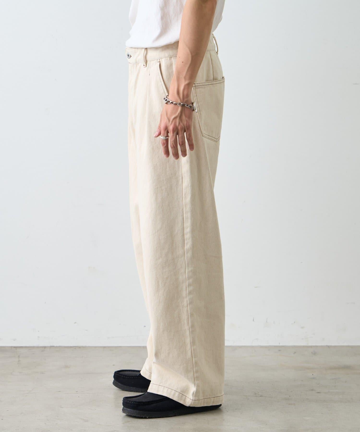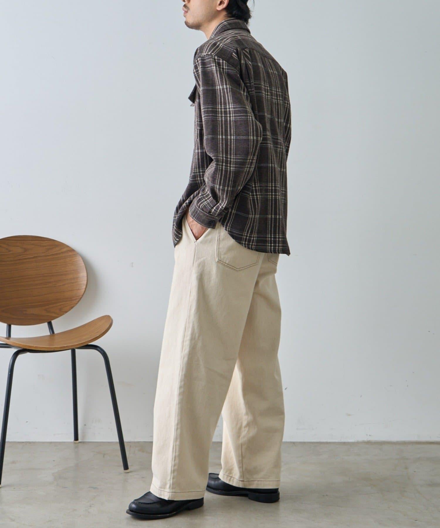寬褲採用蓬鬆度適中的毛邊牛仔布製成。