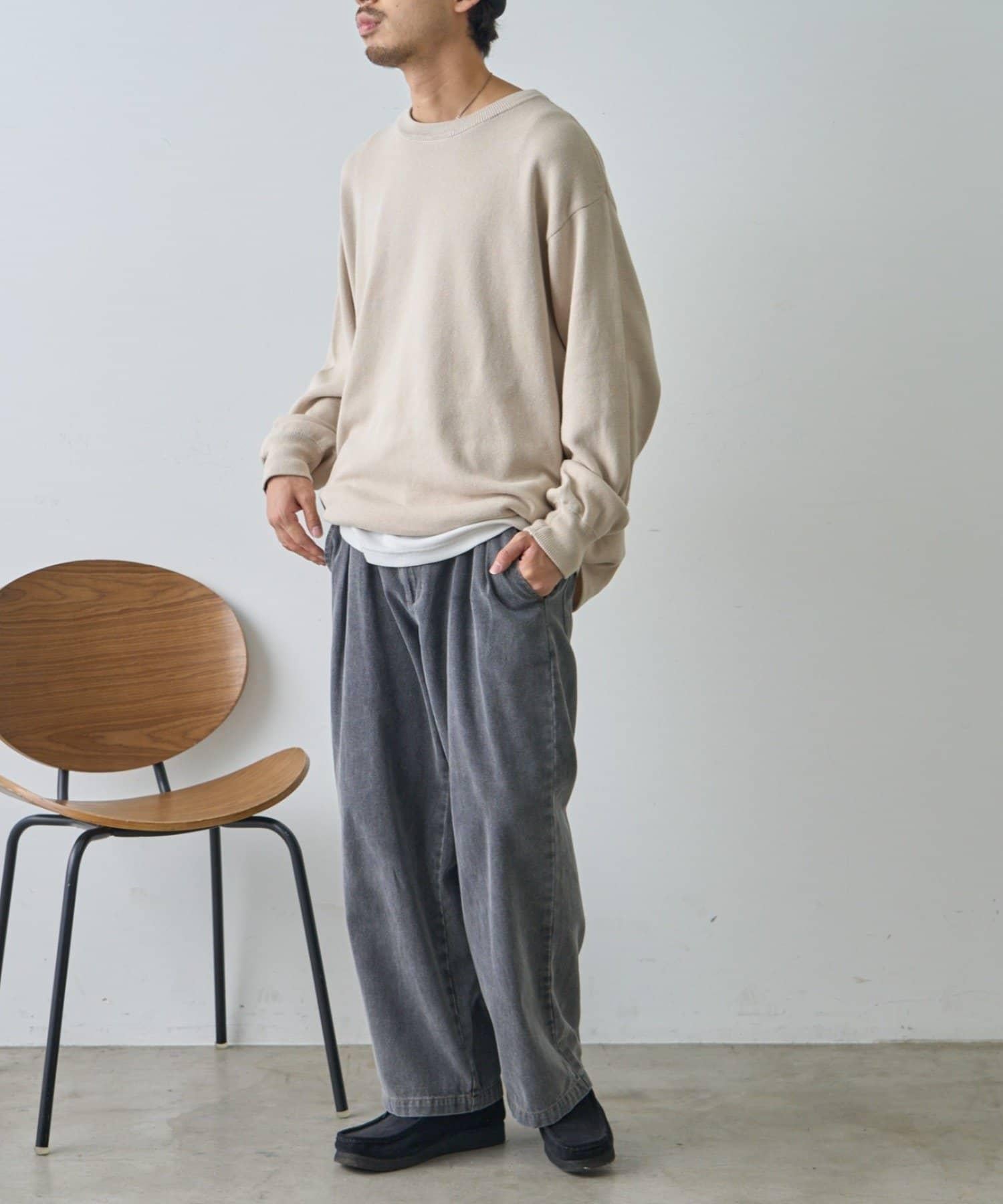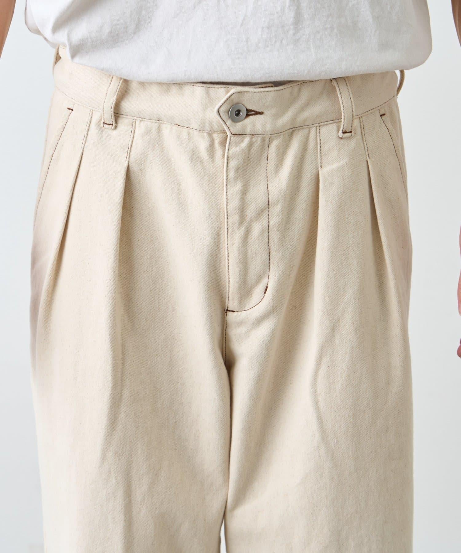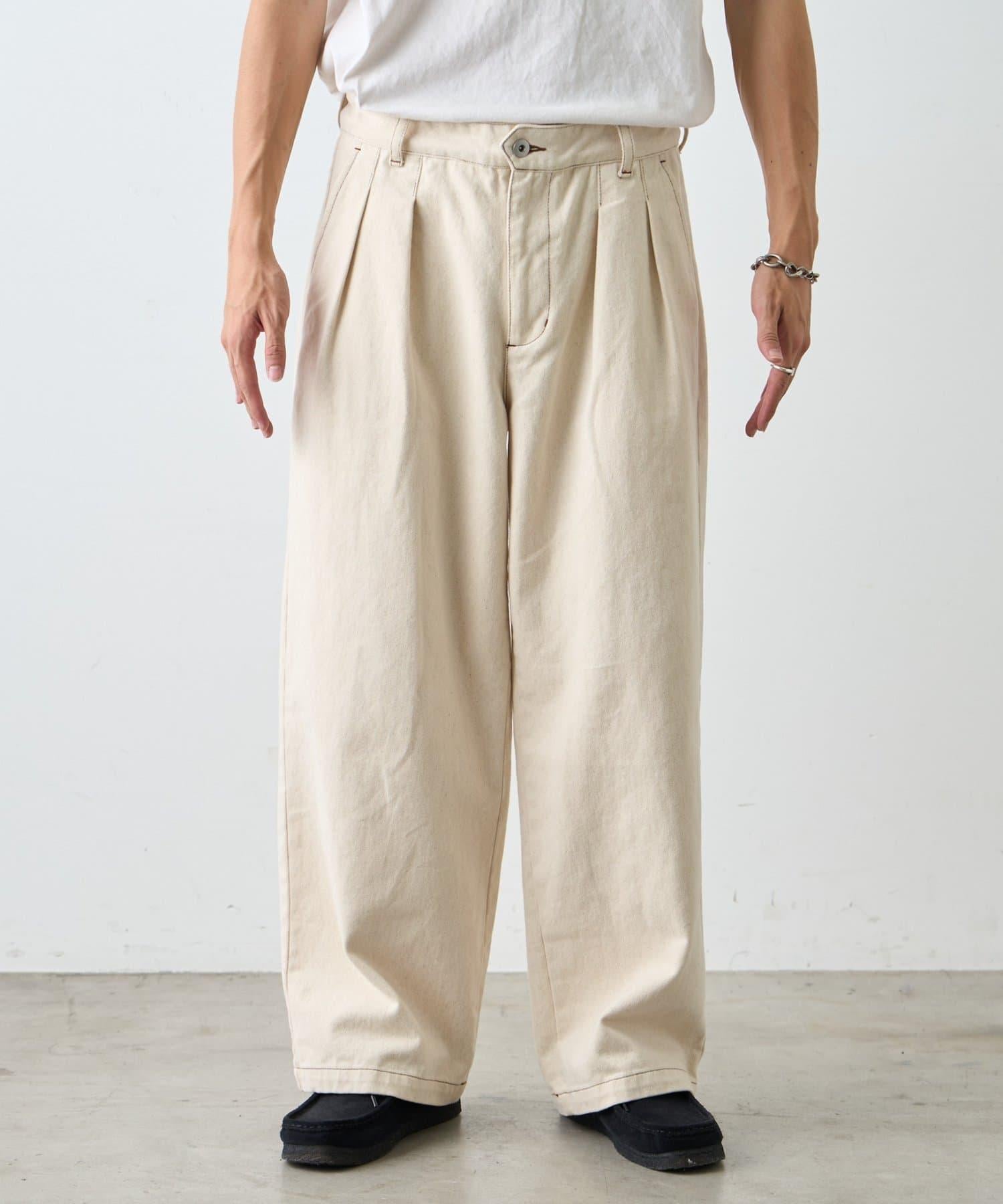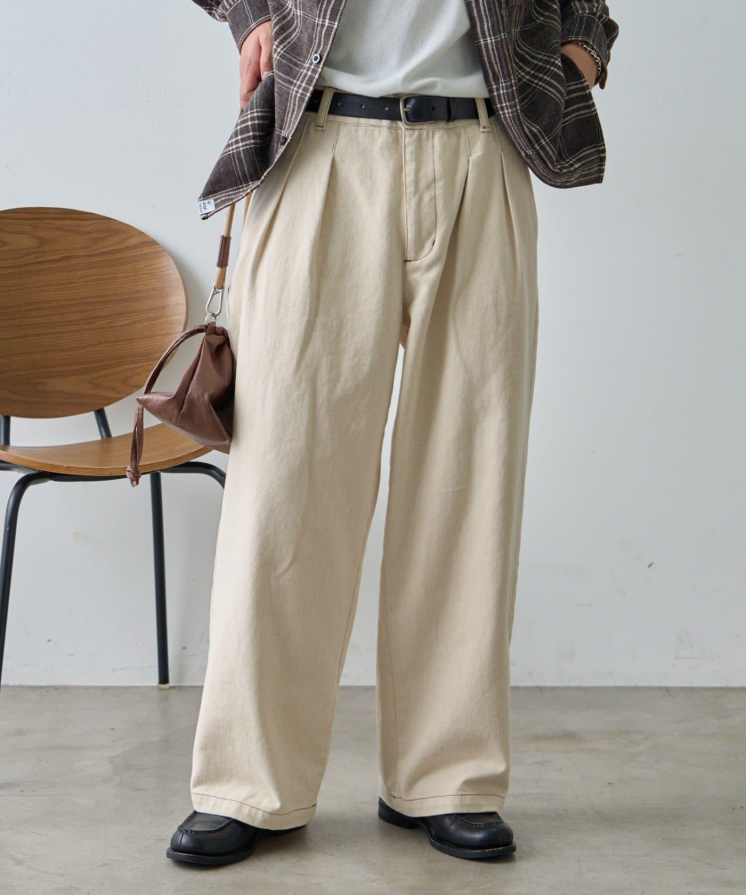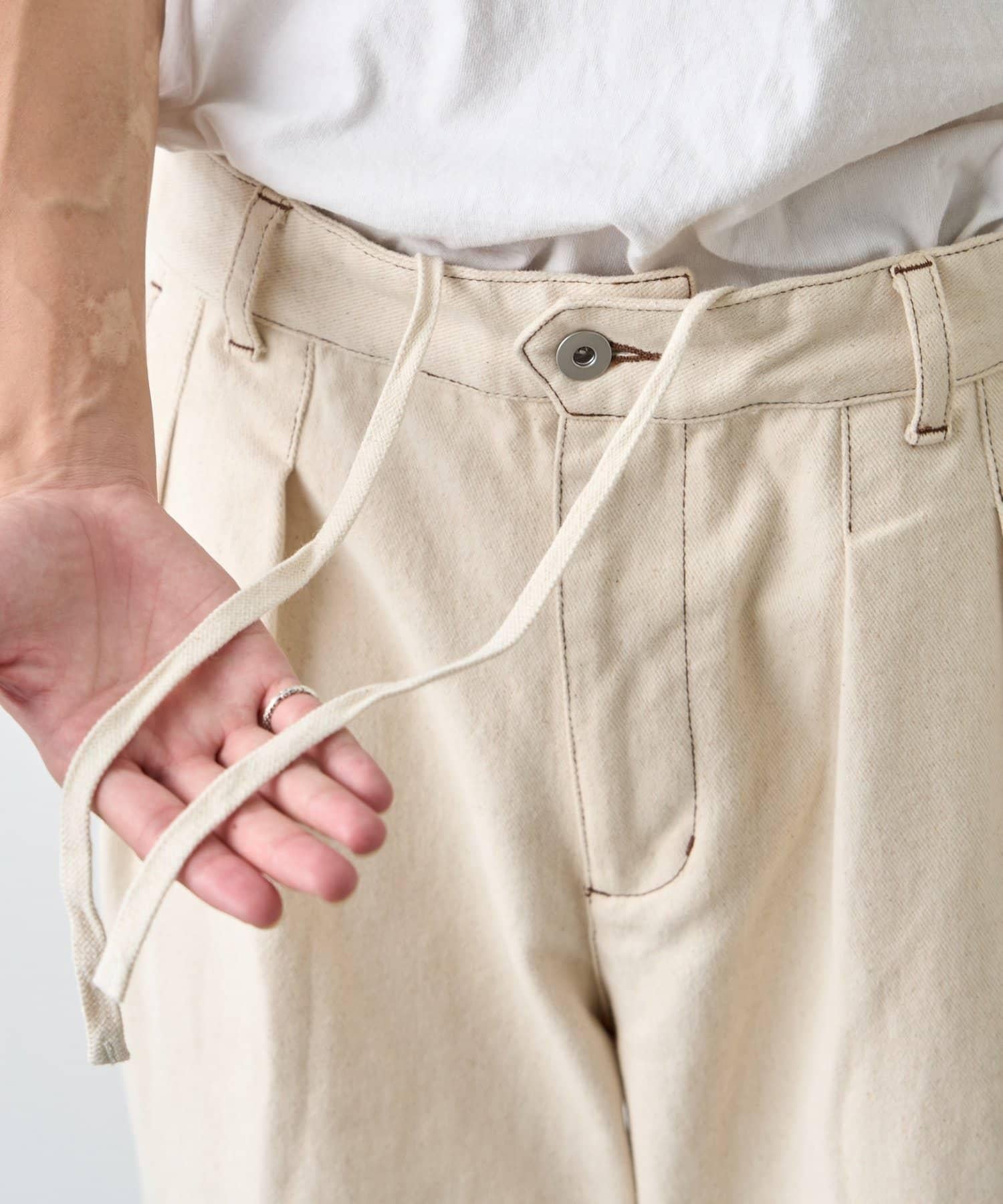寬褲採用蓬鬆度適中的毛邊牛仔布製成。