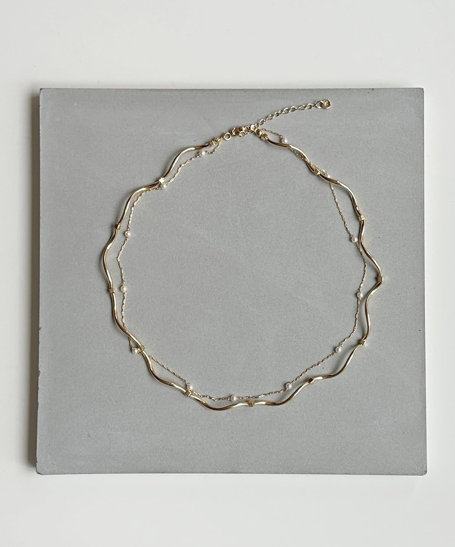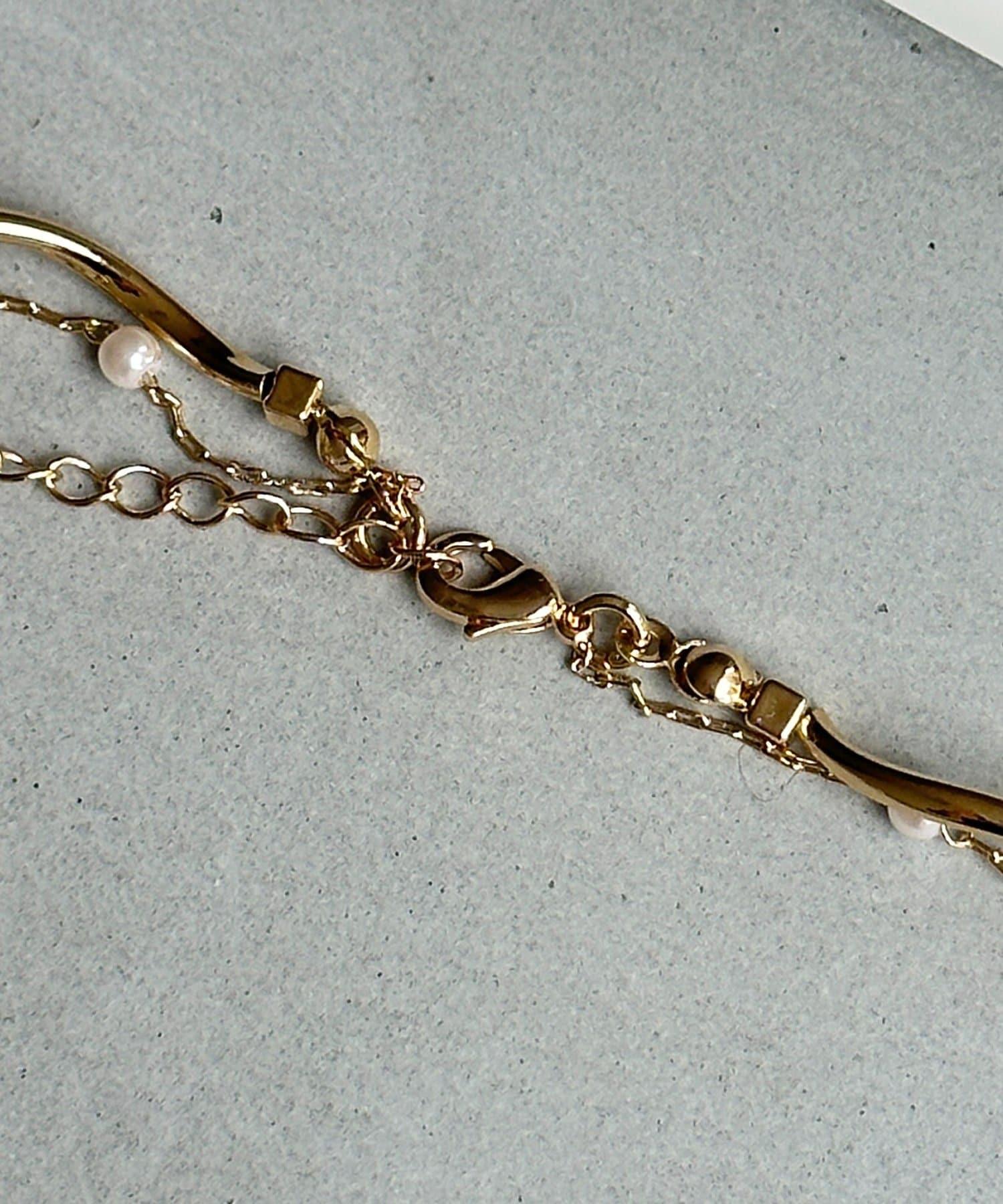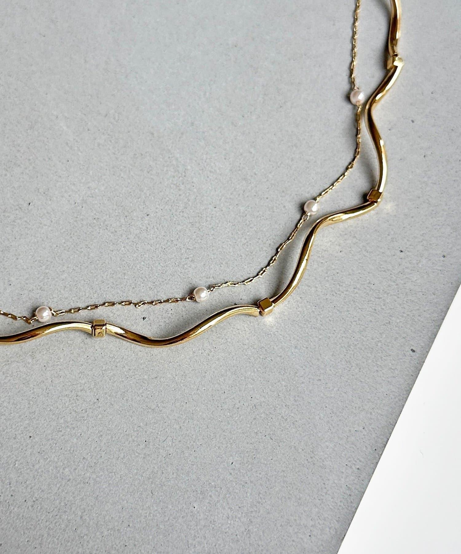 這款項鍊採用珍珠和波浪形鏈條,使頸部看起來更加簡潔。