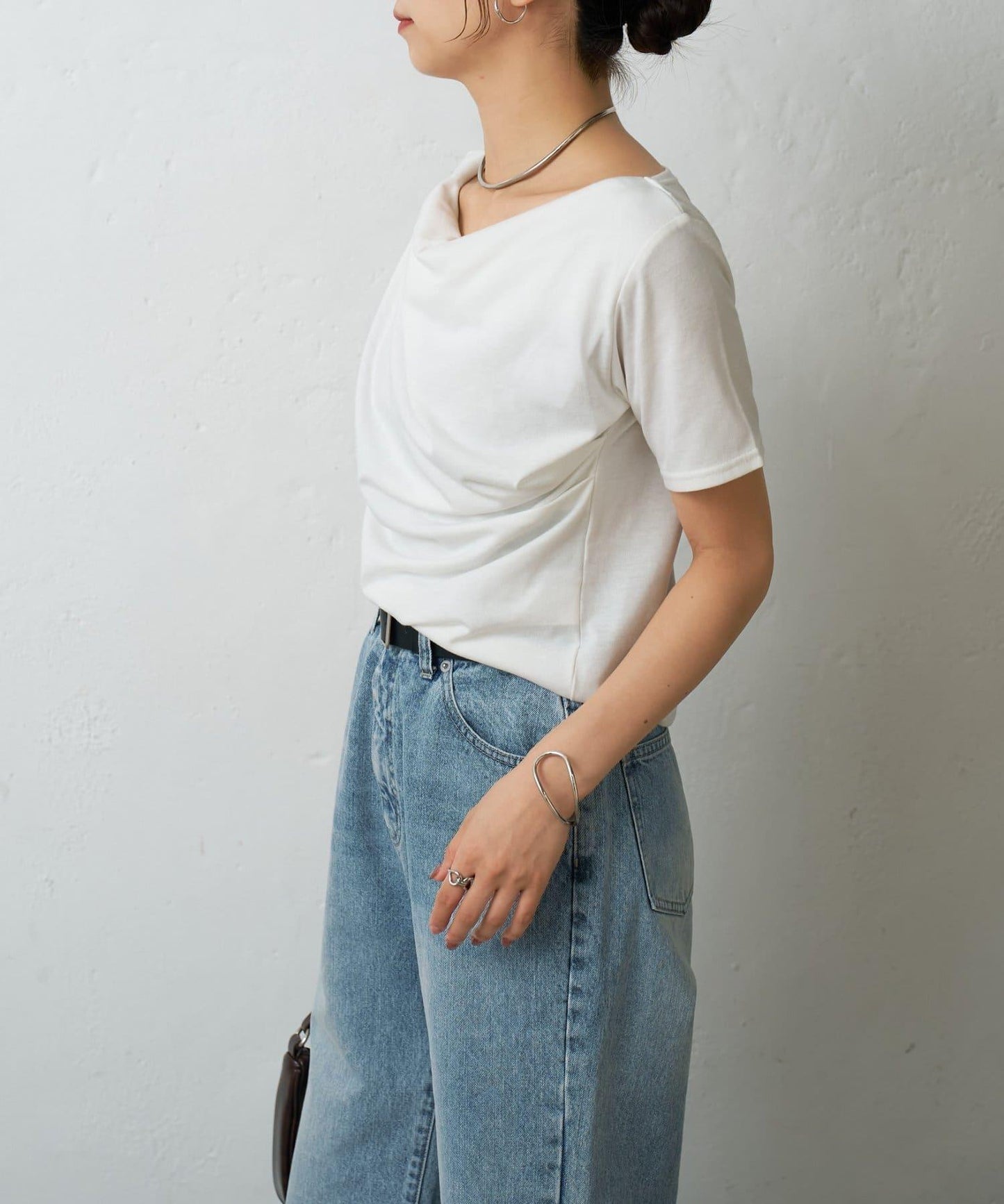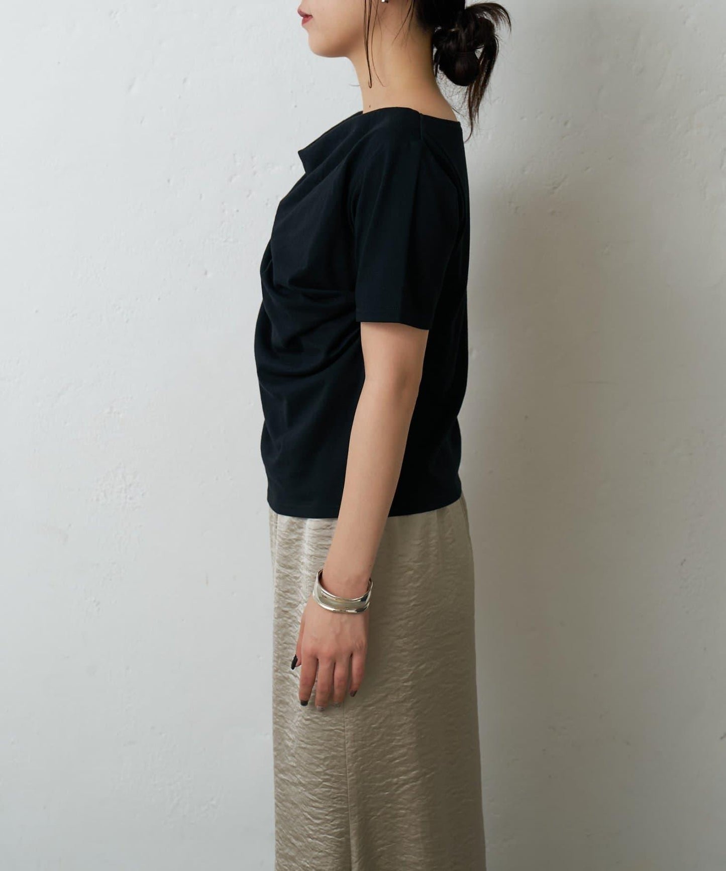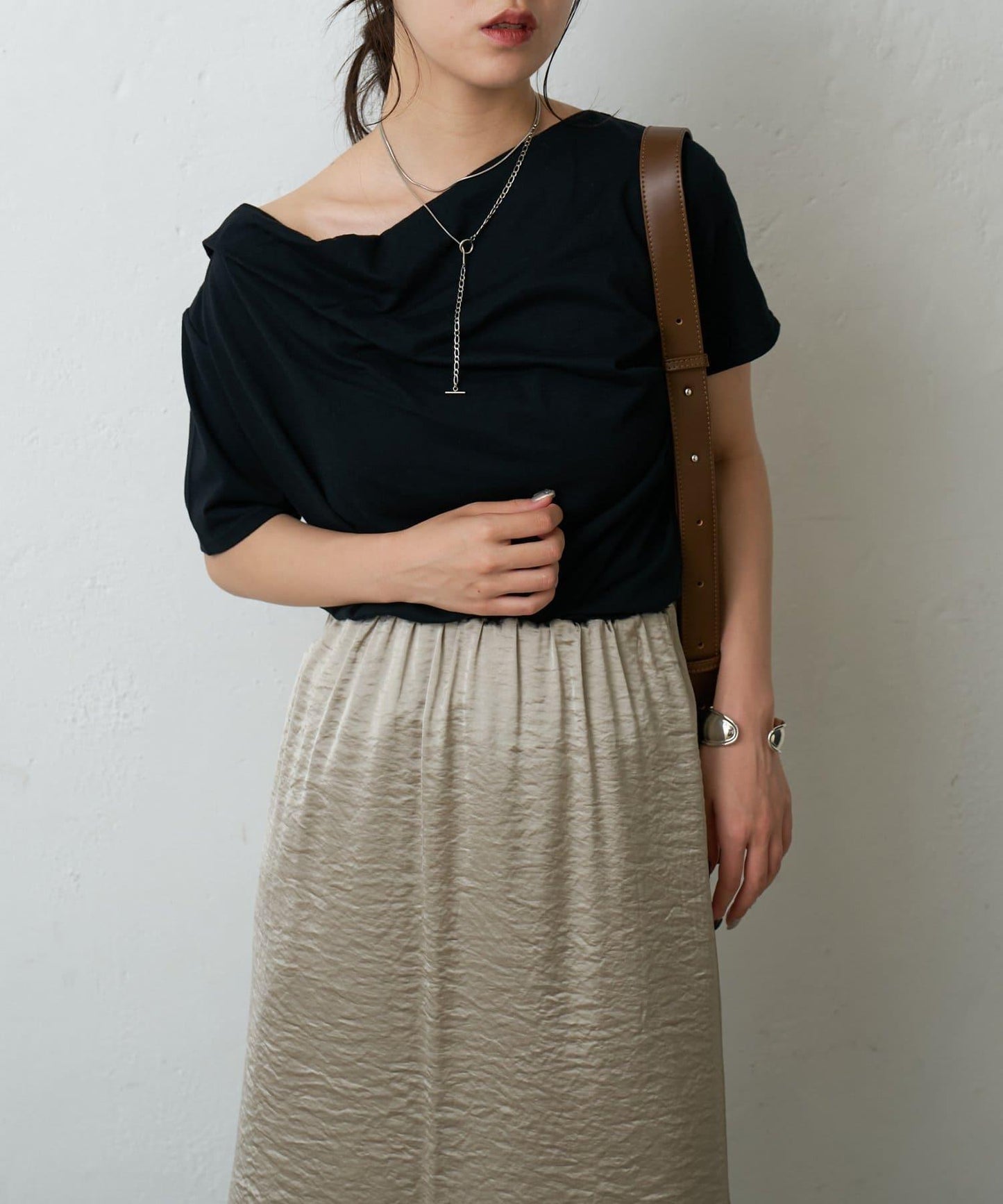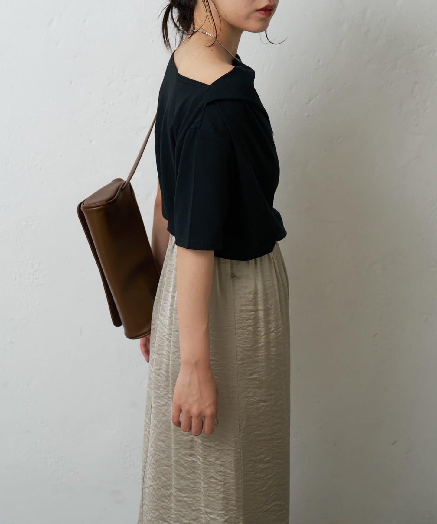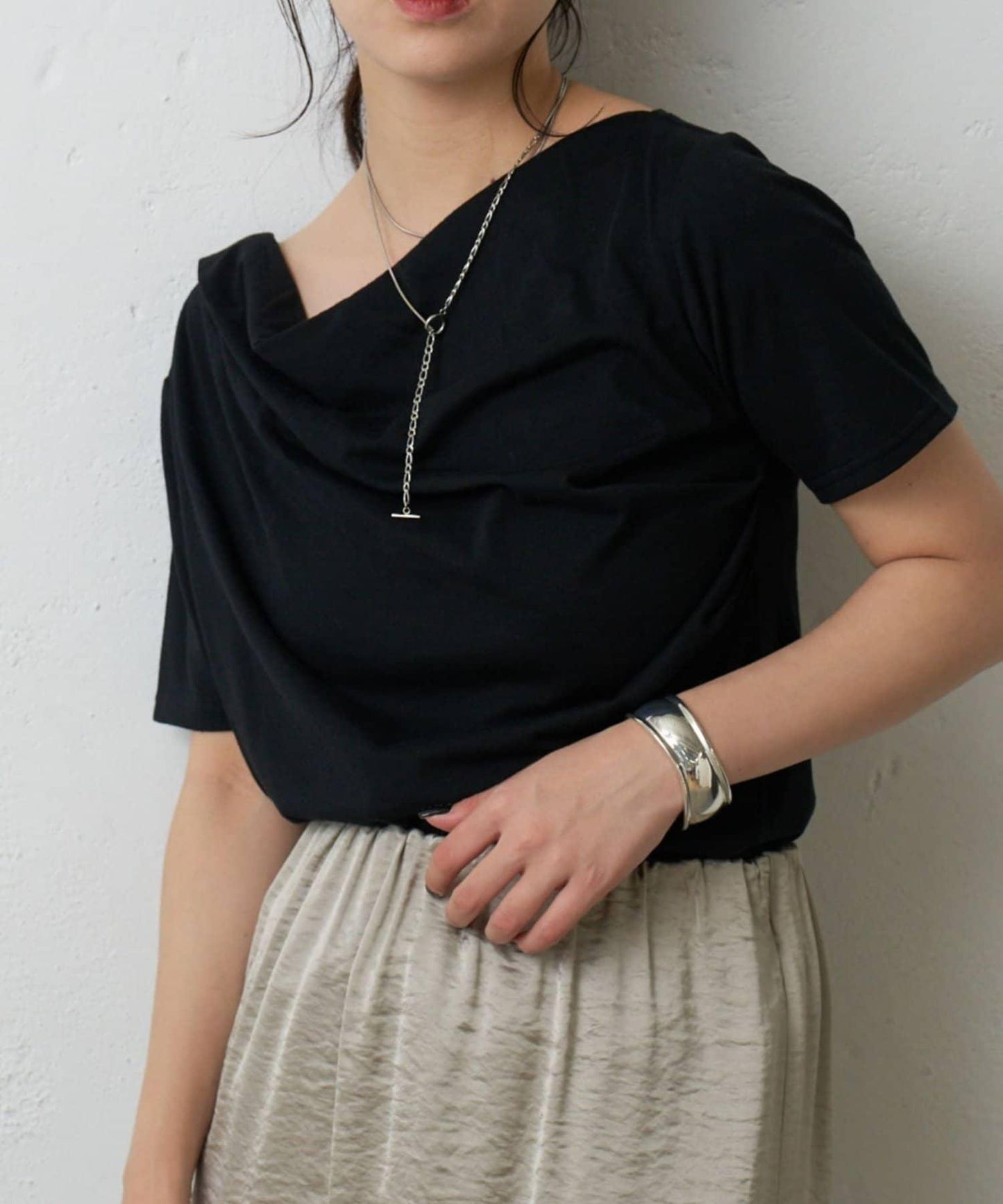 這是一款可根據心情選擇單肩或船型兩種穿法的設計上衣。單肩下穿時,不對稱的設計會給人動感健康的印象。如果搭配船領,則既有整潔的感覺,又有柔美的女性氣質。優雅沉穩的印象使其成為辦公室風格的完美選擇。優美的垂墜感讓肩頸部看起來美輪美奐,臉部周圍也呈現出華麗的效果。只要將它放入衣櫥,就能提升你的協調性。