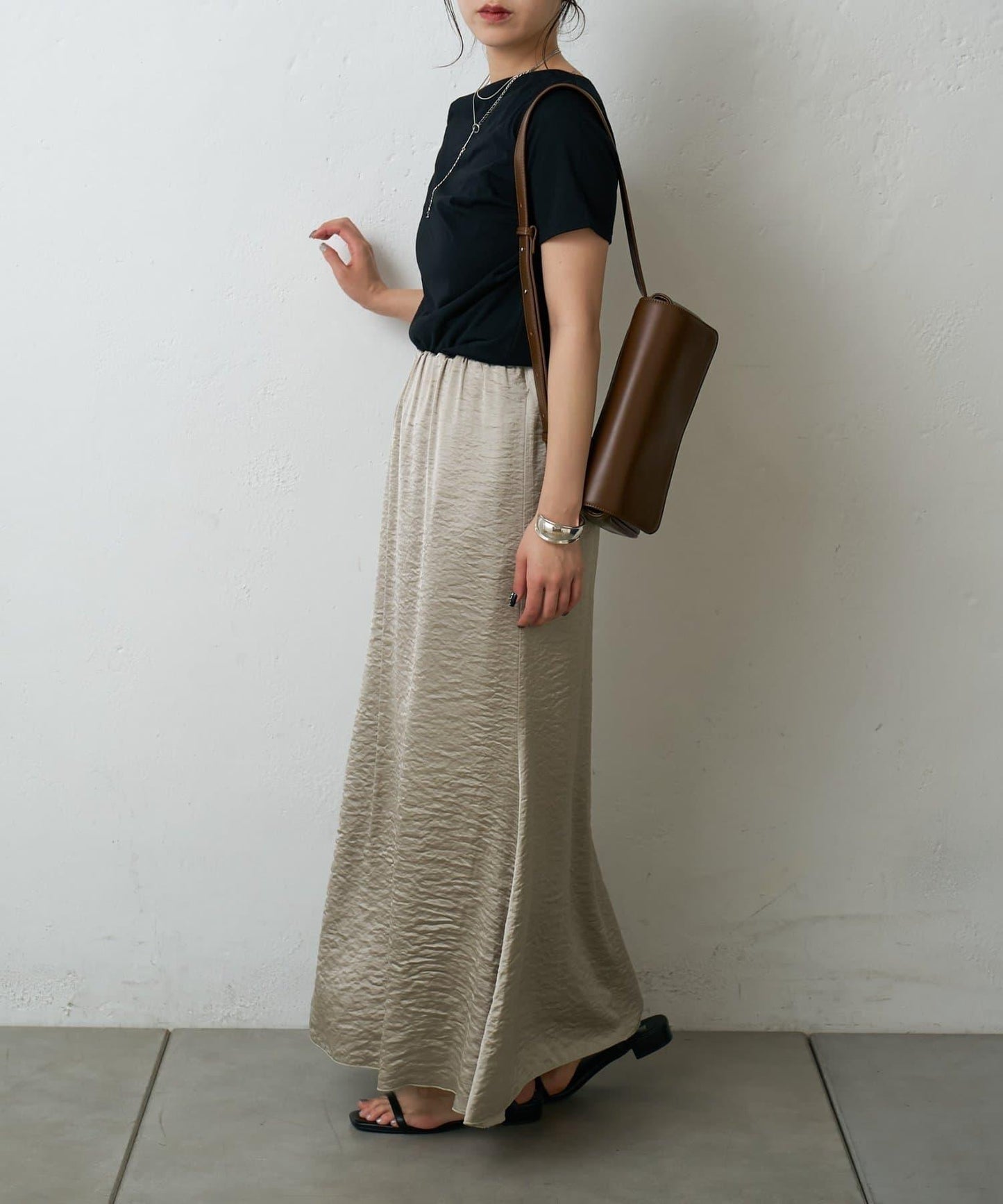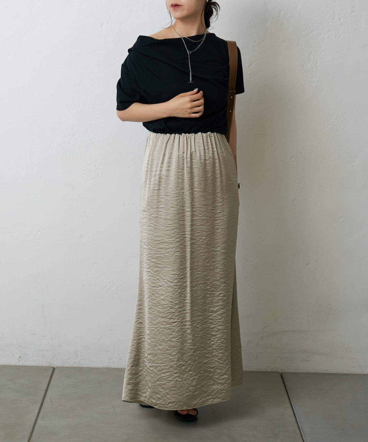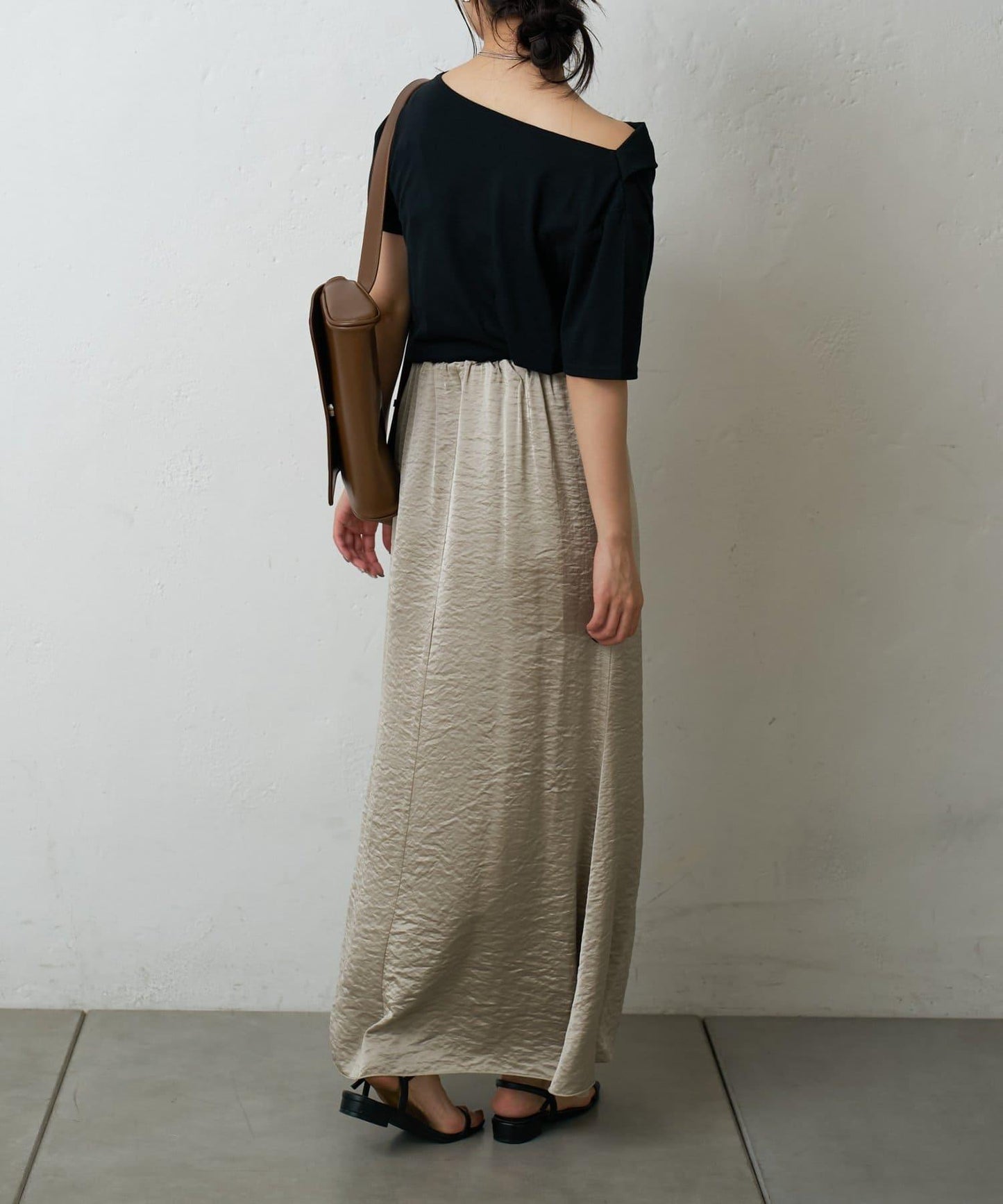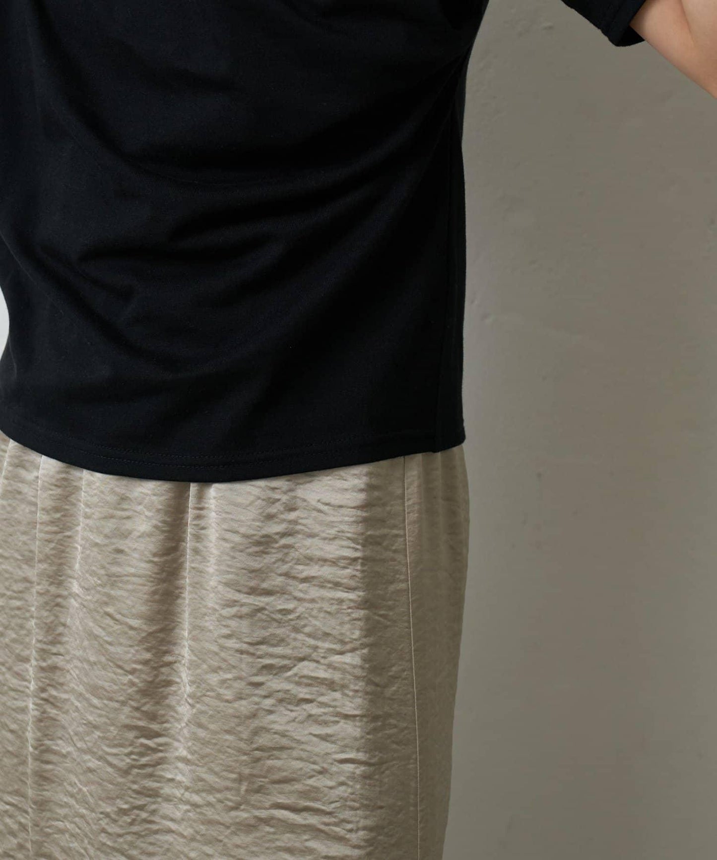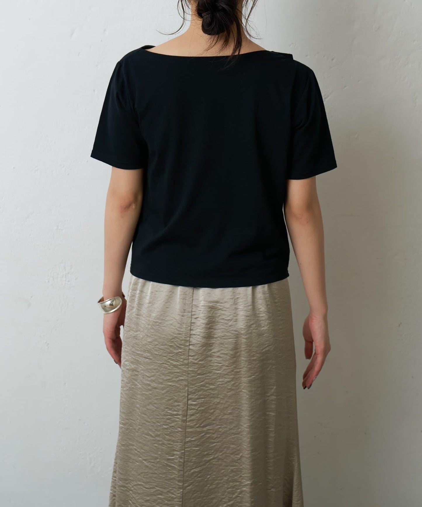 這是一款可根據心情選擇單肩或船型兩種穿法的設計上衣。單肩下穿時,不對稱的設計會給人動感健康的印象。如果搭配船領,則既有整潔的感覺,又有柔美的女性氣質。優雅沉穩的印象使其成為辦公室風格的完美選擇。優美的垂墜感讓肩頸部看起來美輪美奐,臉部周圍也呈現出華麗的效果。只要將它放入衣櫥,就能提升你的協調性。