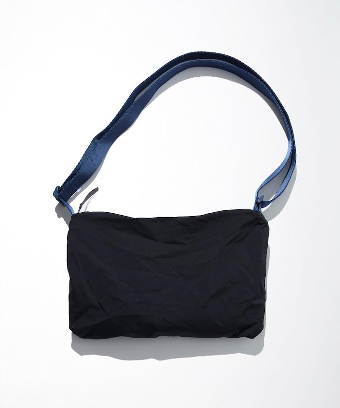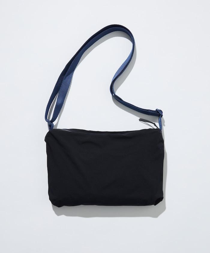 深藍色的 SACOSH 採用防水透氣面料製成。我們有大號和小號之分,這個是小號的。它可以裝錢包、鑰匙、手機和一本平裝書,大小剛好可以在我脫帽時放帽子。我