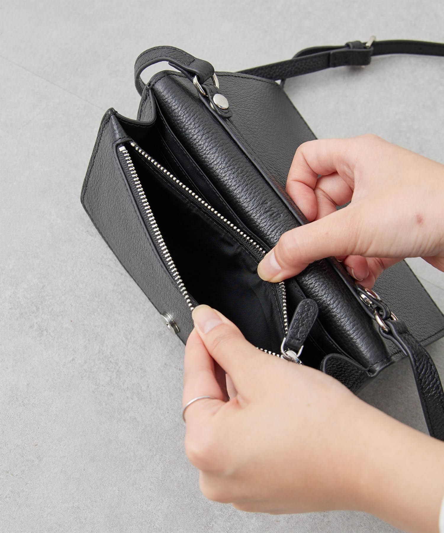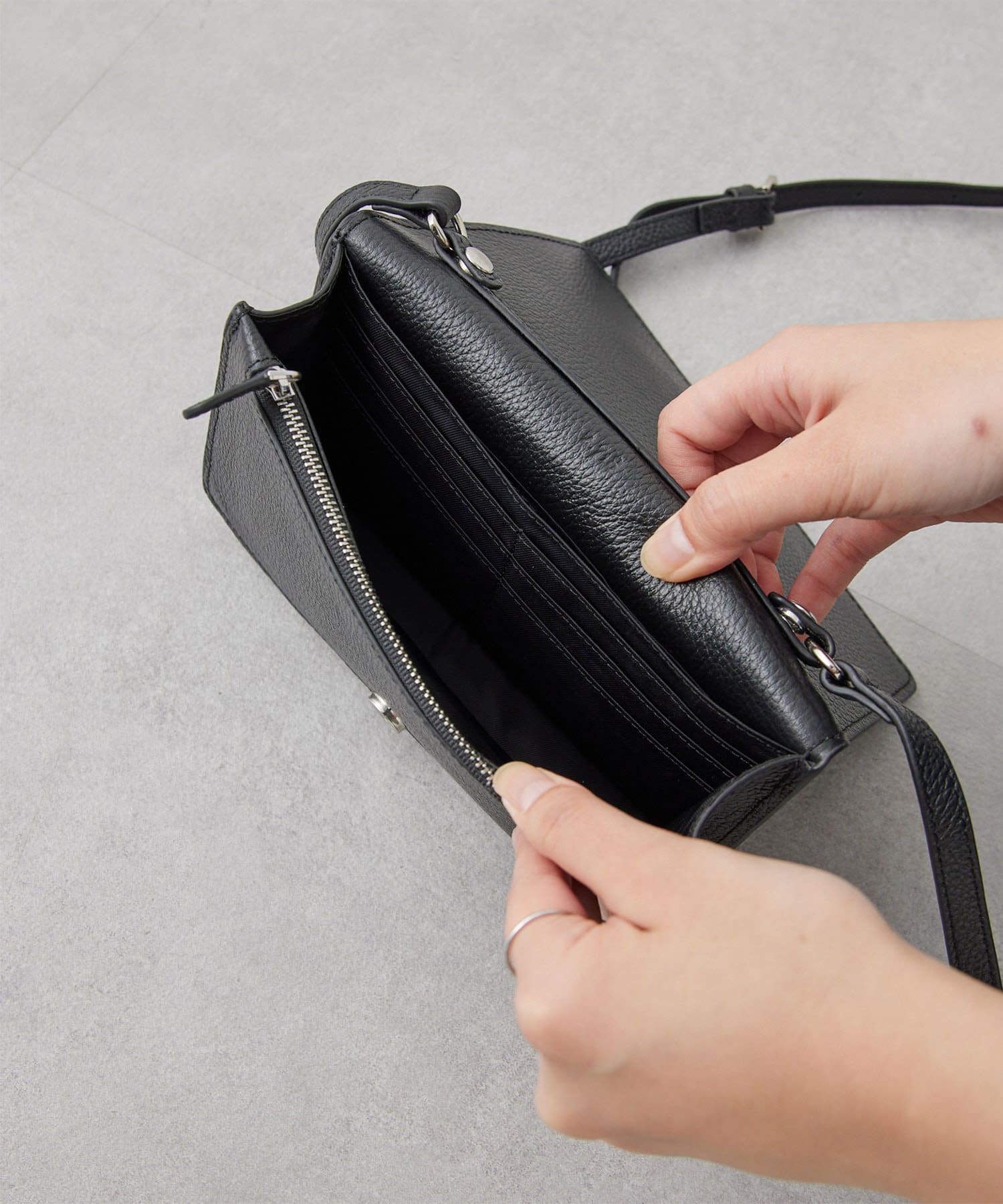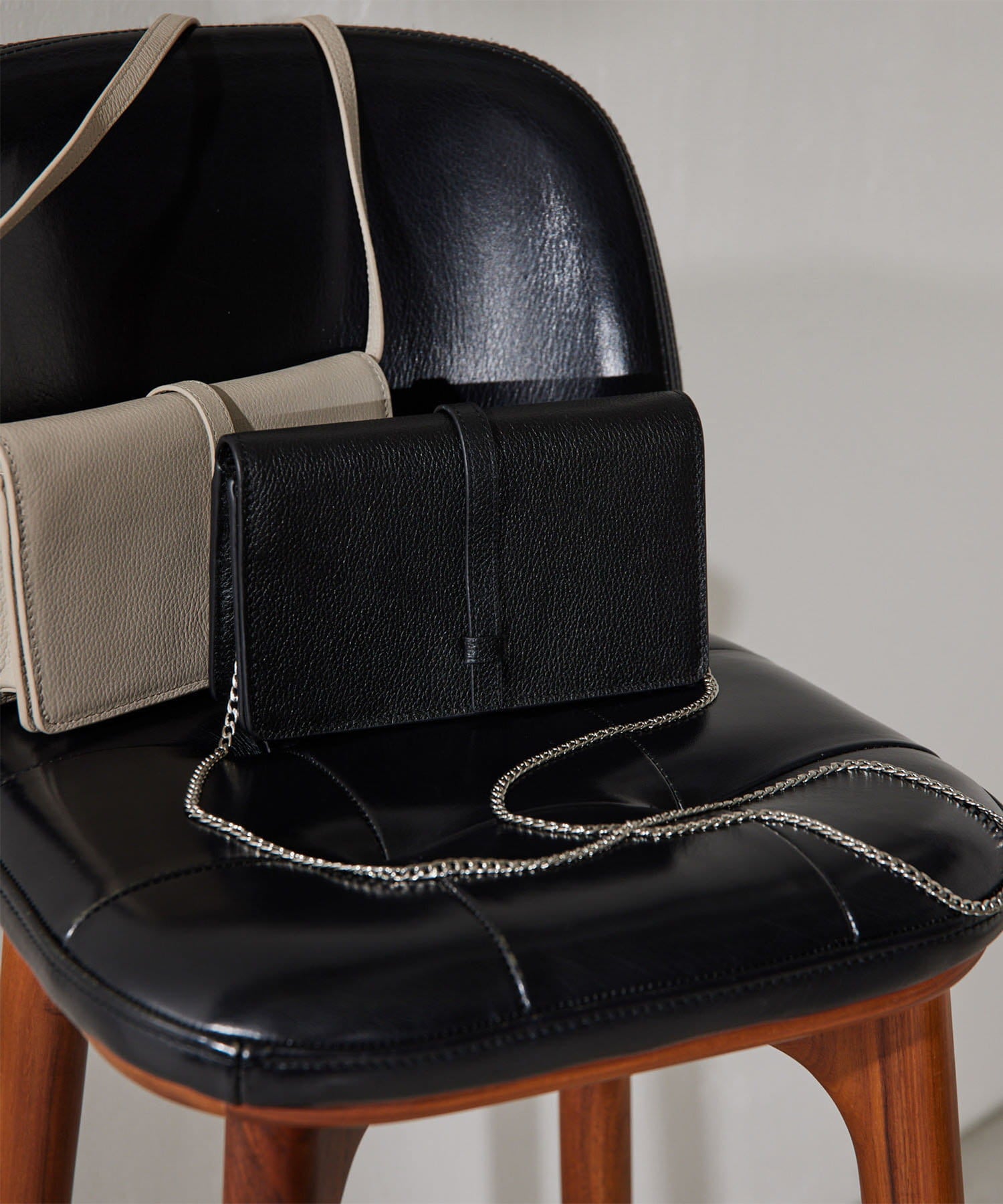 極簡風格的錢包肩帶,可按不同方式擺放。