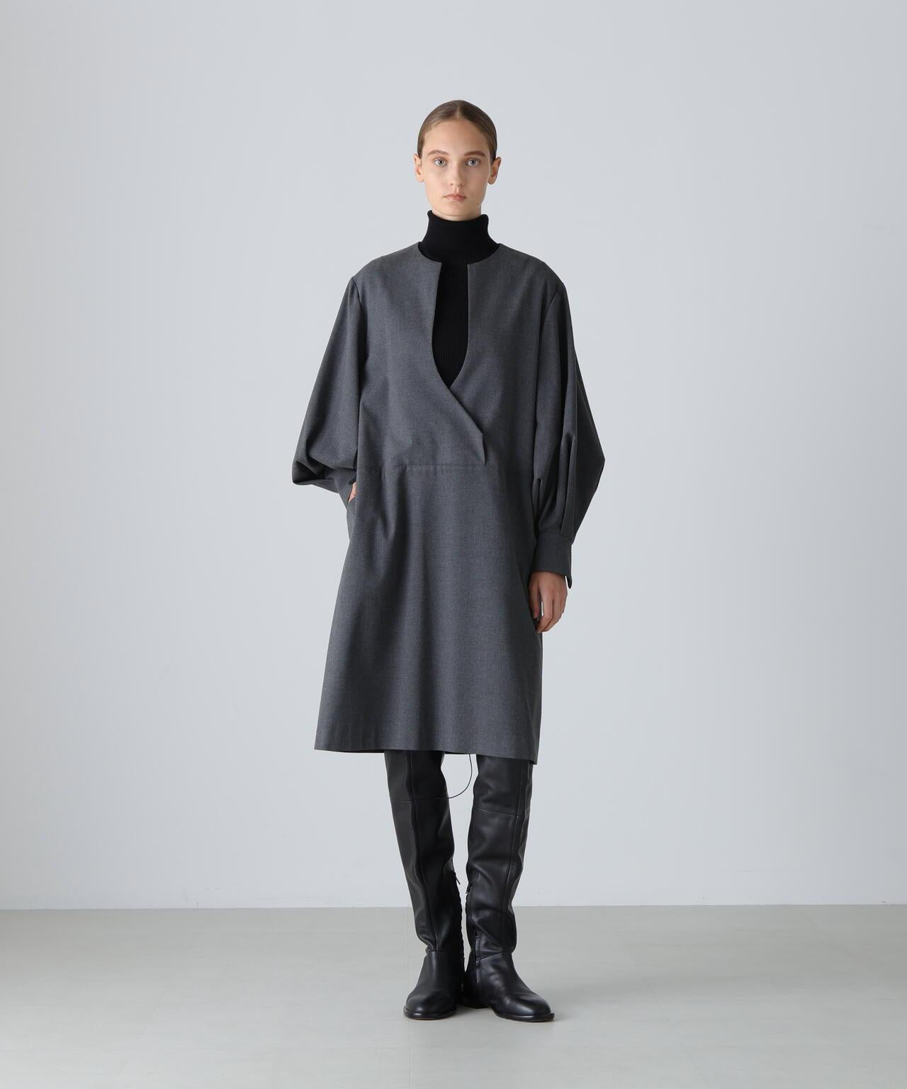 採用獨特設計的乾式混合連衣裙獨特的連衣裙採用類羊毛合成材料製成。這款連衣裙是對歷史設計的改良,在袖子的體積和稍短的長度之間取得了平衡。羊毛紡紗面料與滌綸-嫘祖混紡面料重新組合,突出了面料的輕盈和柔軟。