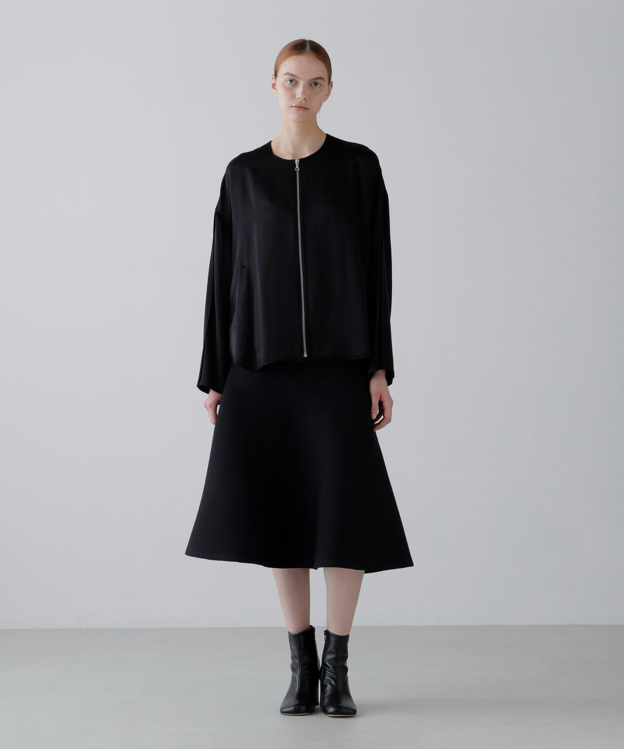 外形柔美的喇叭針織裙復興設計的喇叭針織裙。這款單品改用了貼身的輕質滌綸紗線,使輪廓更加飄逸。柔軟的聚酯紗線具有體積感和高彈性,加工後手感柔軟。採用了光澤度較低的類型。