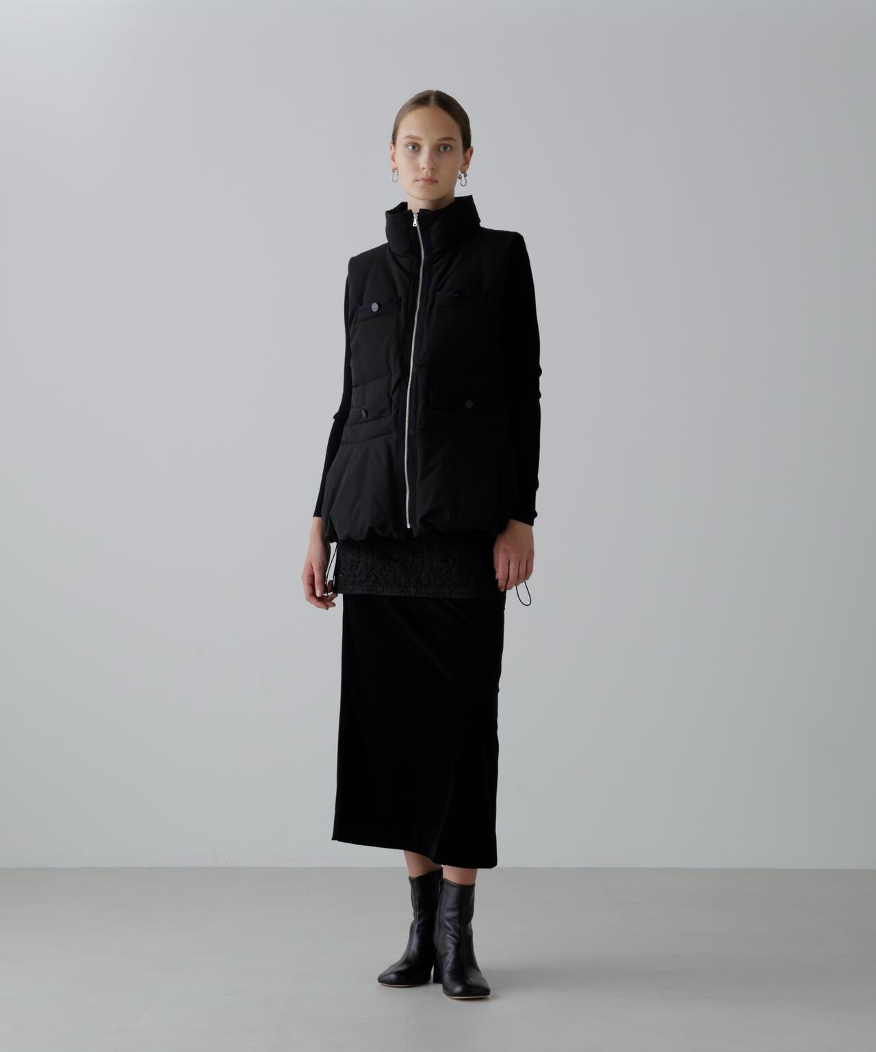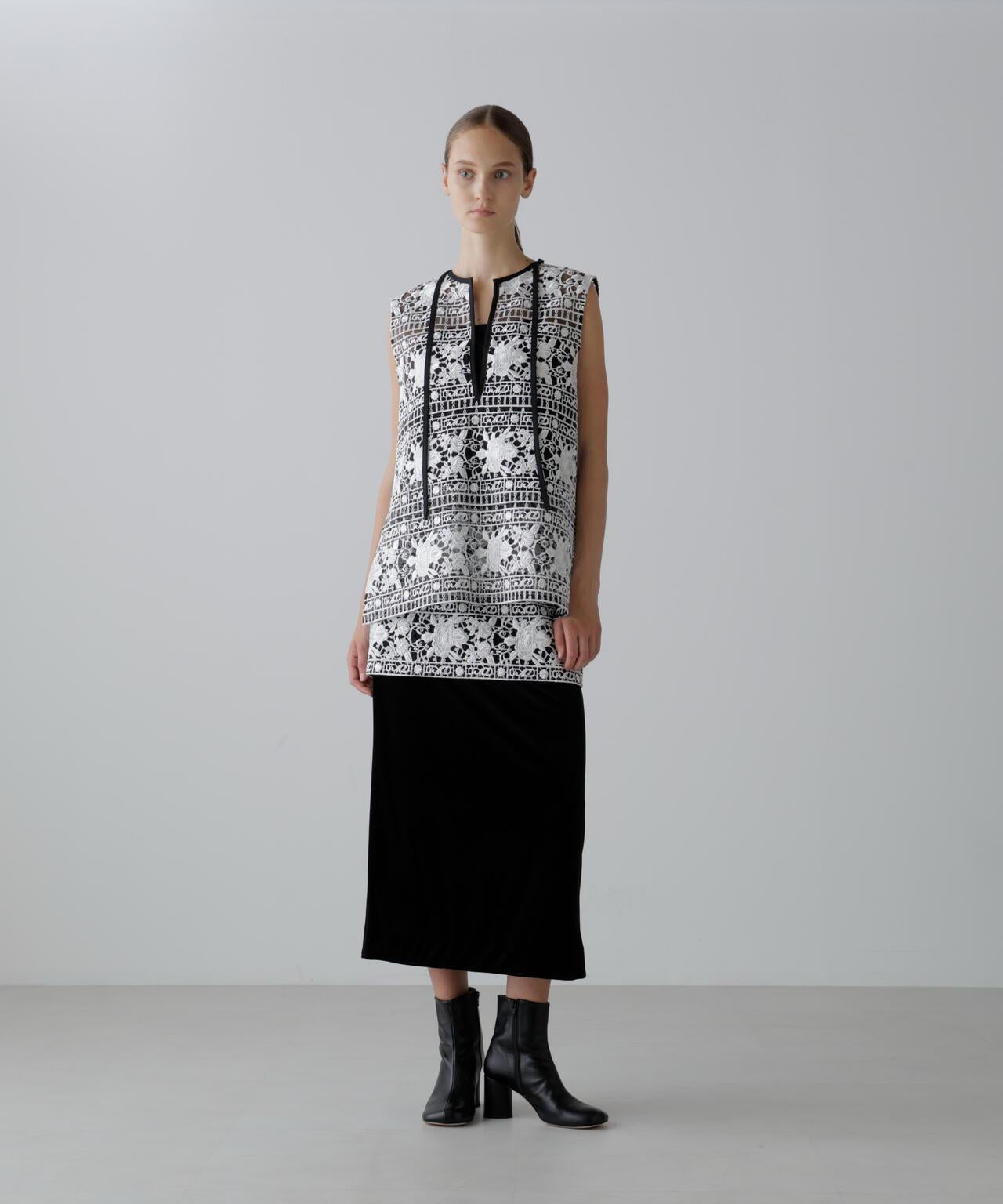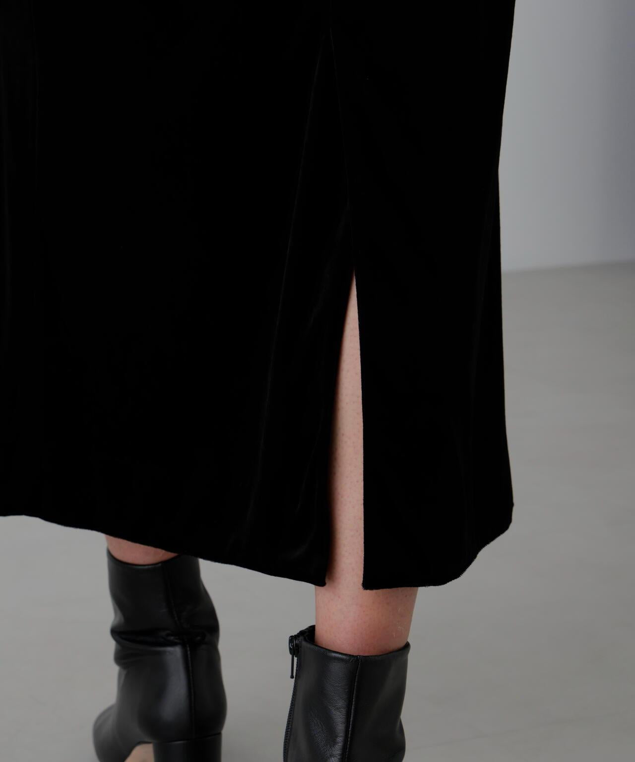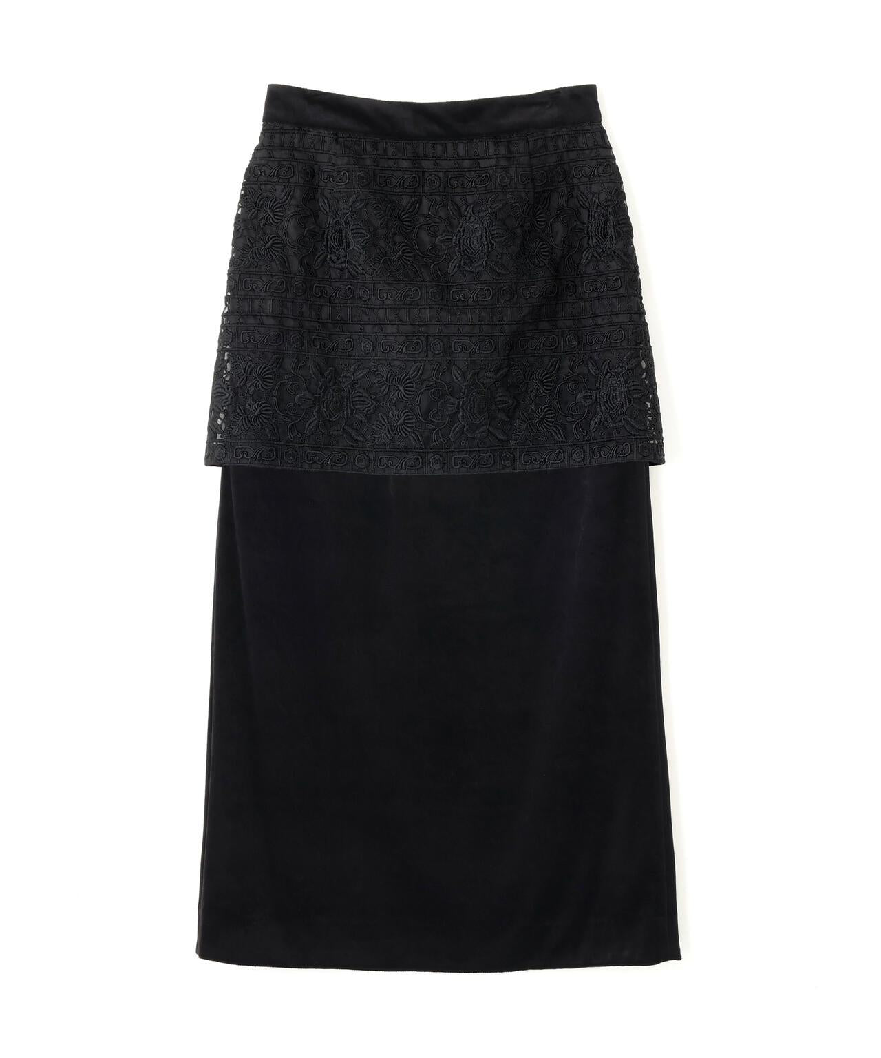 摩登優雅的奢華華麗蕾絲裙👍的檔案蕾絲裙。裙子採用直筒剪裁,結合了古董蕾絲和多層絲絨。建議搭配同款上衣(貨號:531-5210910)。這種天鵝絨面料由三醋酸纖維製成,具有溼潤而優雅的光澤,質地柔軟光滑。