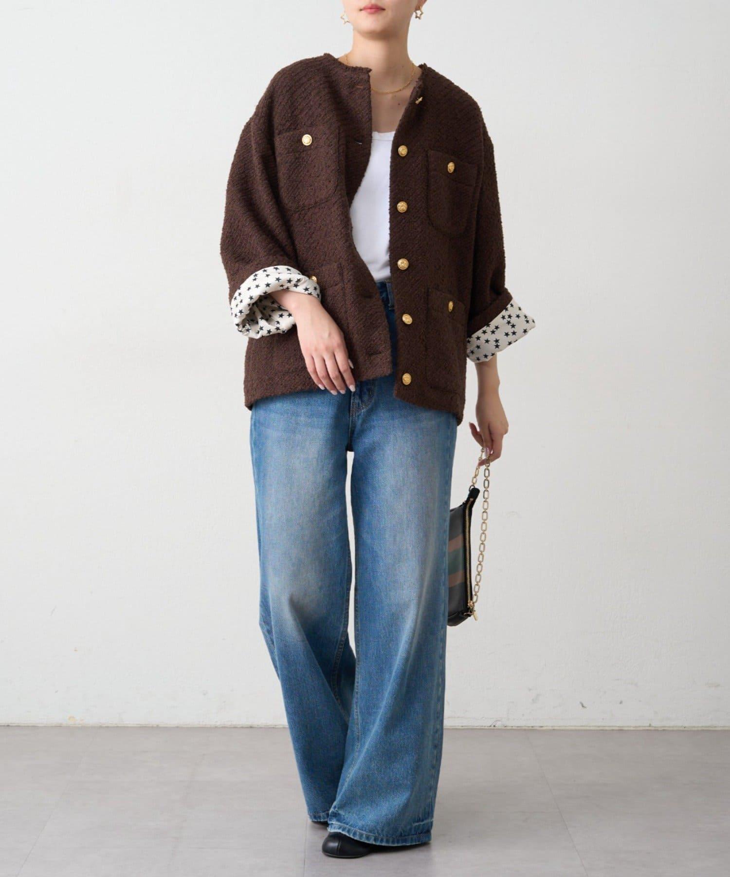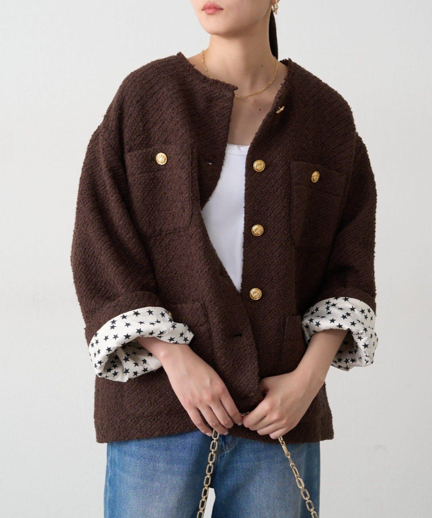 脫下夾克或捲起袖口時可以看到星形圖案的襯裡,營造出微妙的個性,而捲起的袖口則增添了休閒的氣息。適用於工作內外的各種場合。