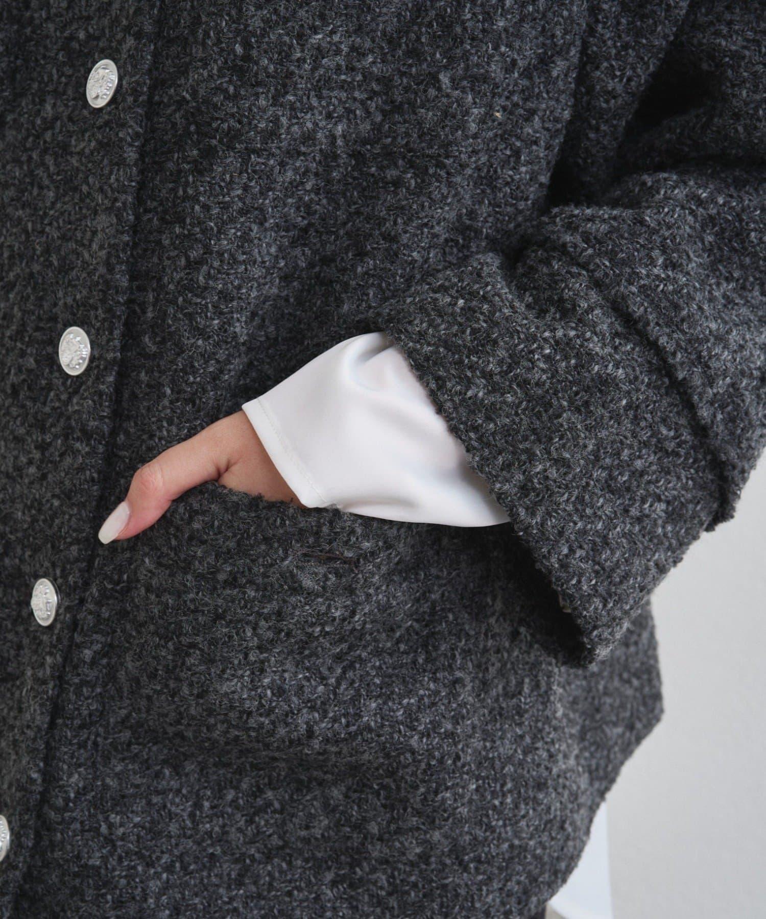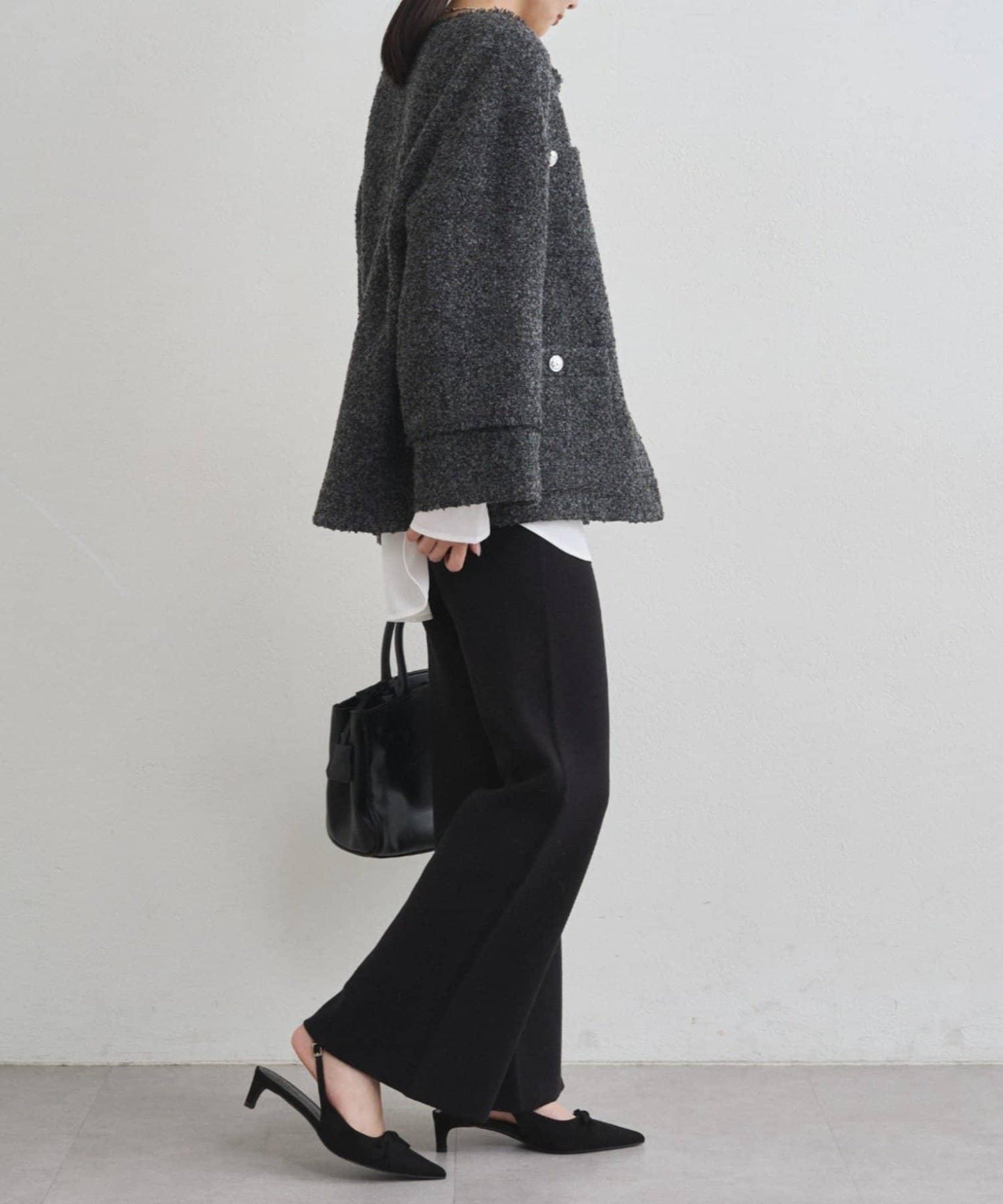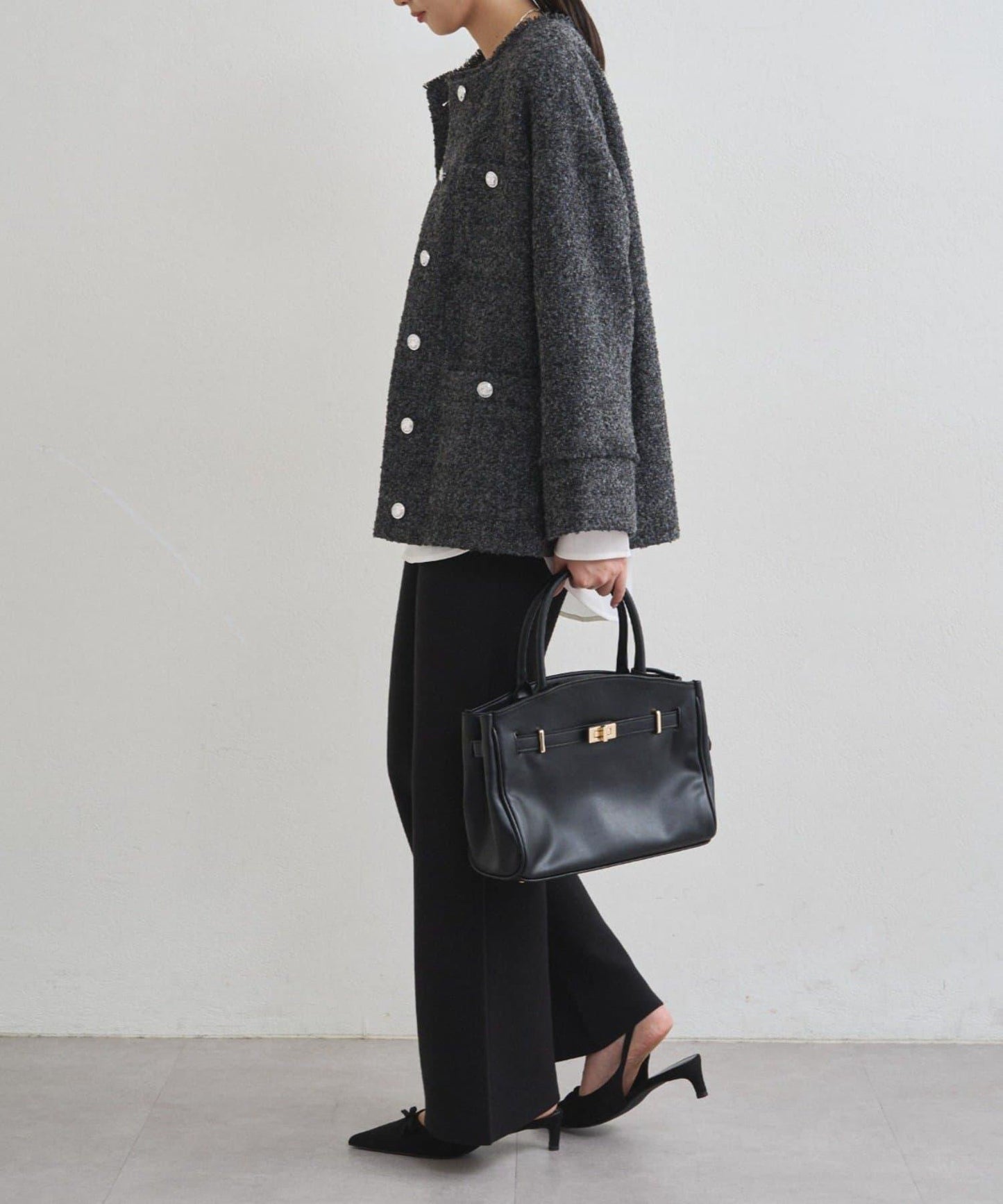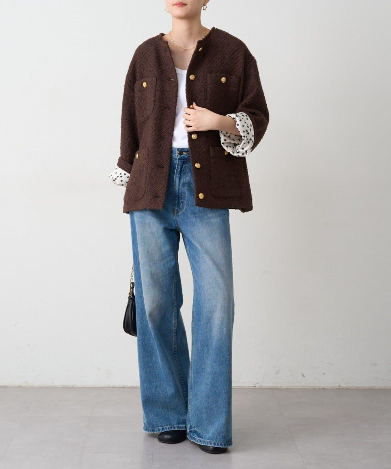 沉穩的斜紋軟呢面料與金色紐扣的結合,凸顯出成熟女性的高雅氣質。