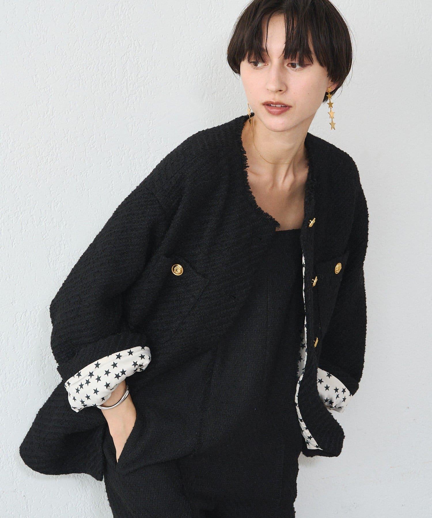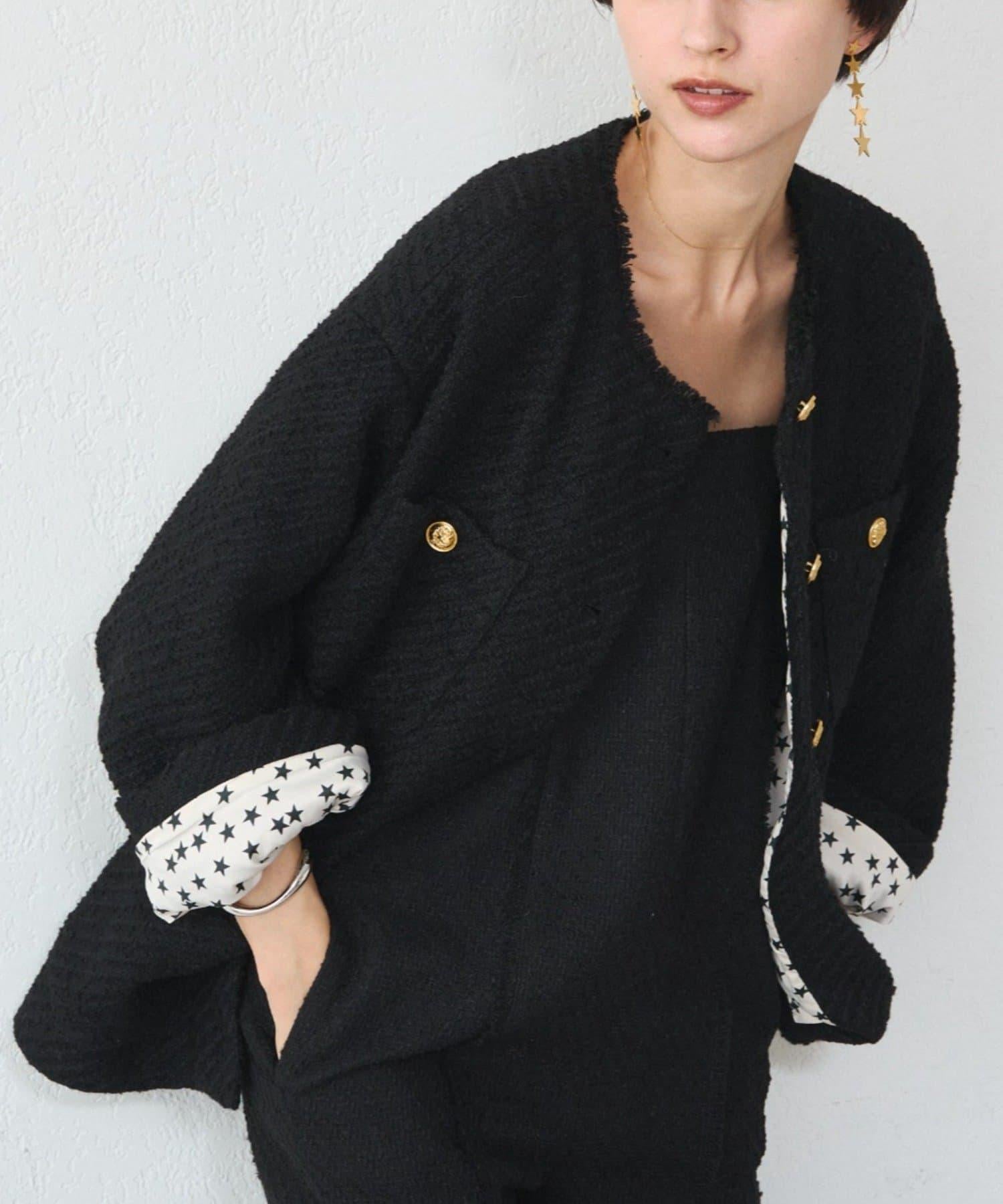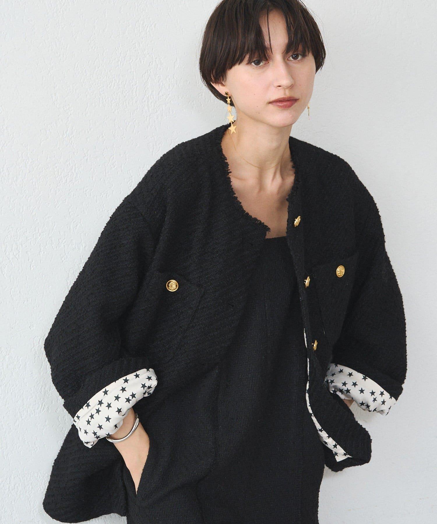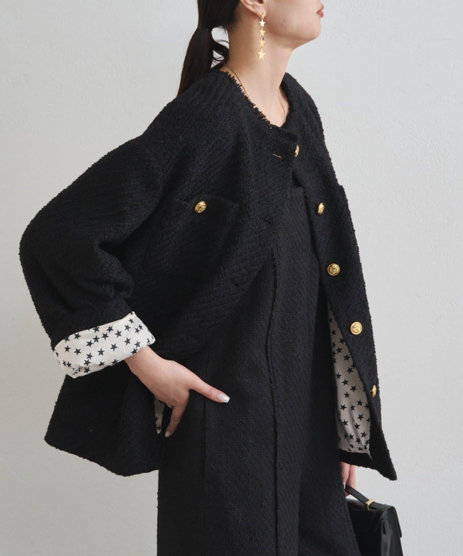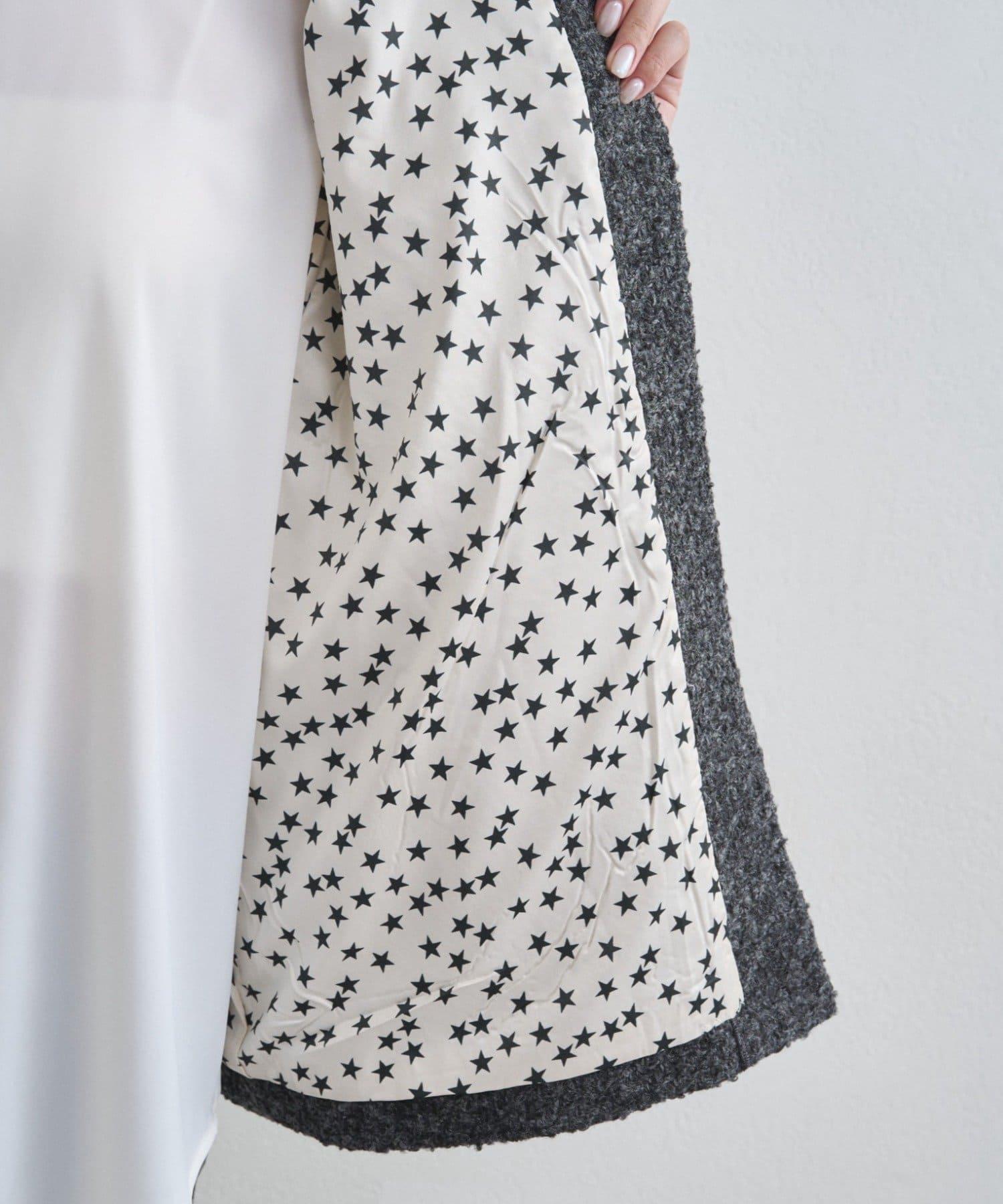 優雅經典的斜紋軟呢外套,星星圖案襯裡增添了俏皮感。