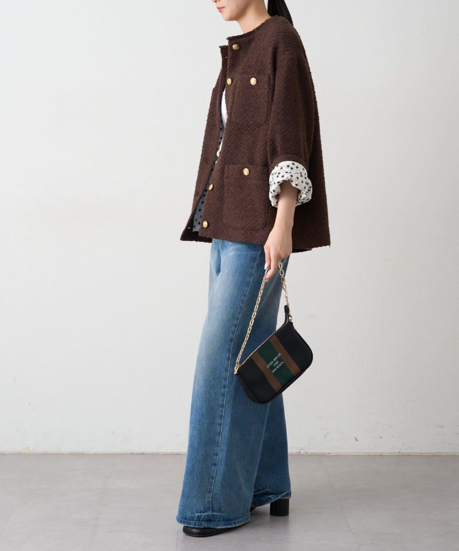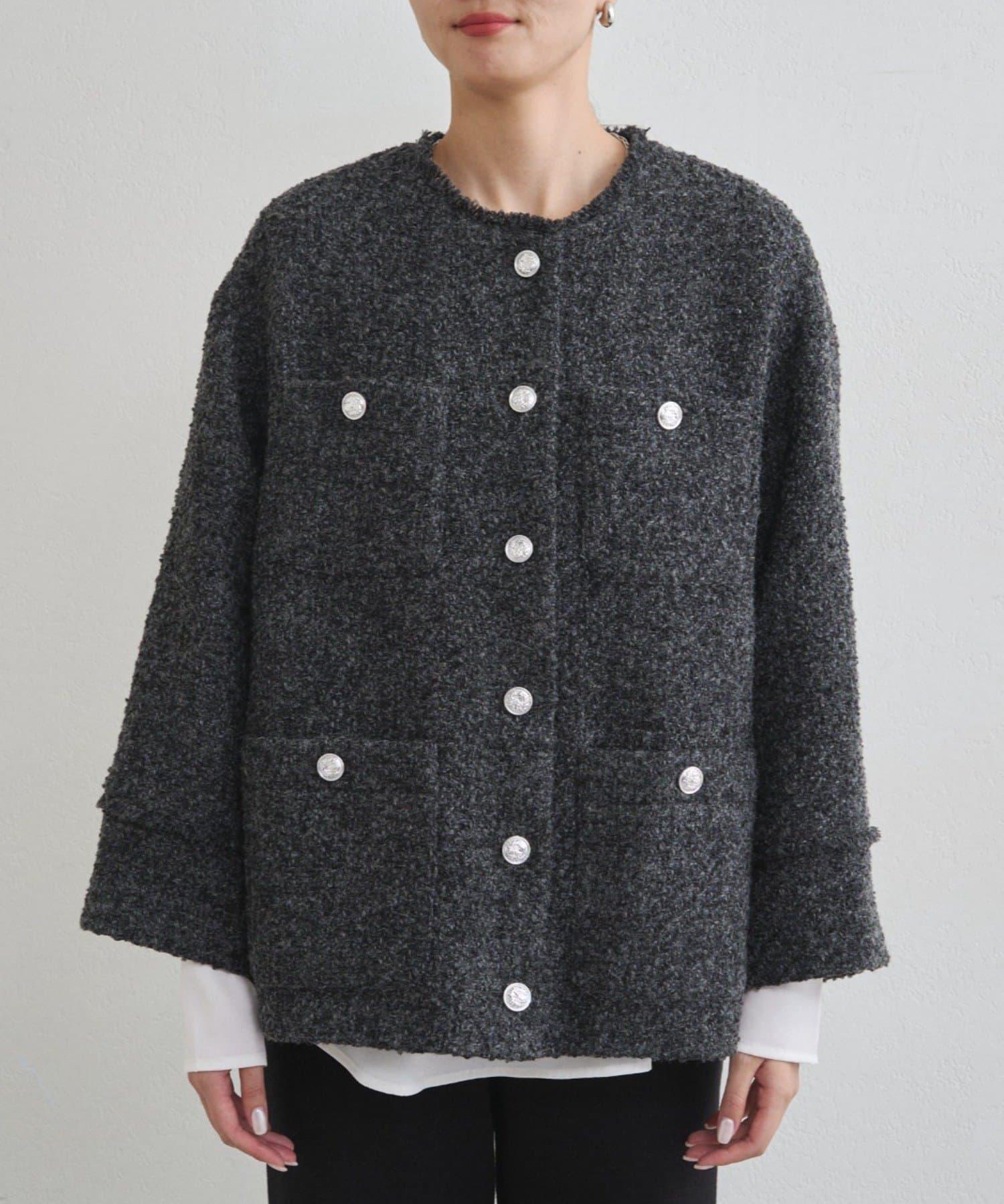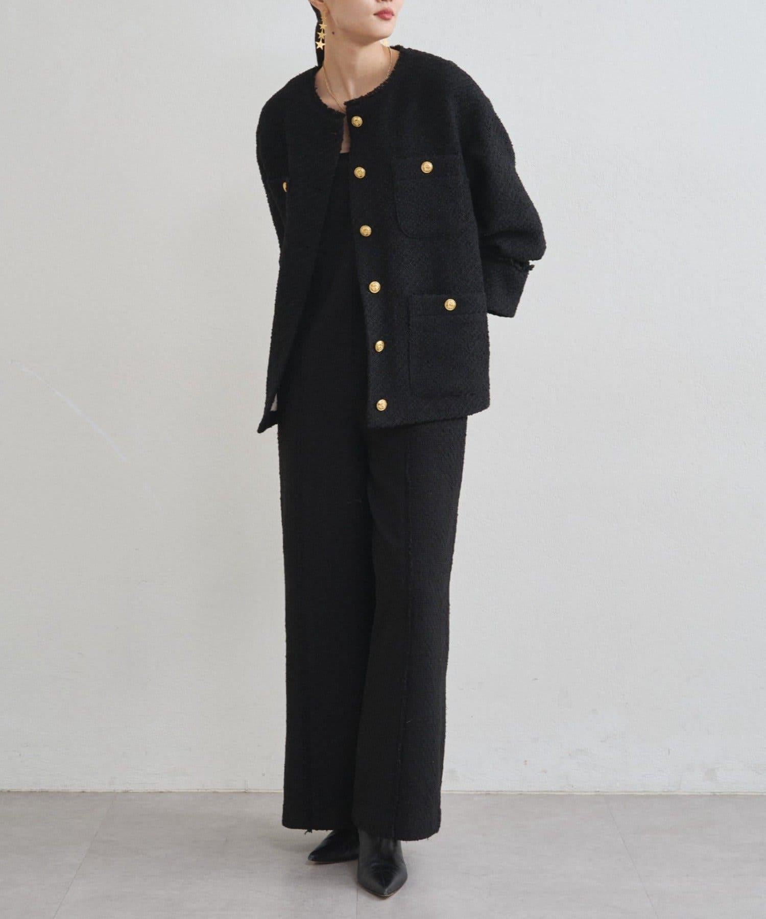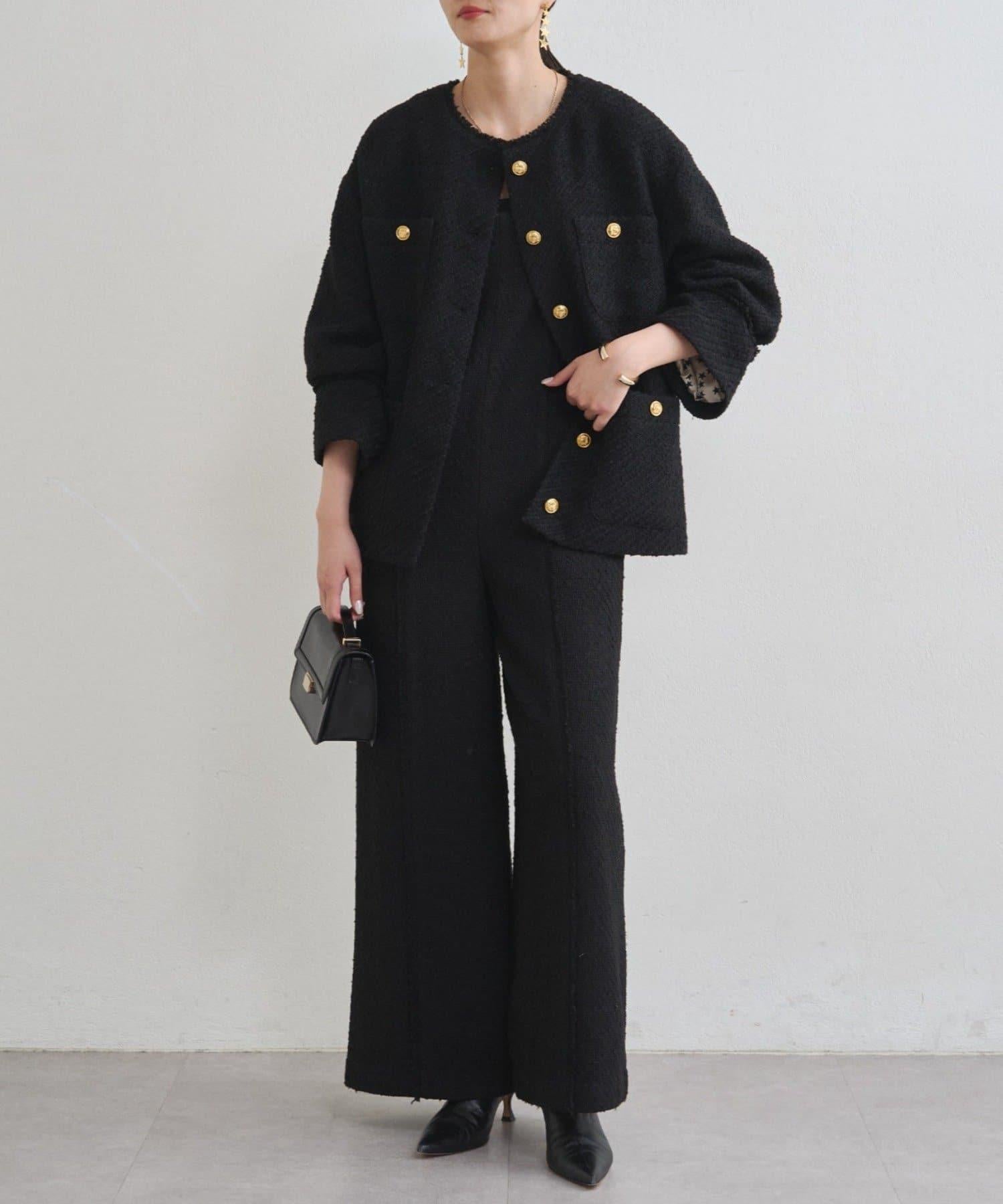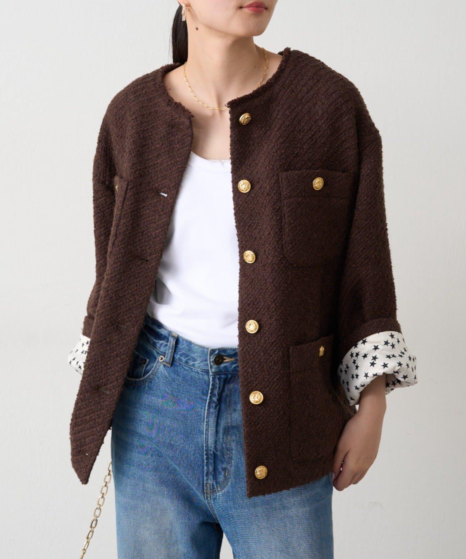 這款夾克由斜紋軟呢剪裁而成,充滿古典氣息,非常適合成熟女性穿著。斜紋軟呢面料具有表面觸感,飾有金色紐扣,散發出優雅的光澤,營造出一種存在感和奢華感。
