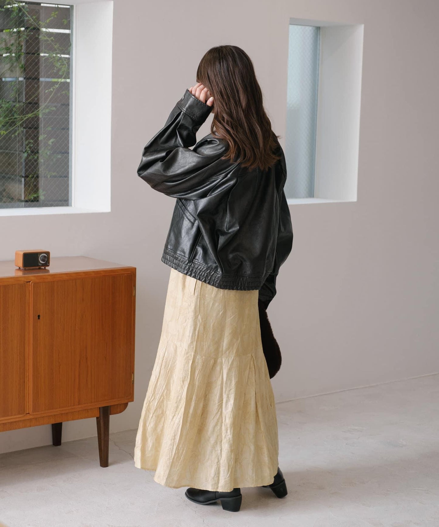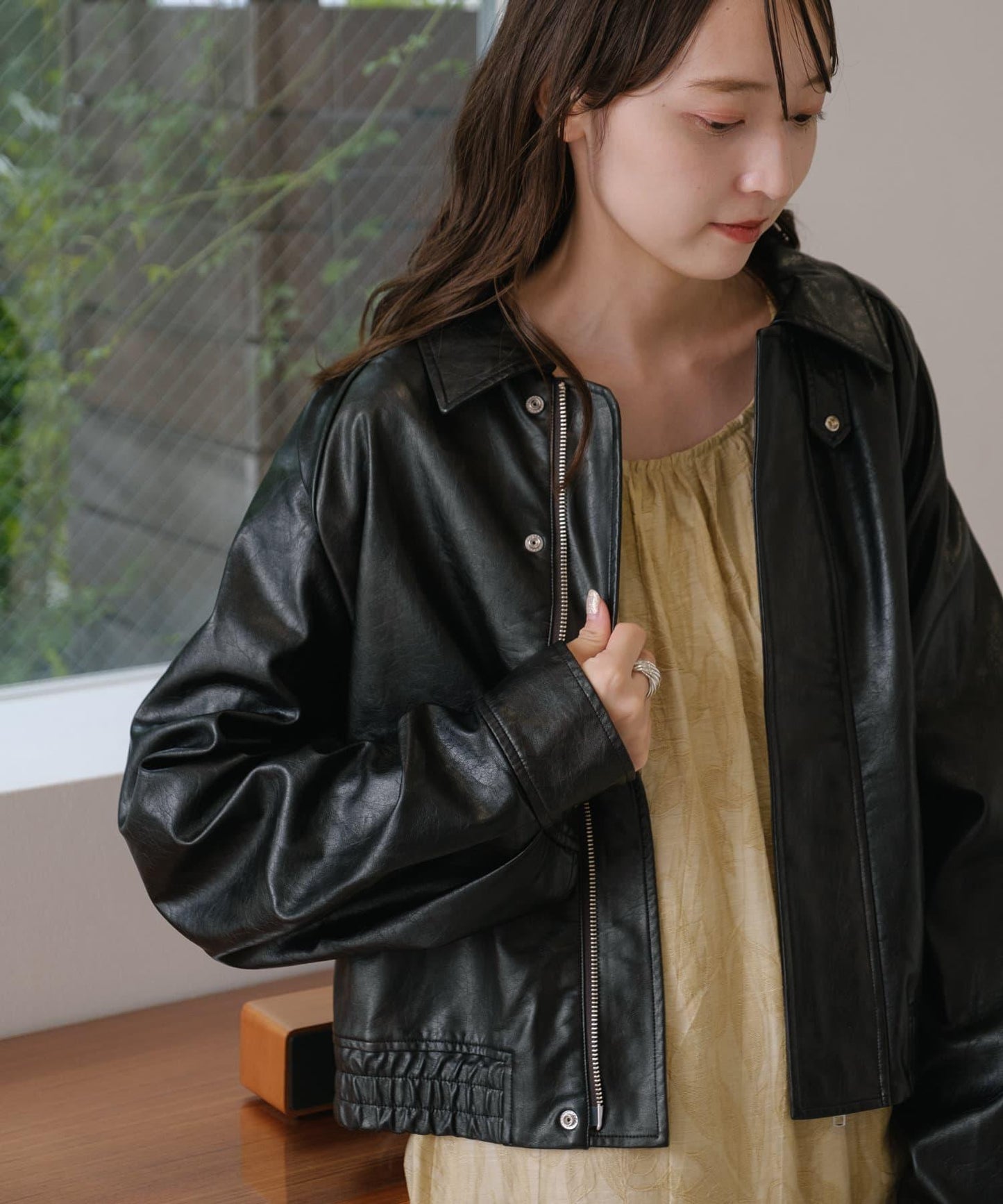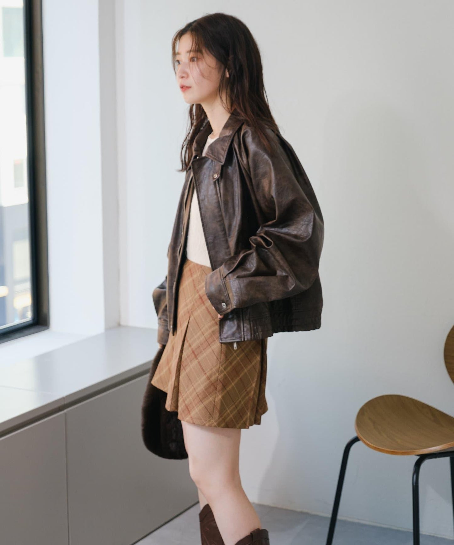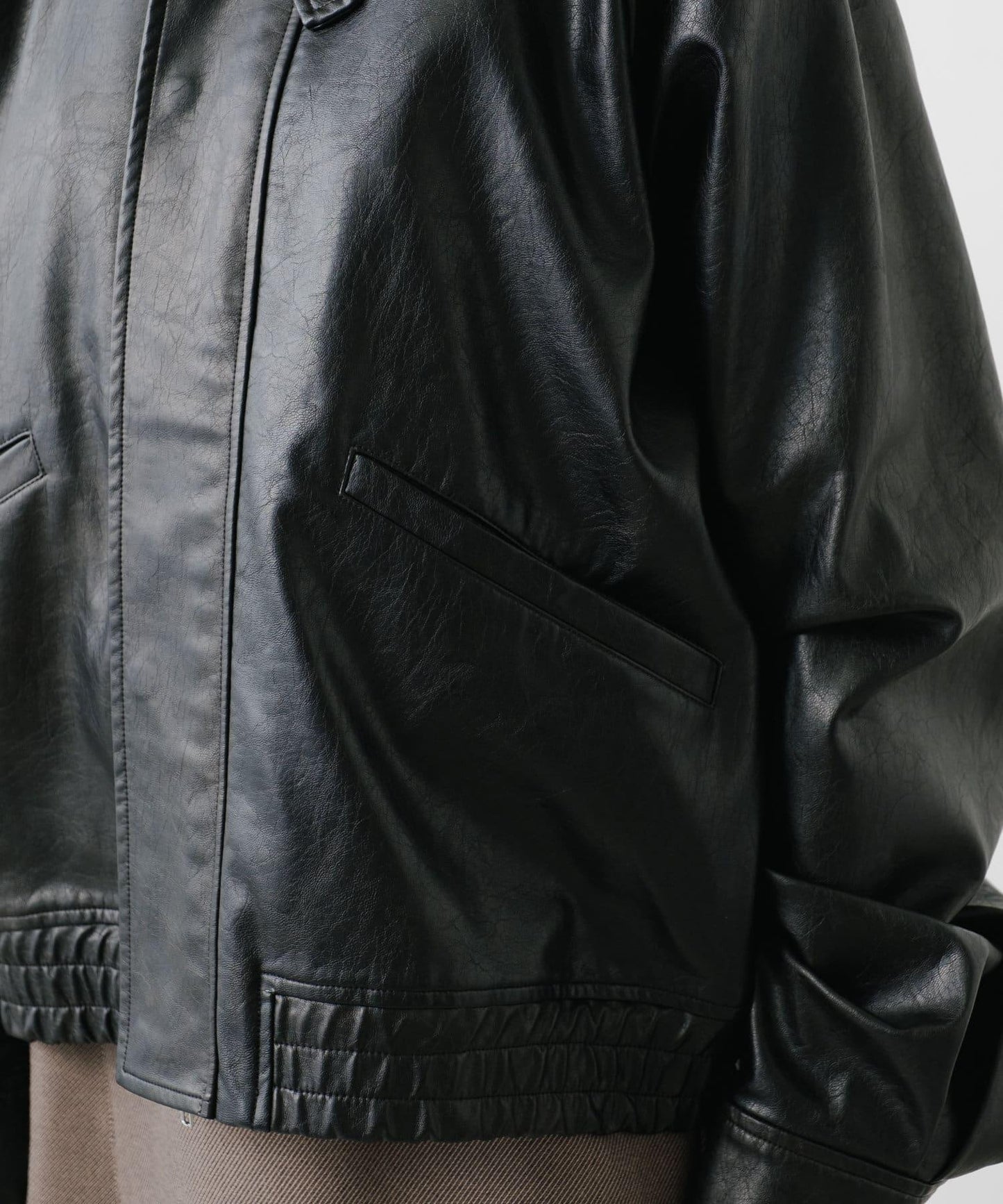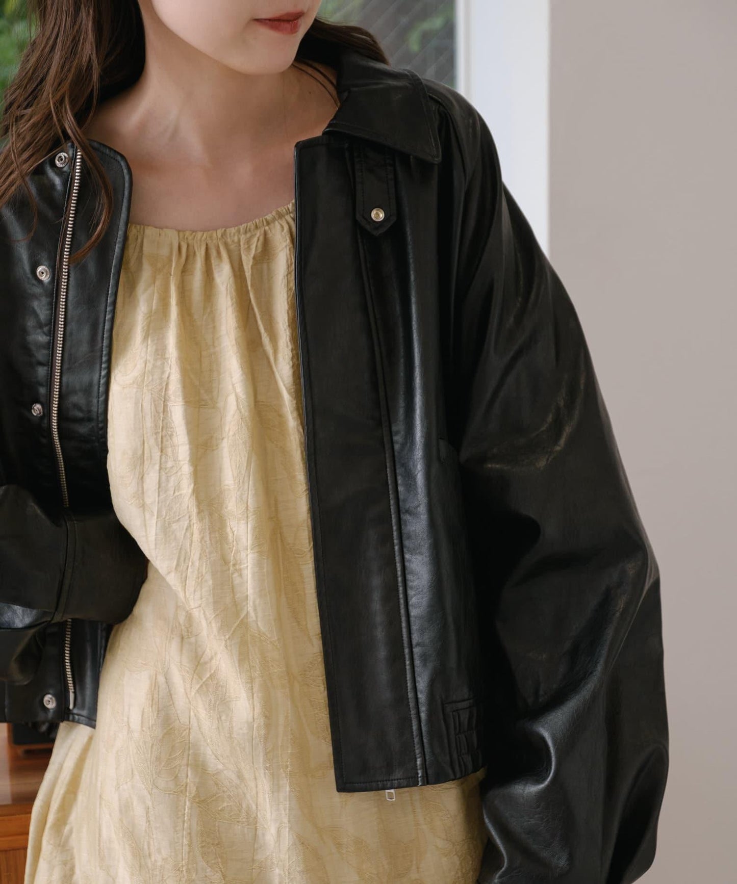 這是一款女性化皮夾克,尺寸小巧,袖子設計豐滿。