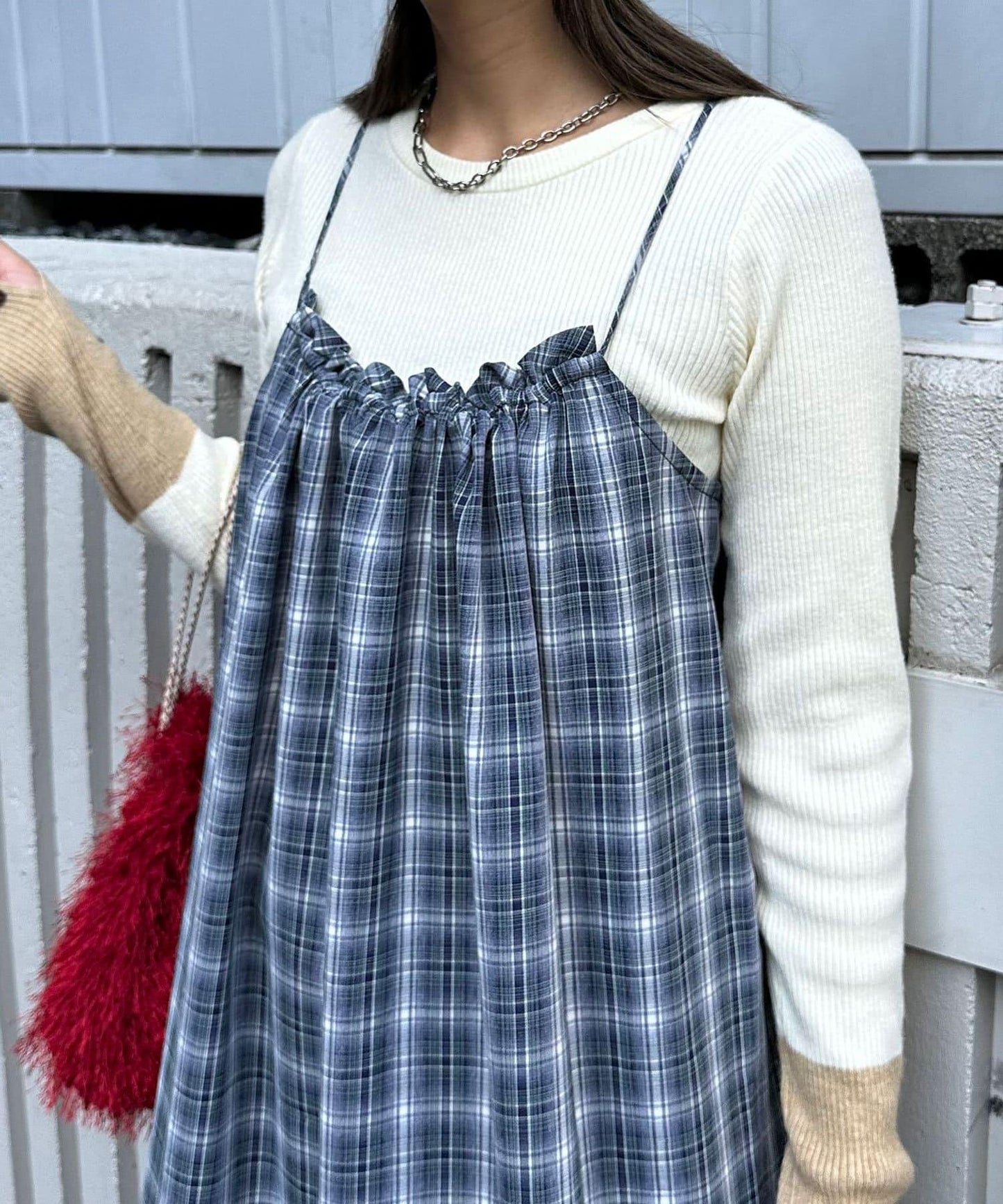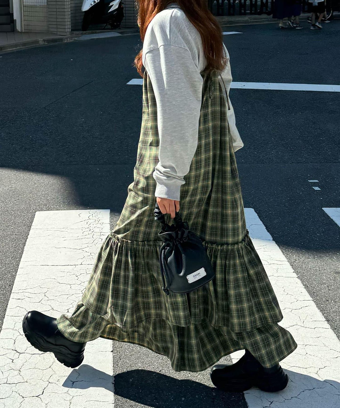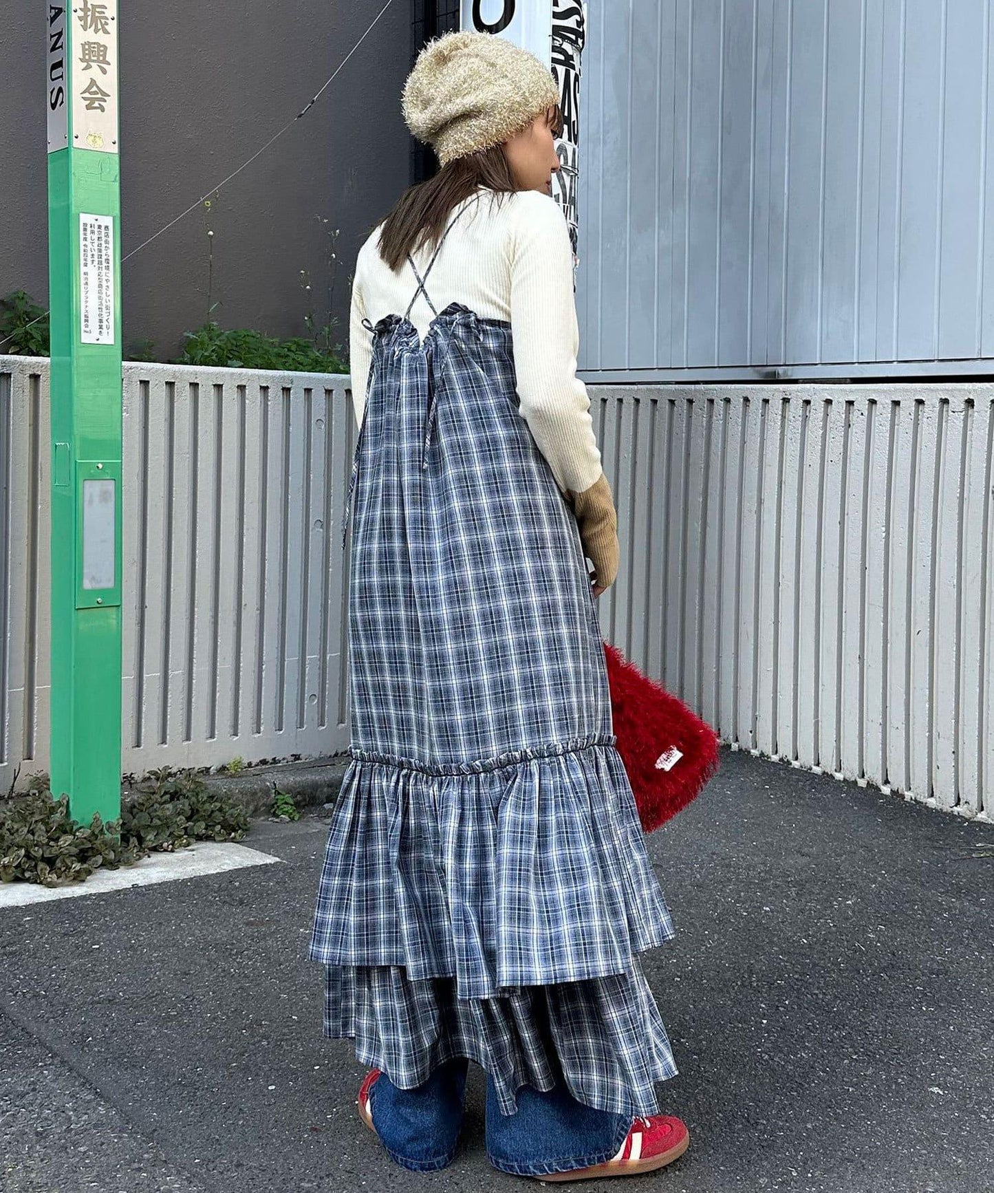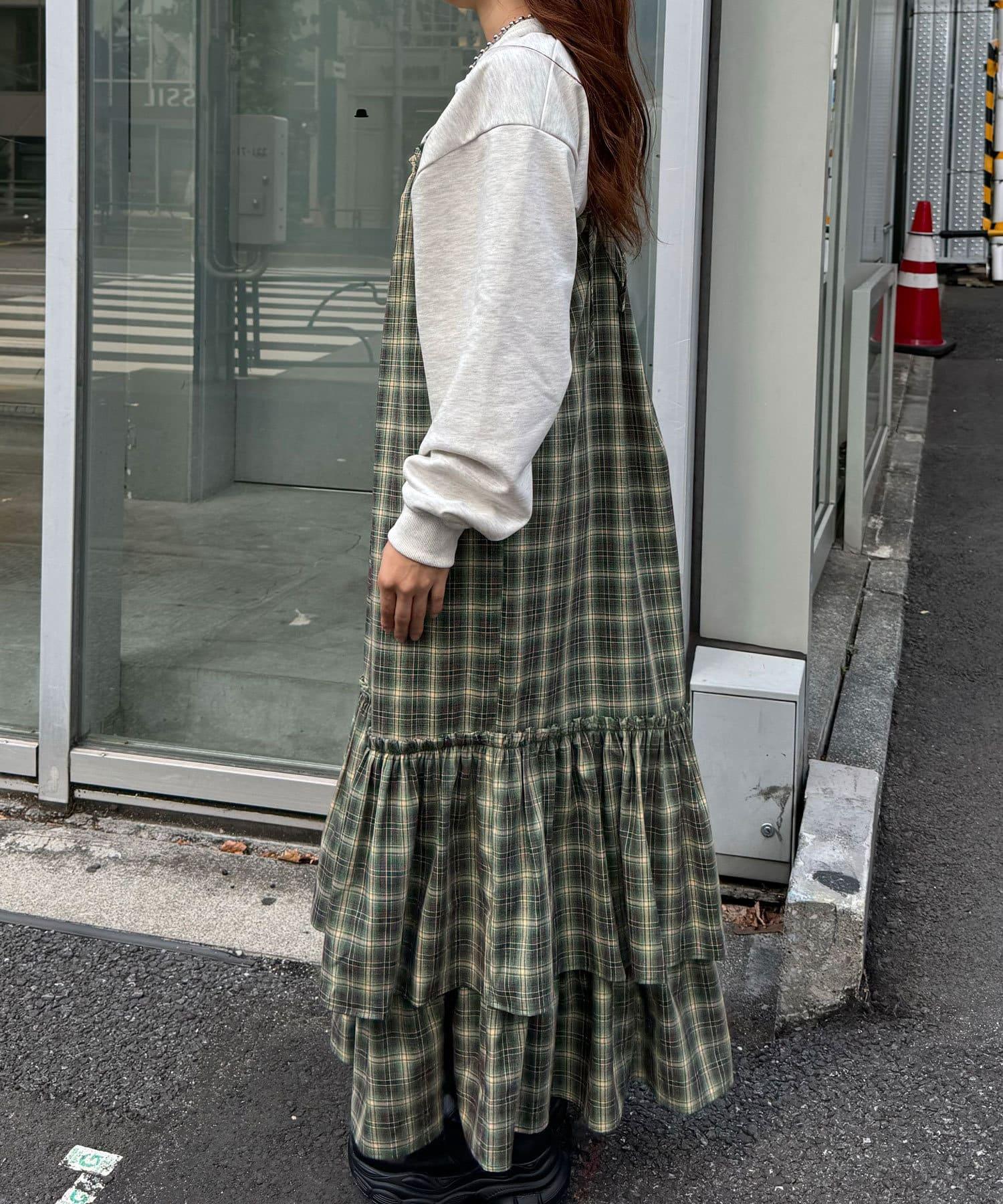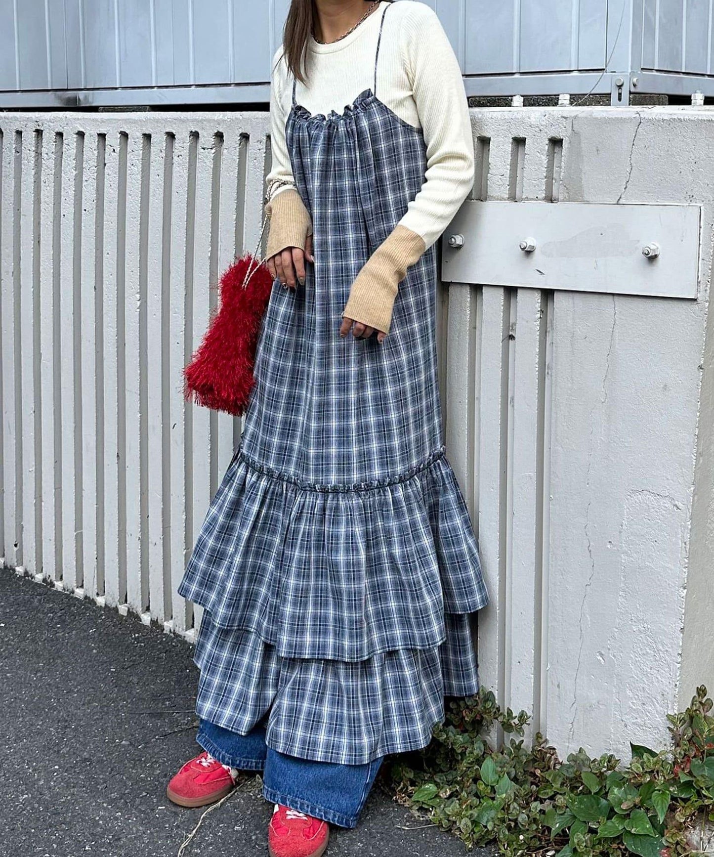 【2024AW】格紋荷葉邊吊帶 ONE PIECE