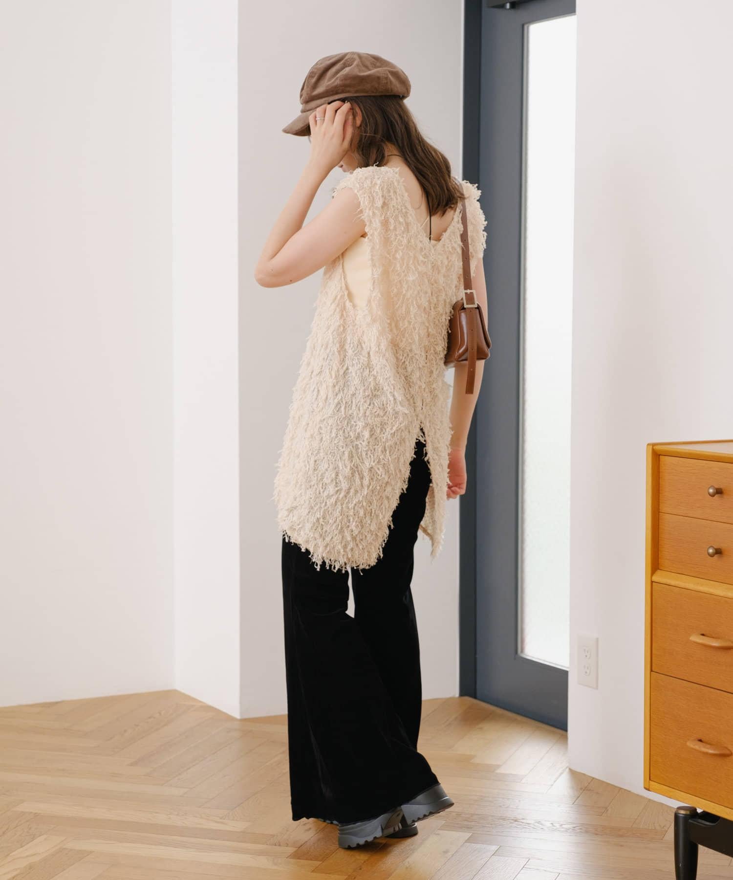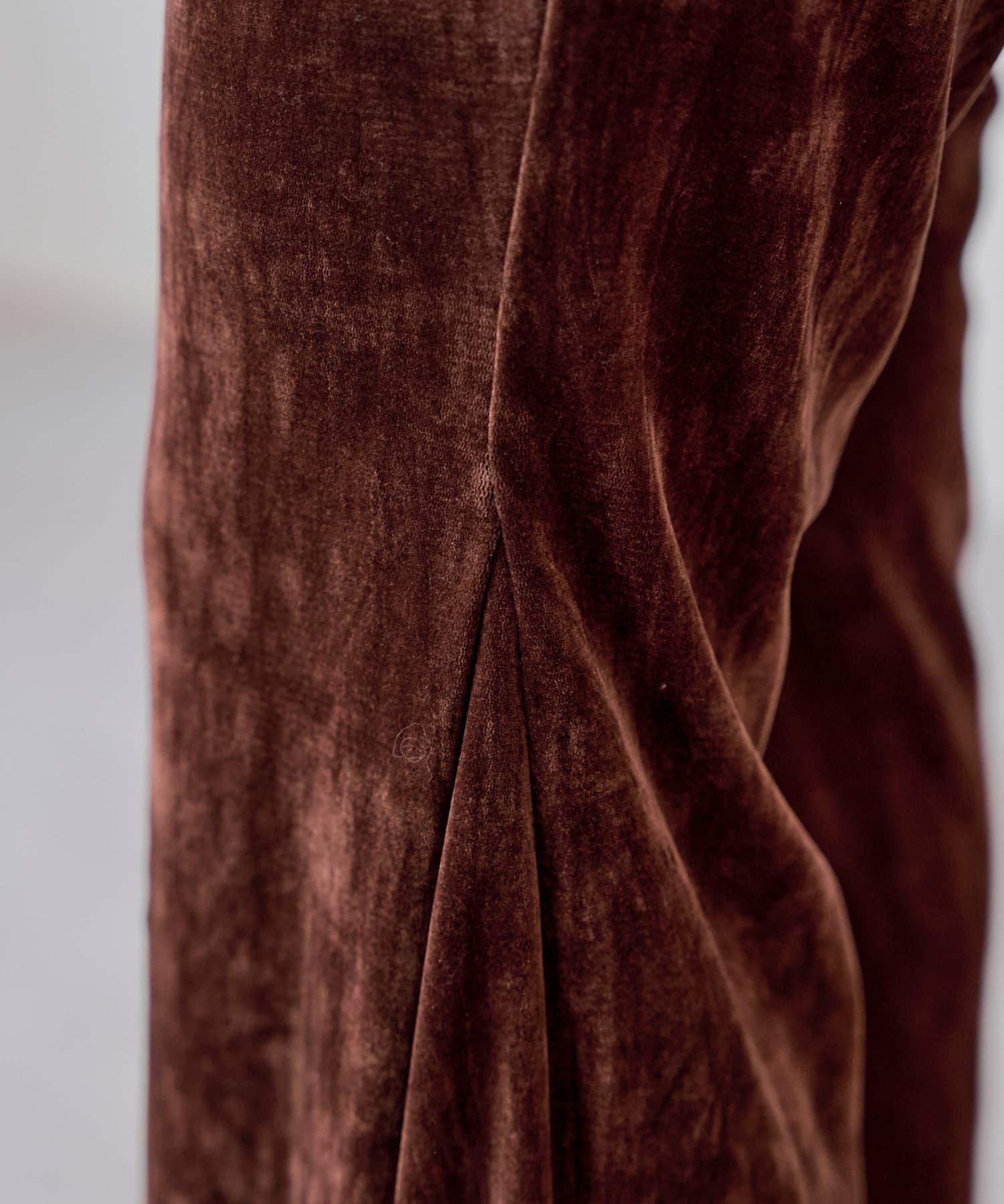絲絨面料的表面紋理為造型增添了細微的變化。