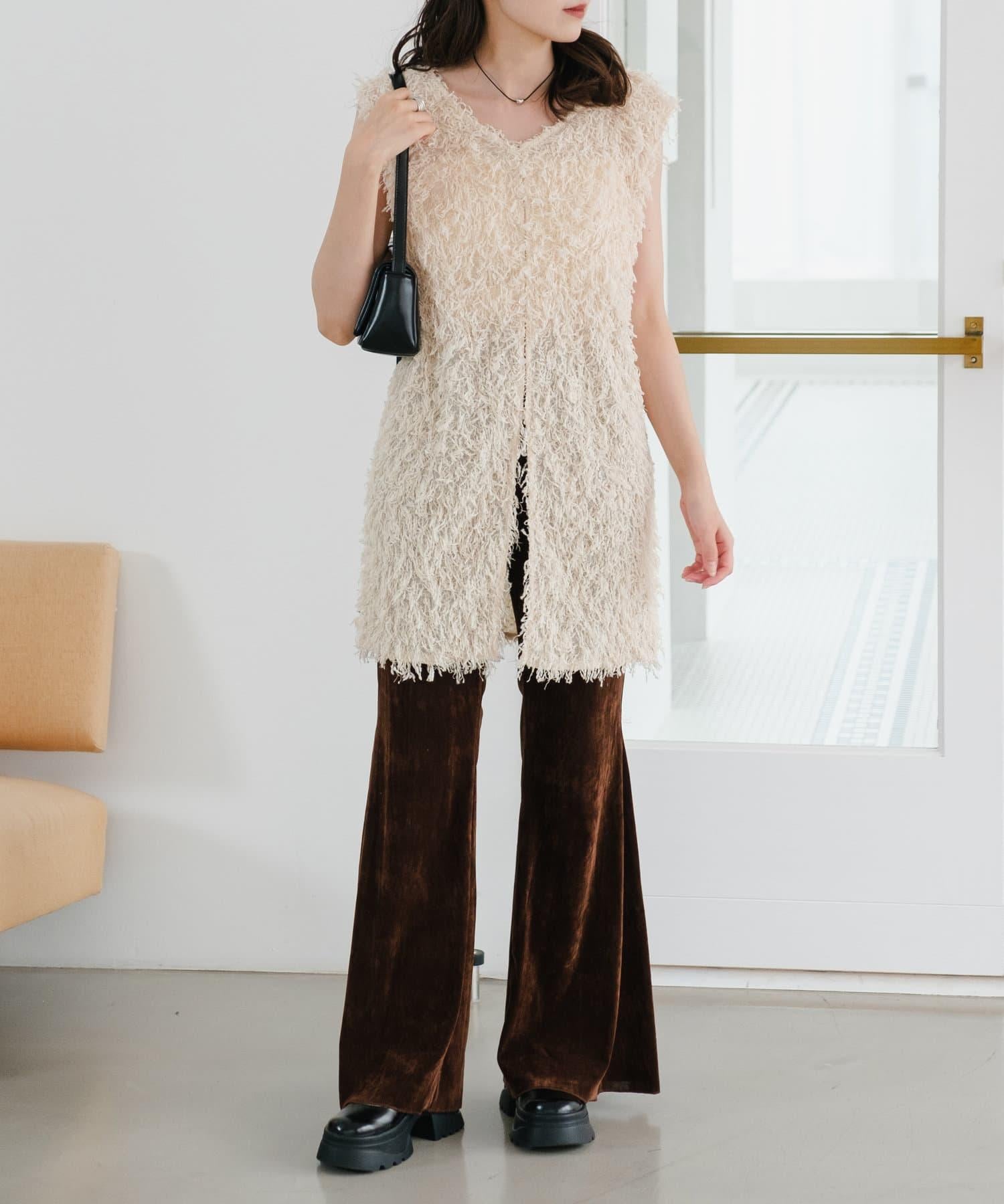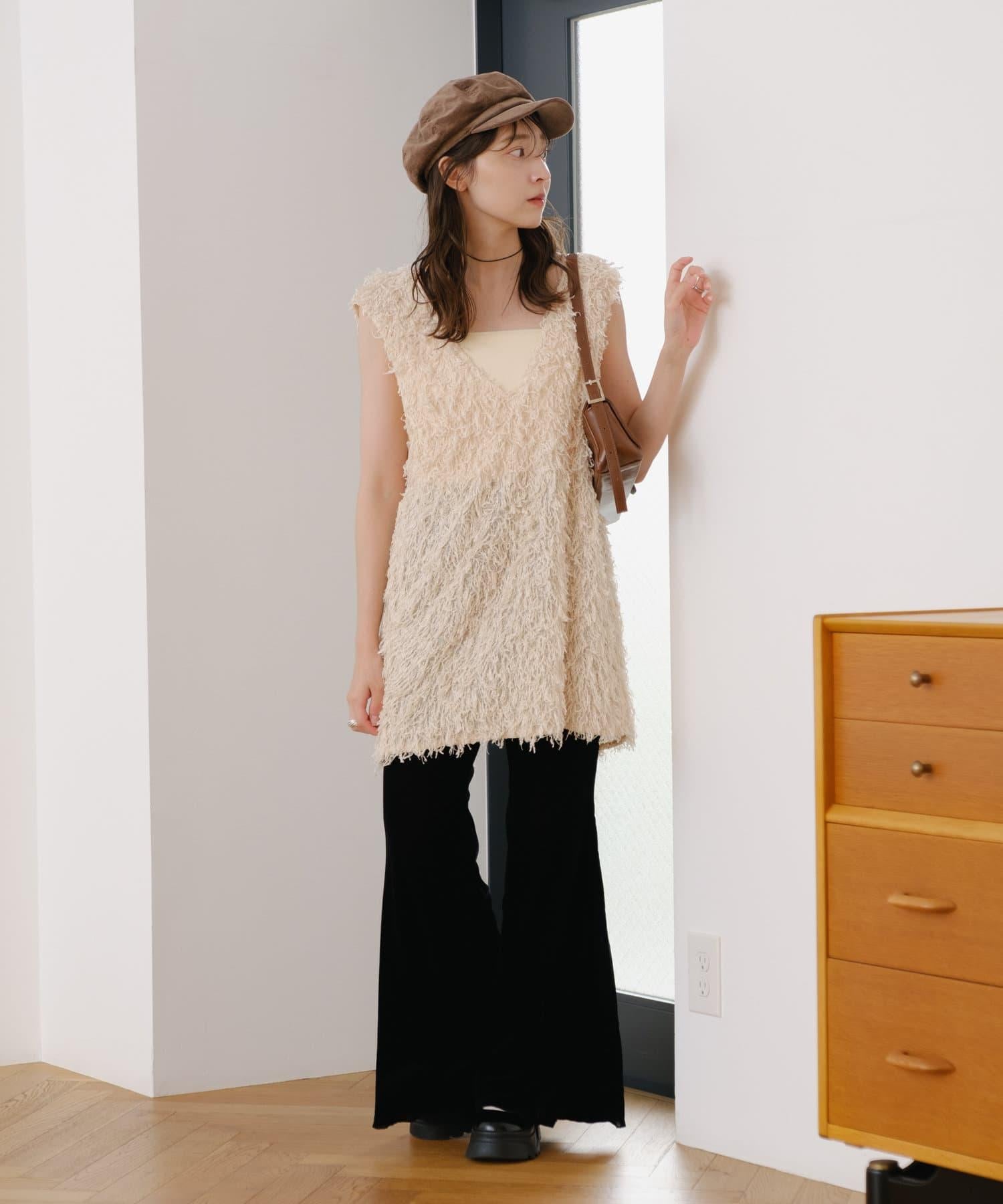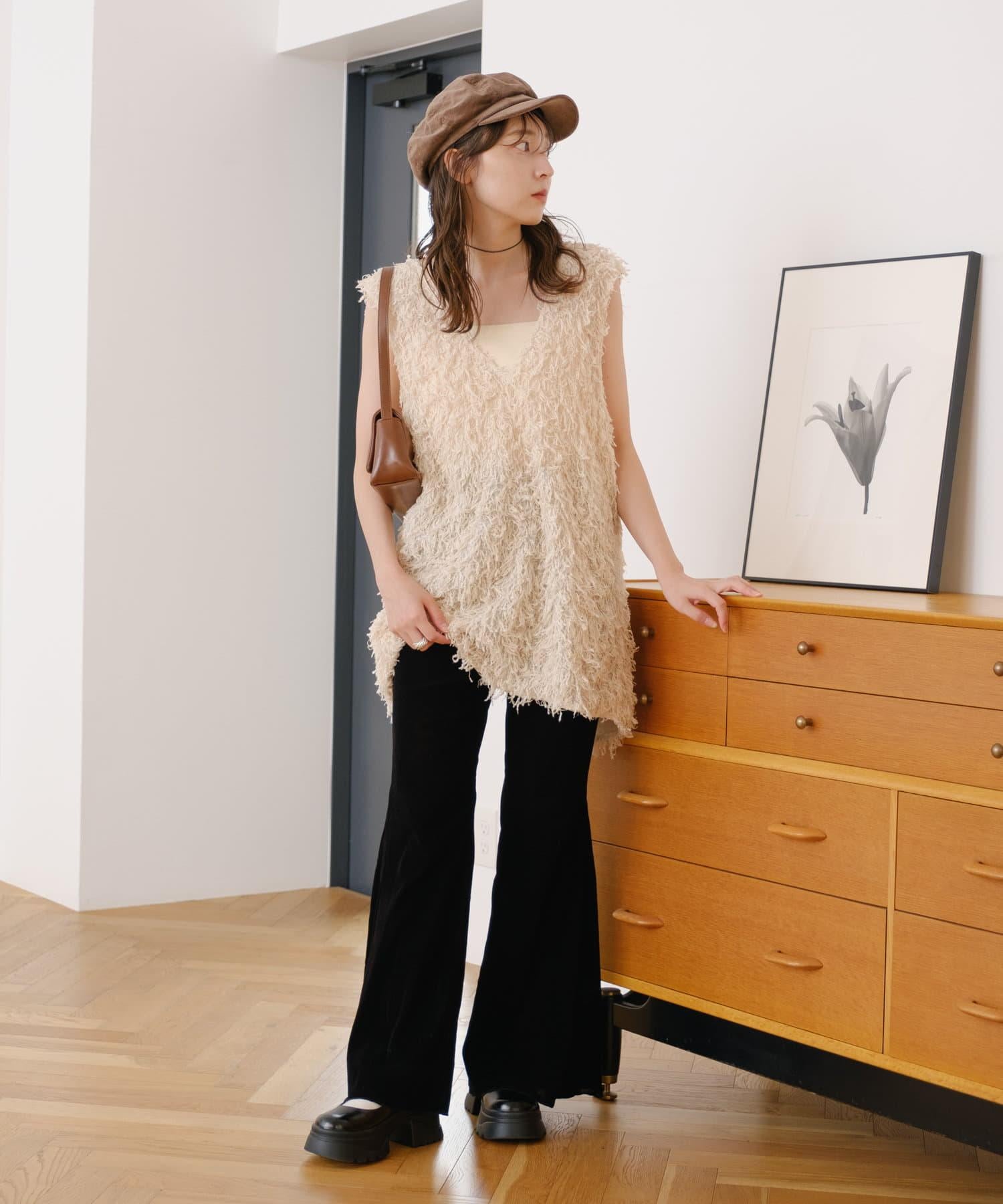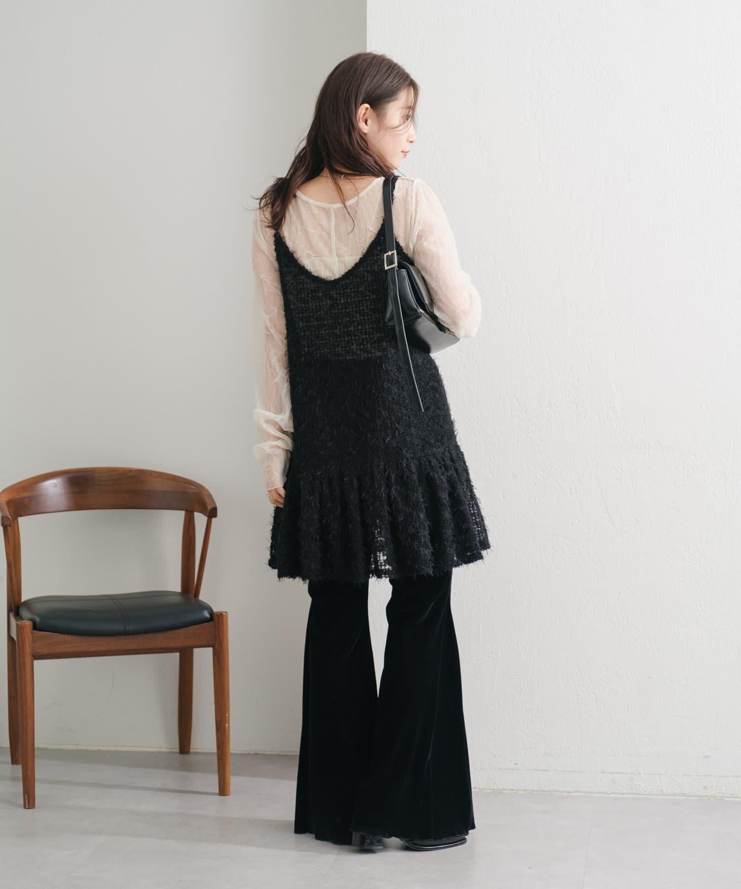膝蓋處略顯緊身,喇叭形輪廓向下擺延伸。