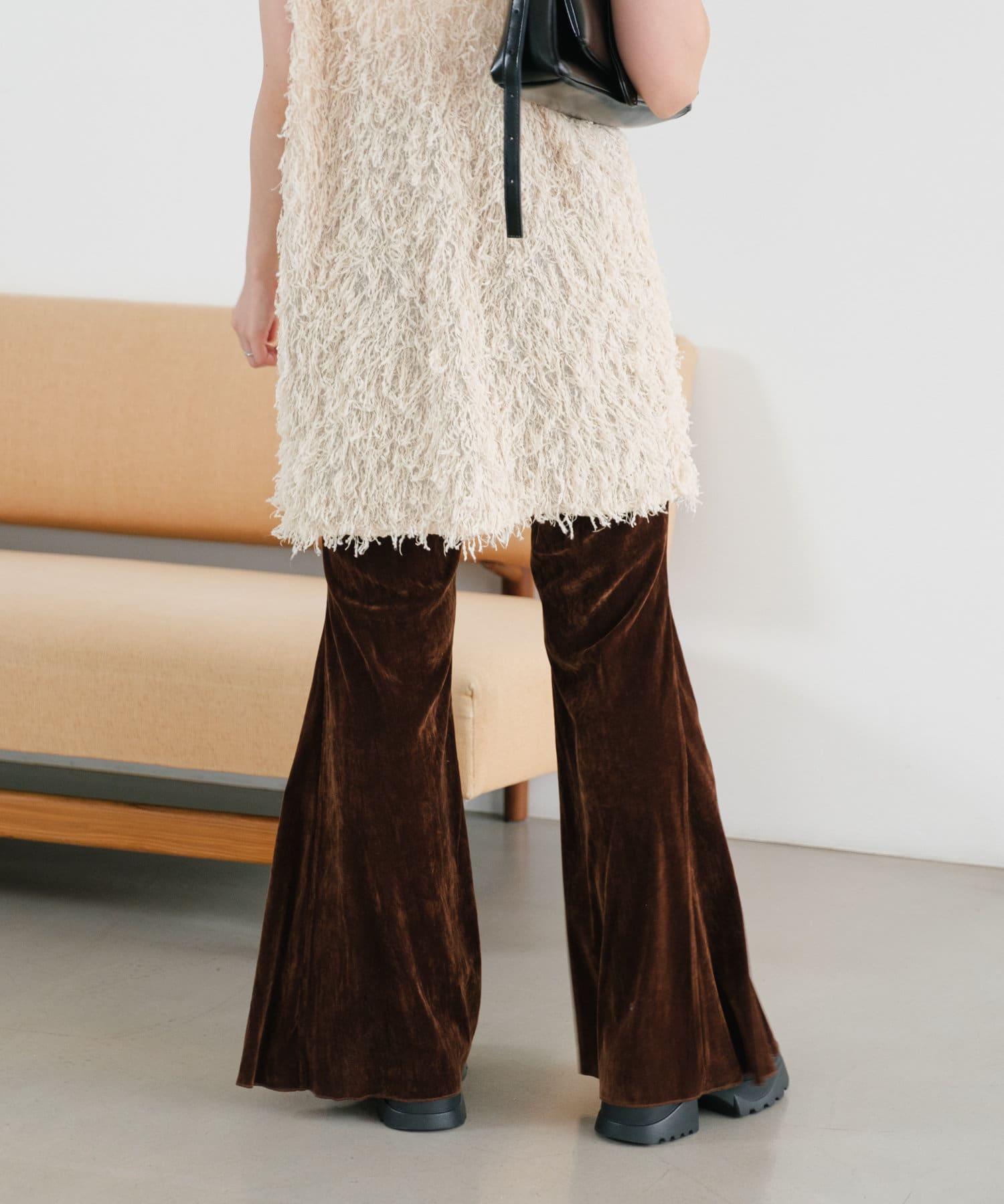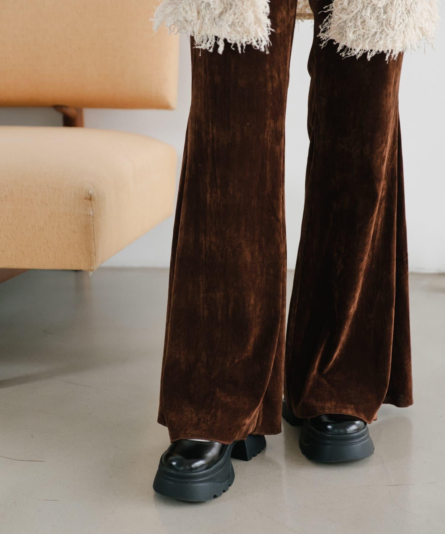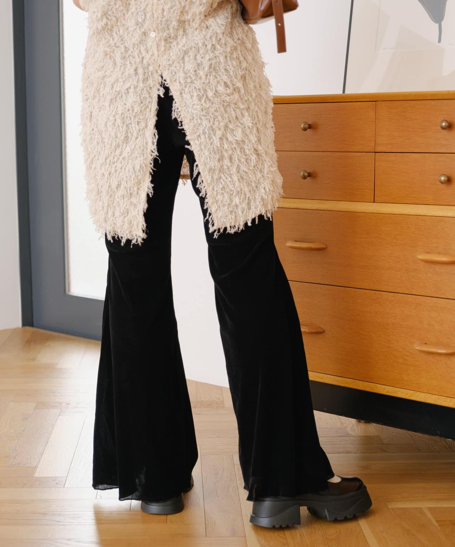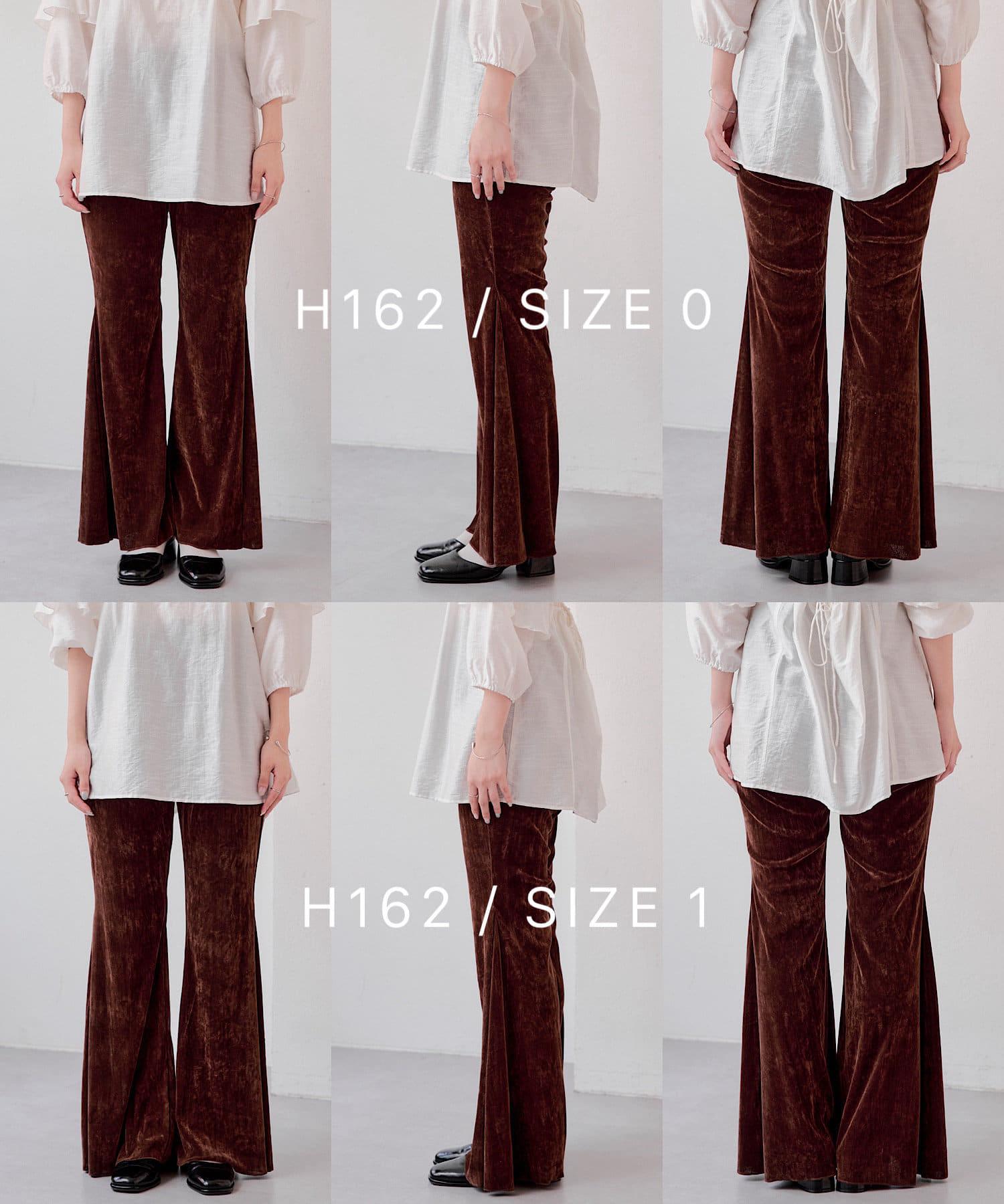 垂墜啞光絲絨喇叭褲 *0碼和1碼之間的長度差為7厘米。(更多信息請參見尺碼詳情)