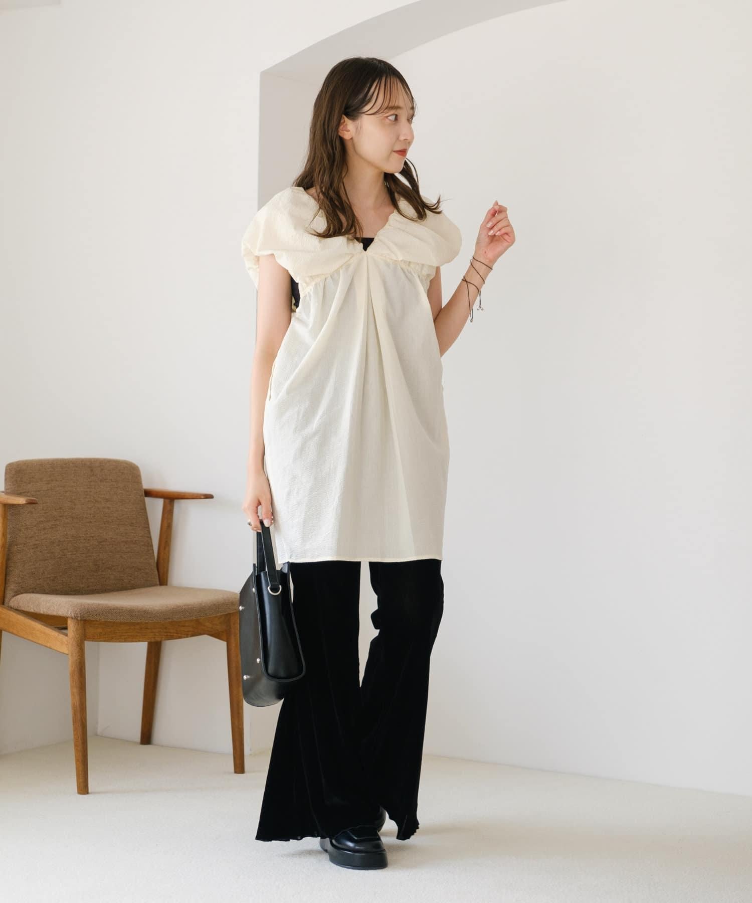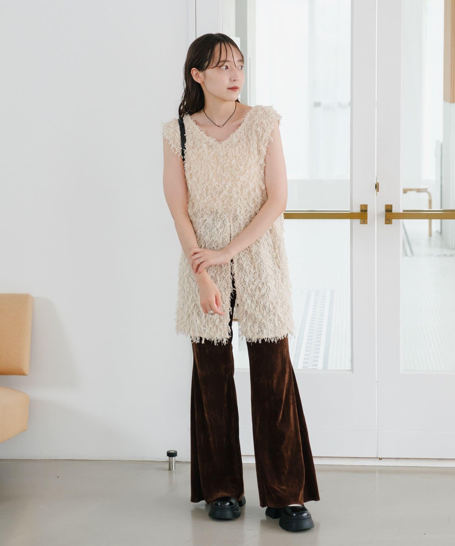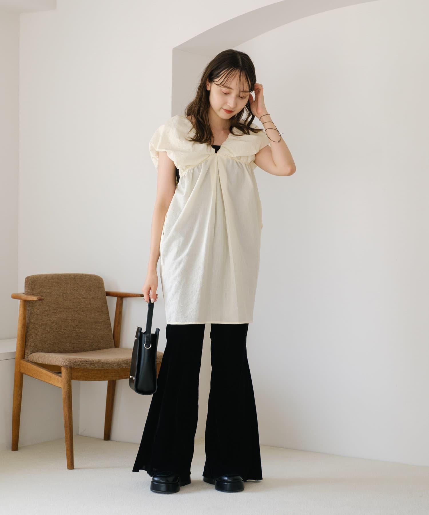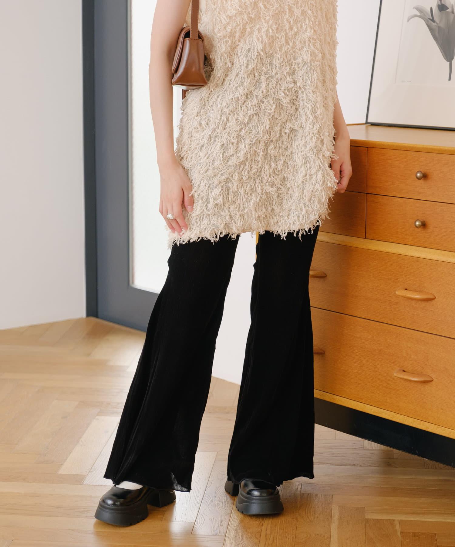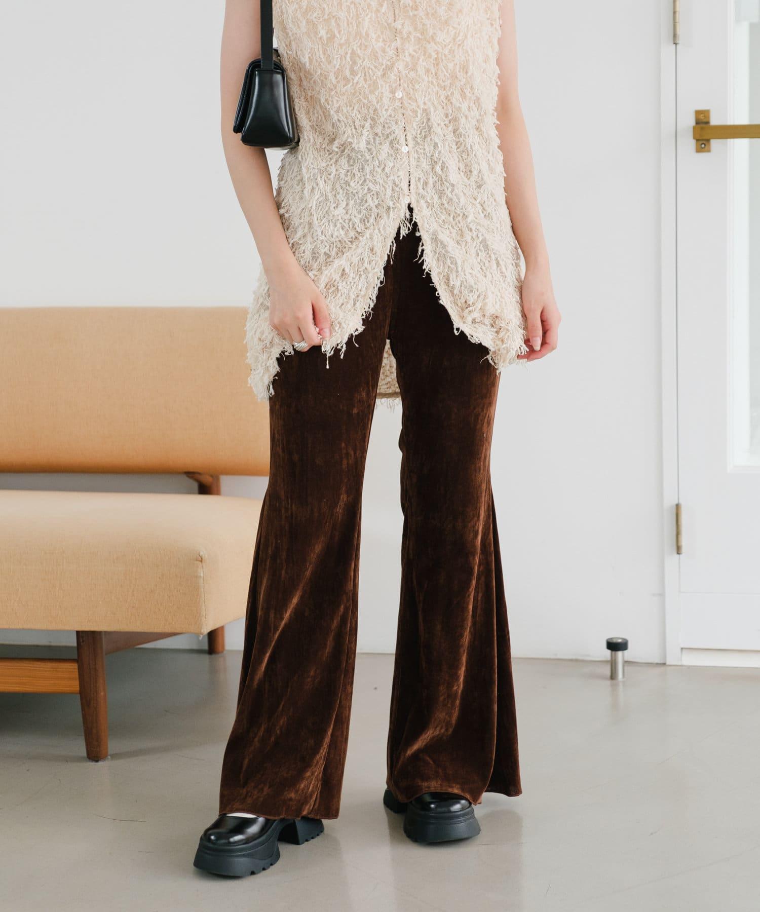 垂墜啞光絲絨喇叭褲 *0碼和1碼之間的長度差為7厘米。(更多信息請參見尺碼詳情)