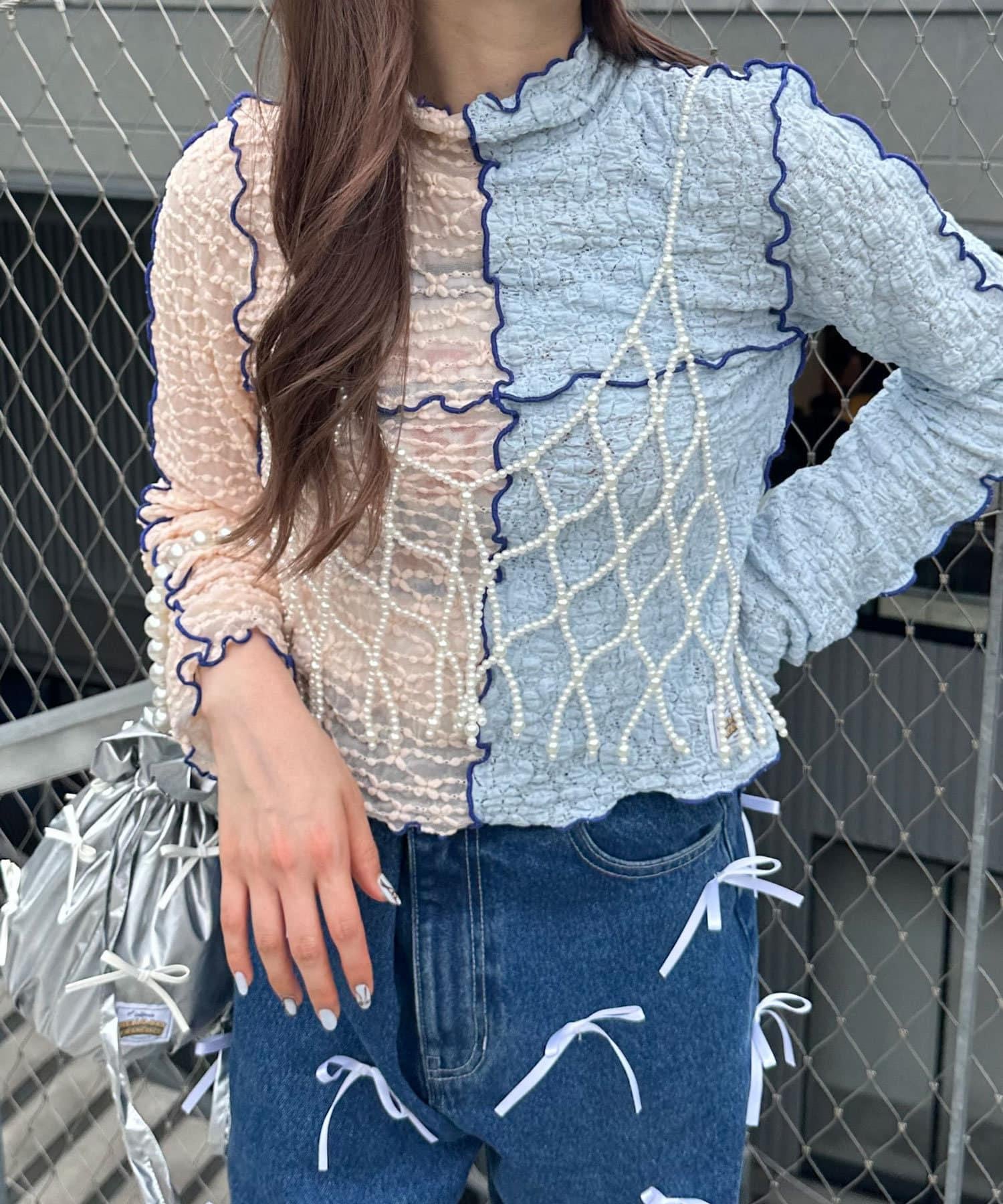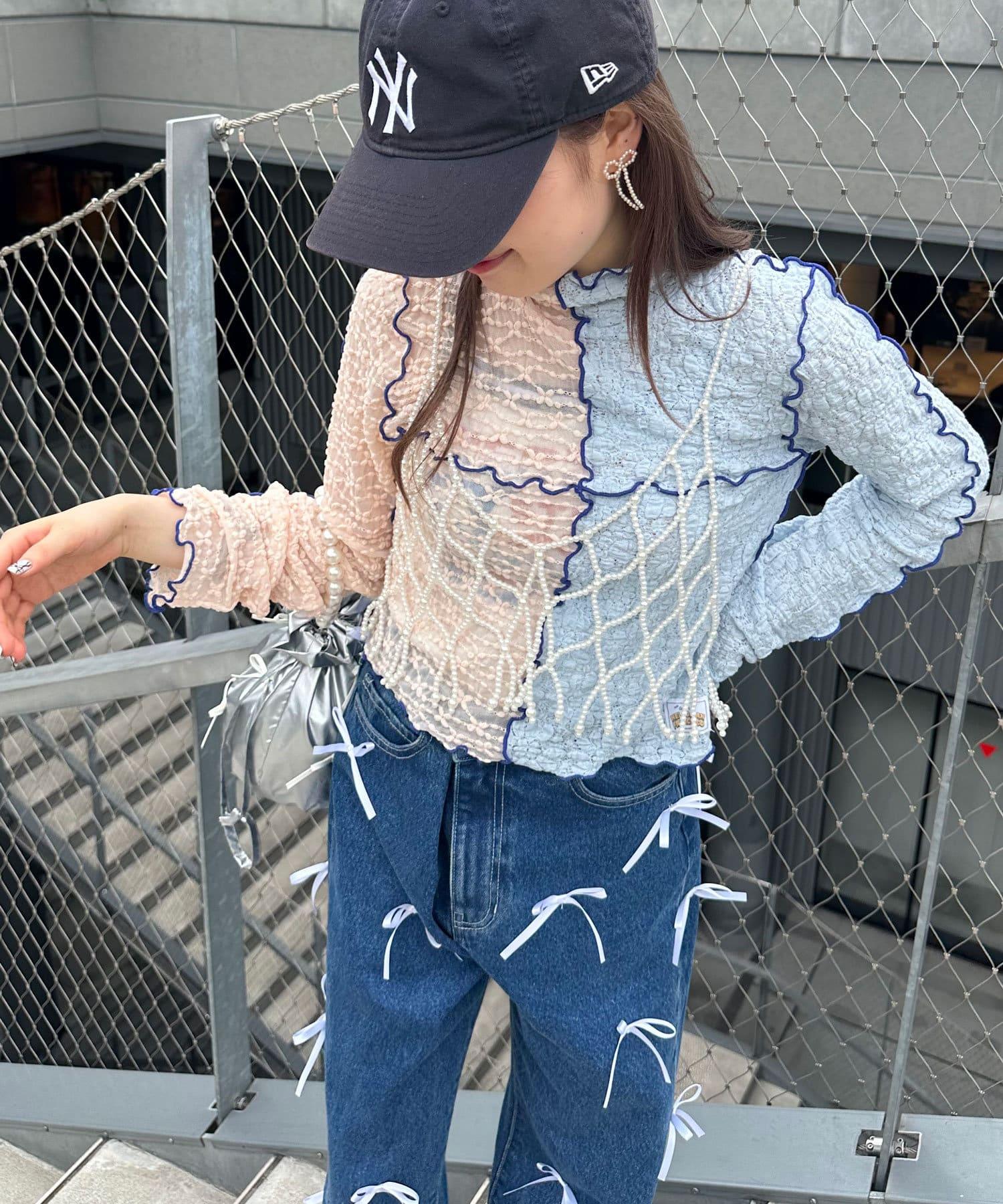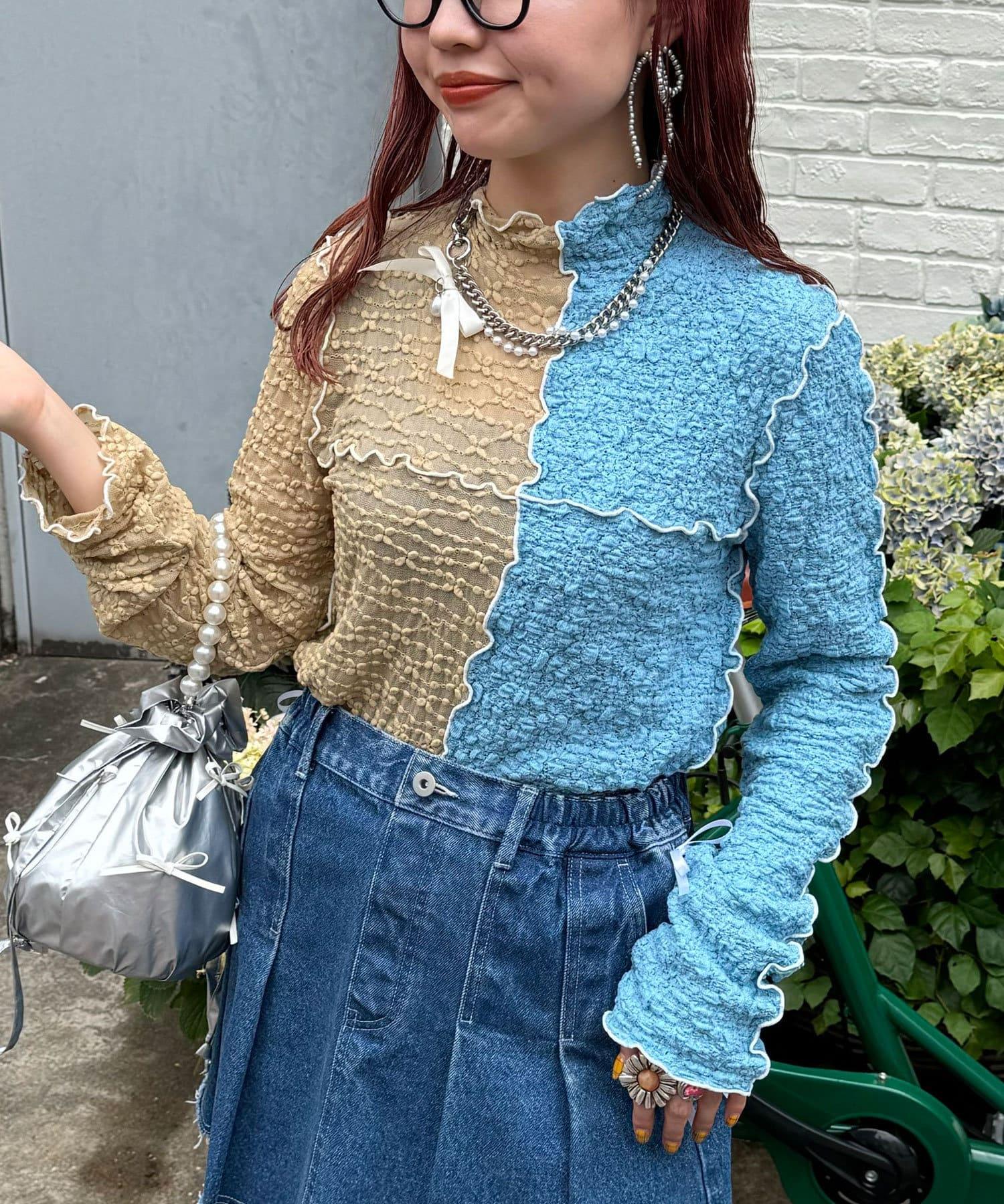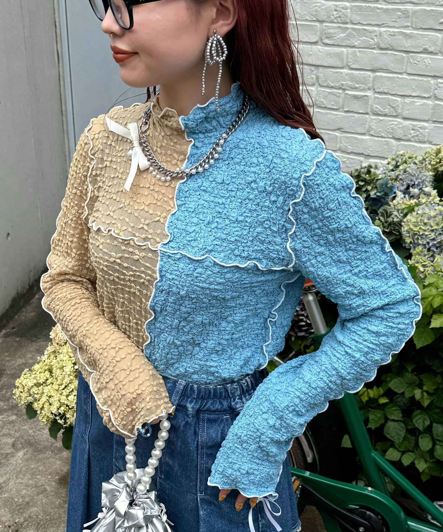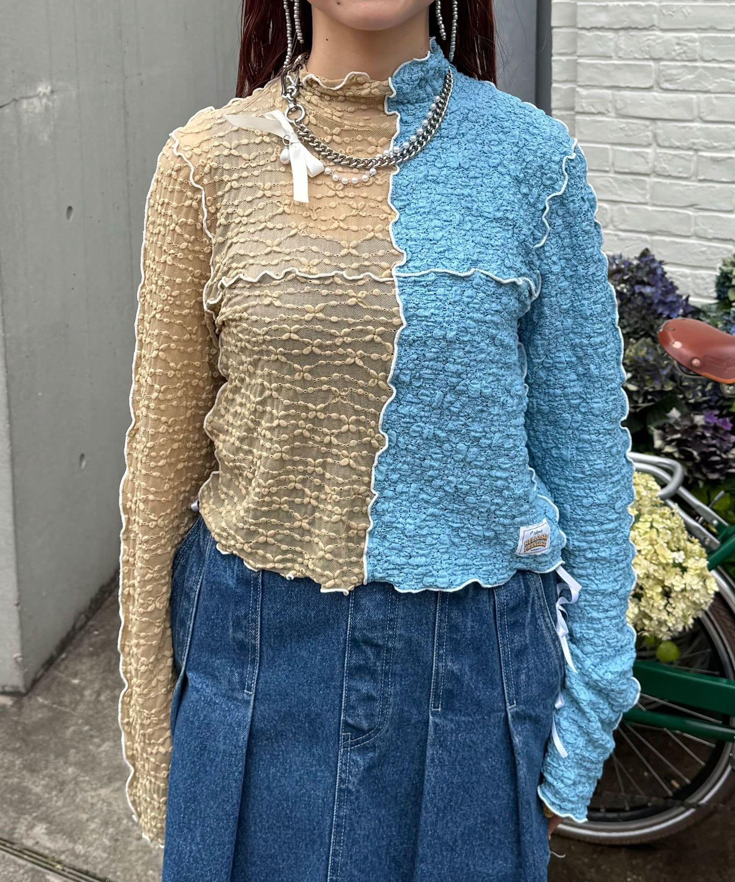 【2024AW】【HELLO.SANFRANCISCO/你好,舊金山】聯名配色蕾絲寬鬆T恤