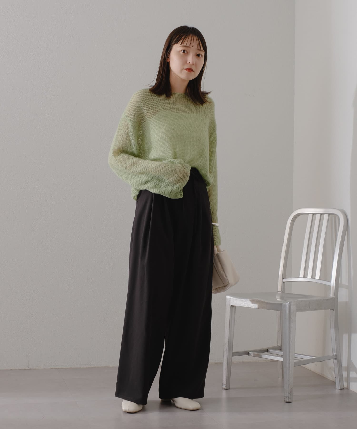 廓形具有寬鬆感,所以即使在外型上穿一件過大的上衣,也很容易保持良好的平衡。