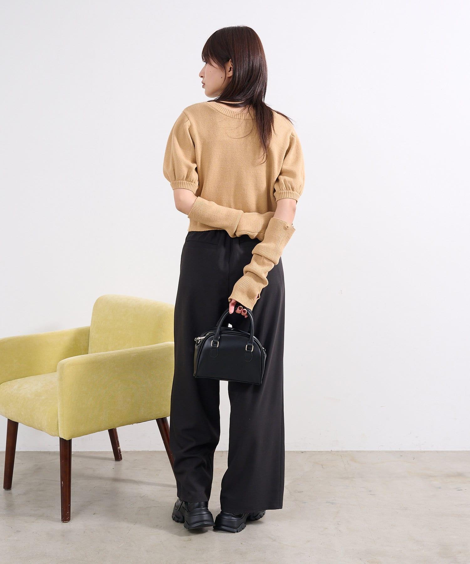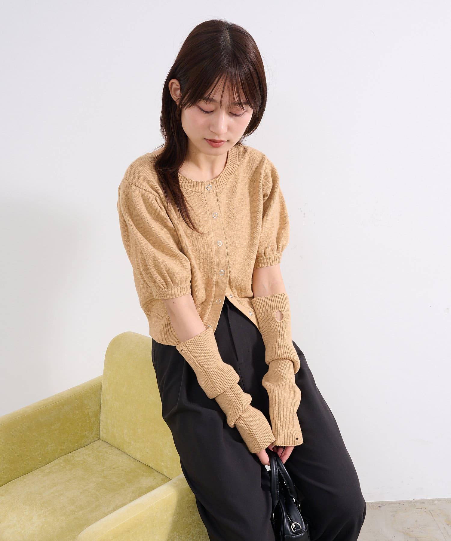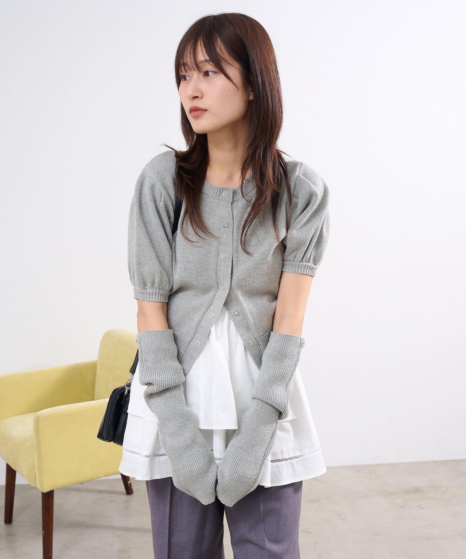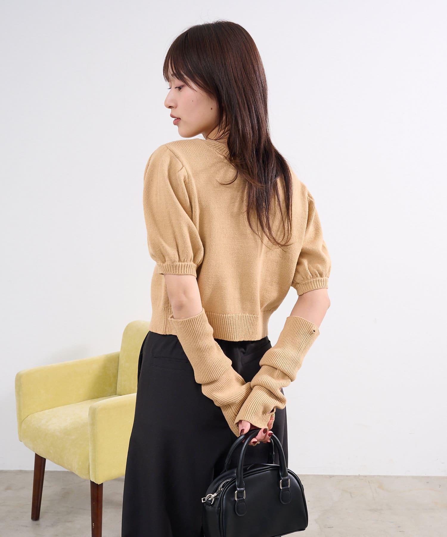 【2025春夏/4色可選/前後2WAY】短袖褶皺針織衫·袖套套裝
