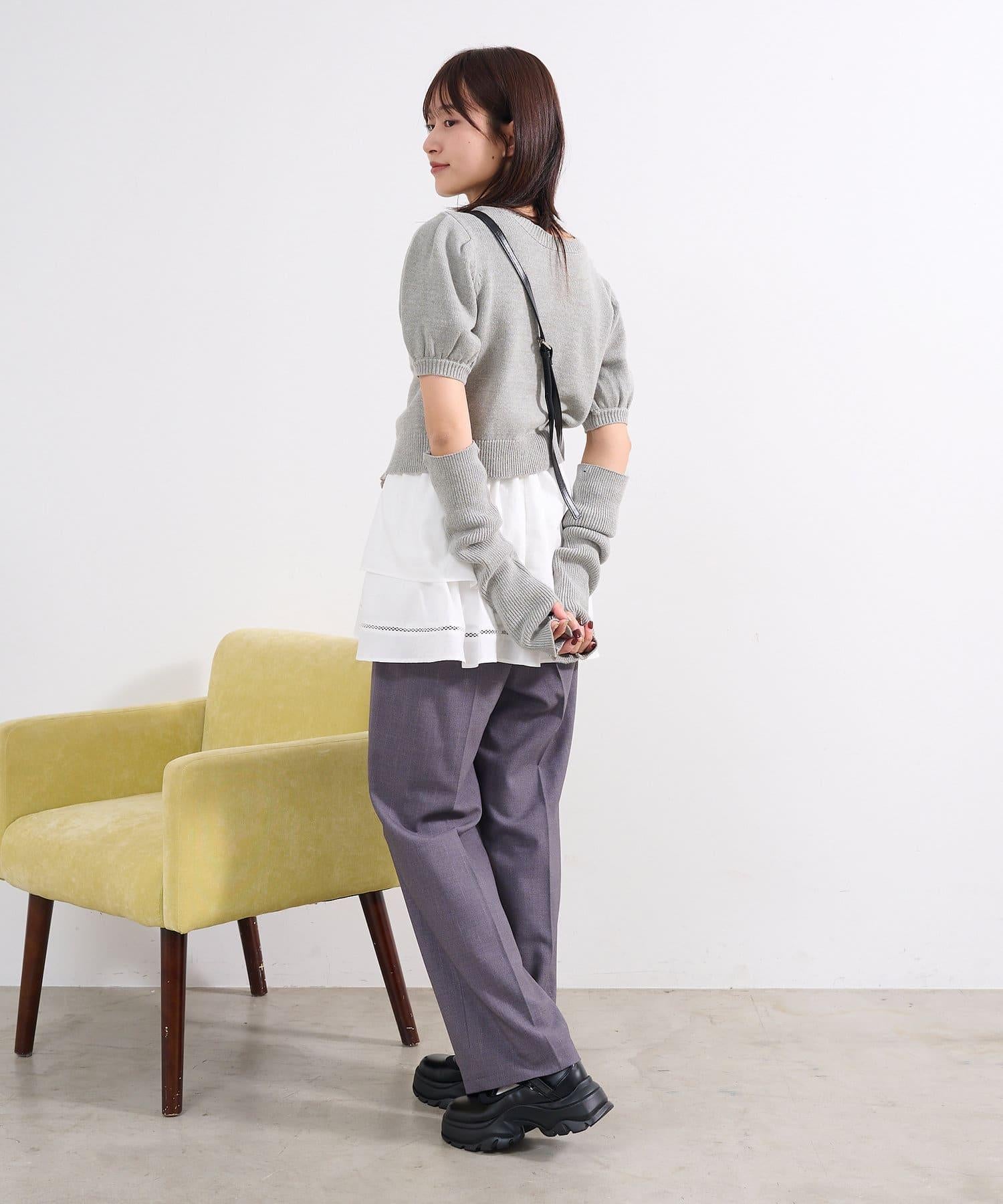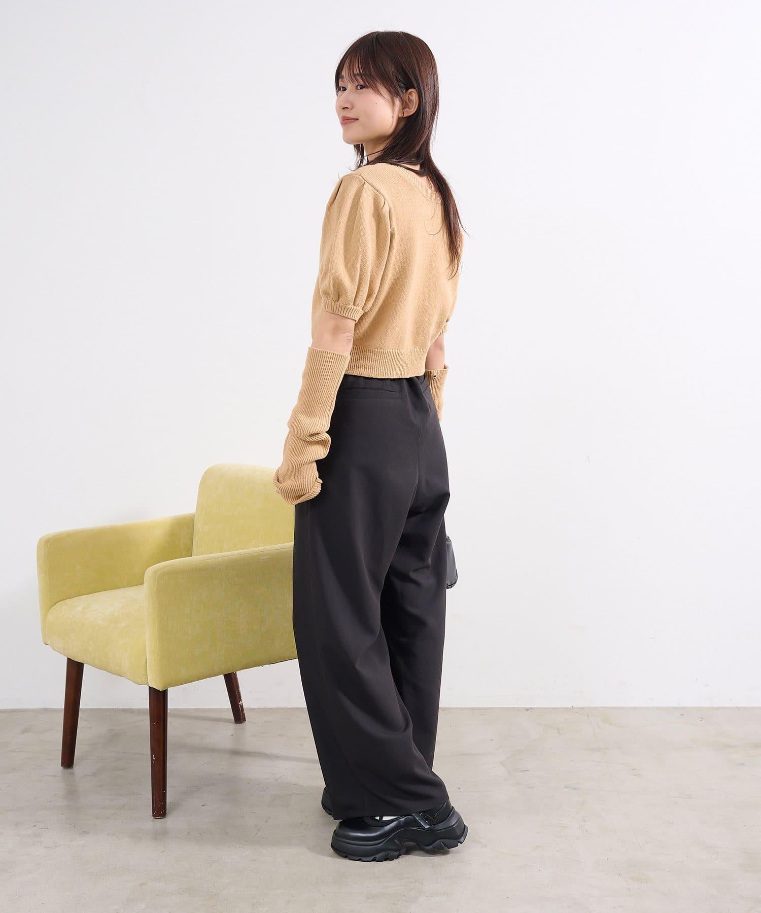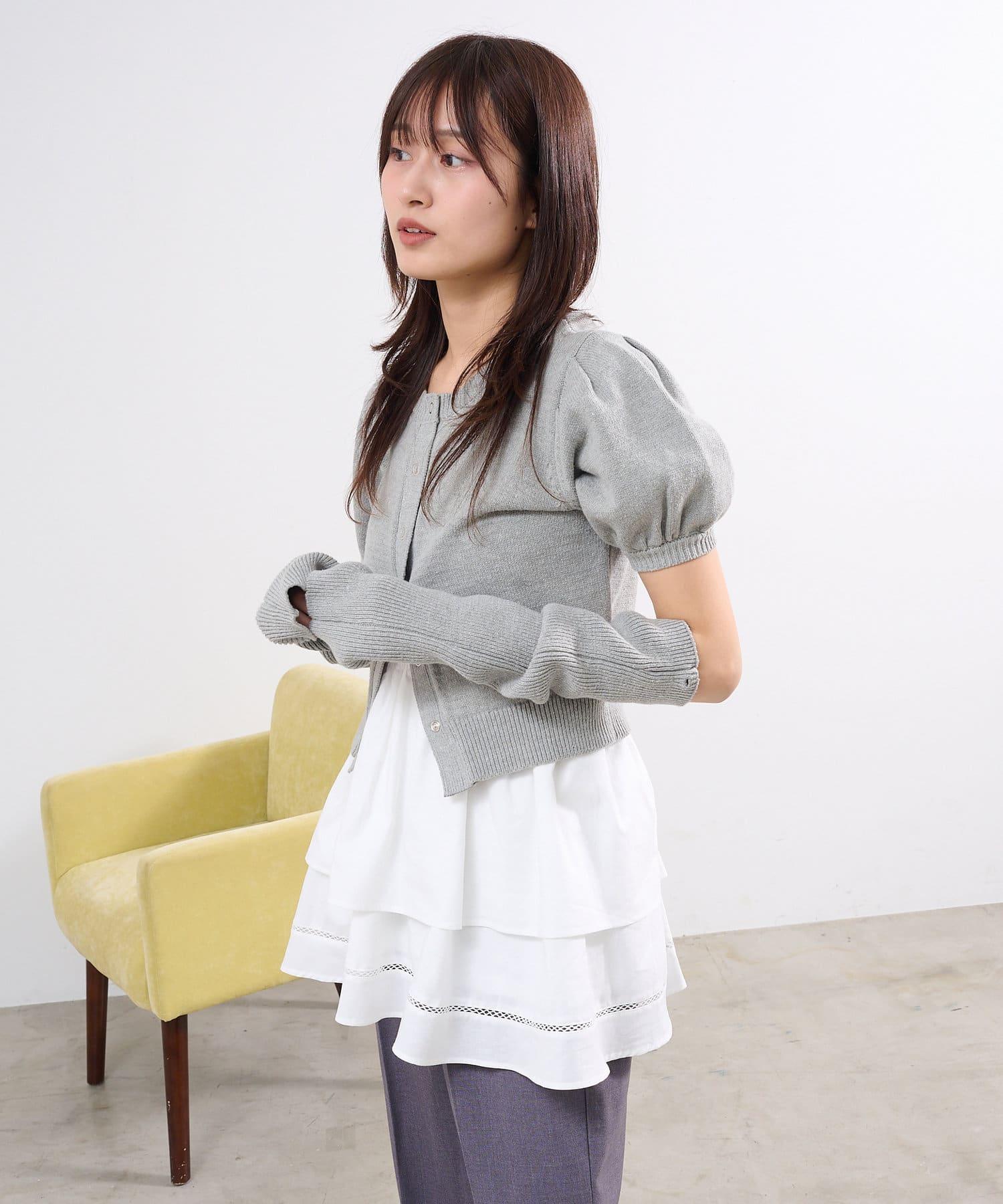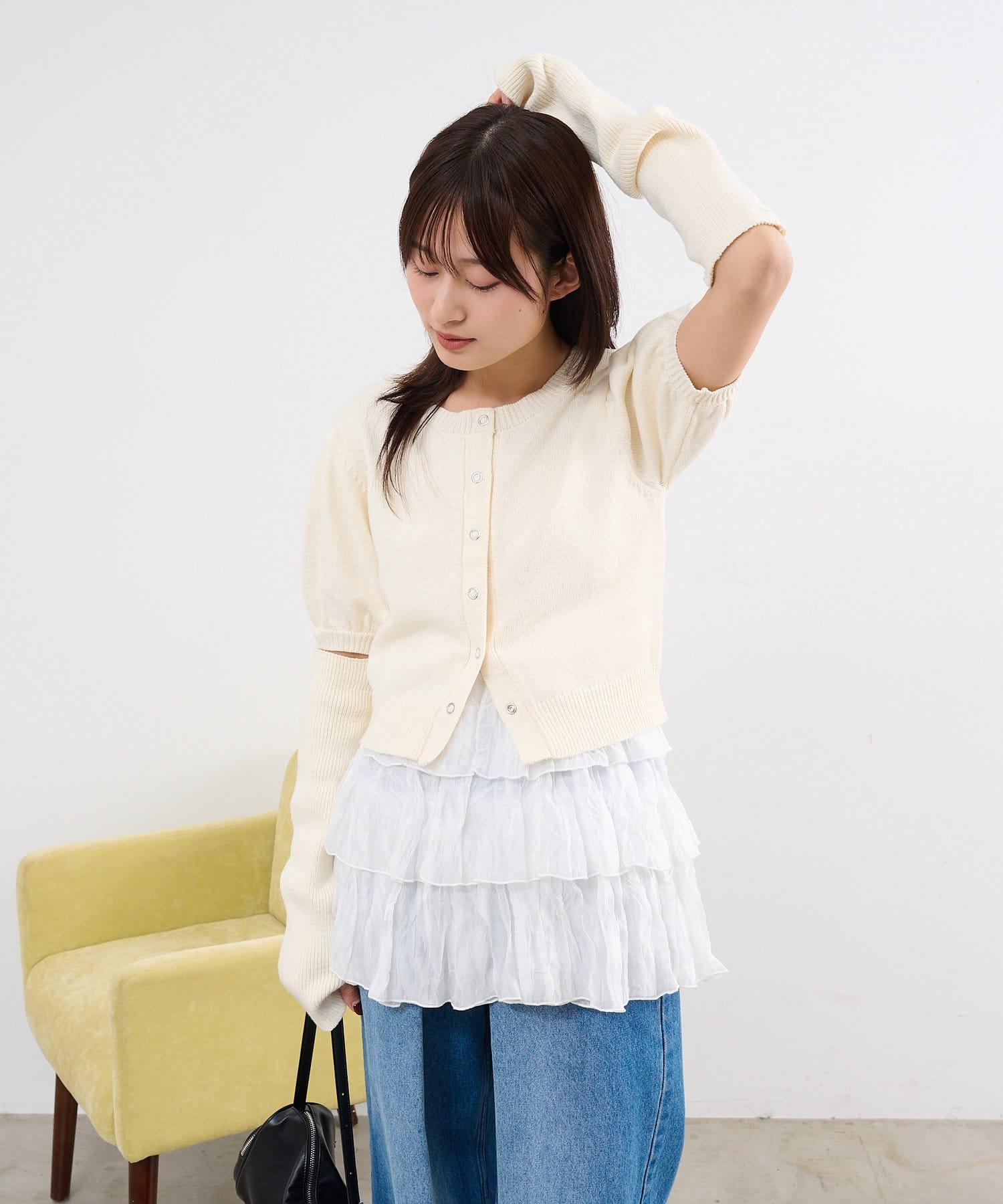 【2025春夏/4色可選/前後2WAY】短袖褶皺針織衫·袖套套裝