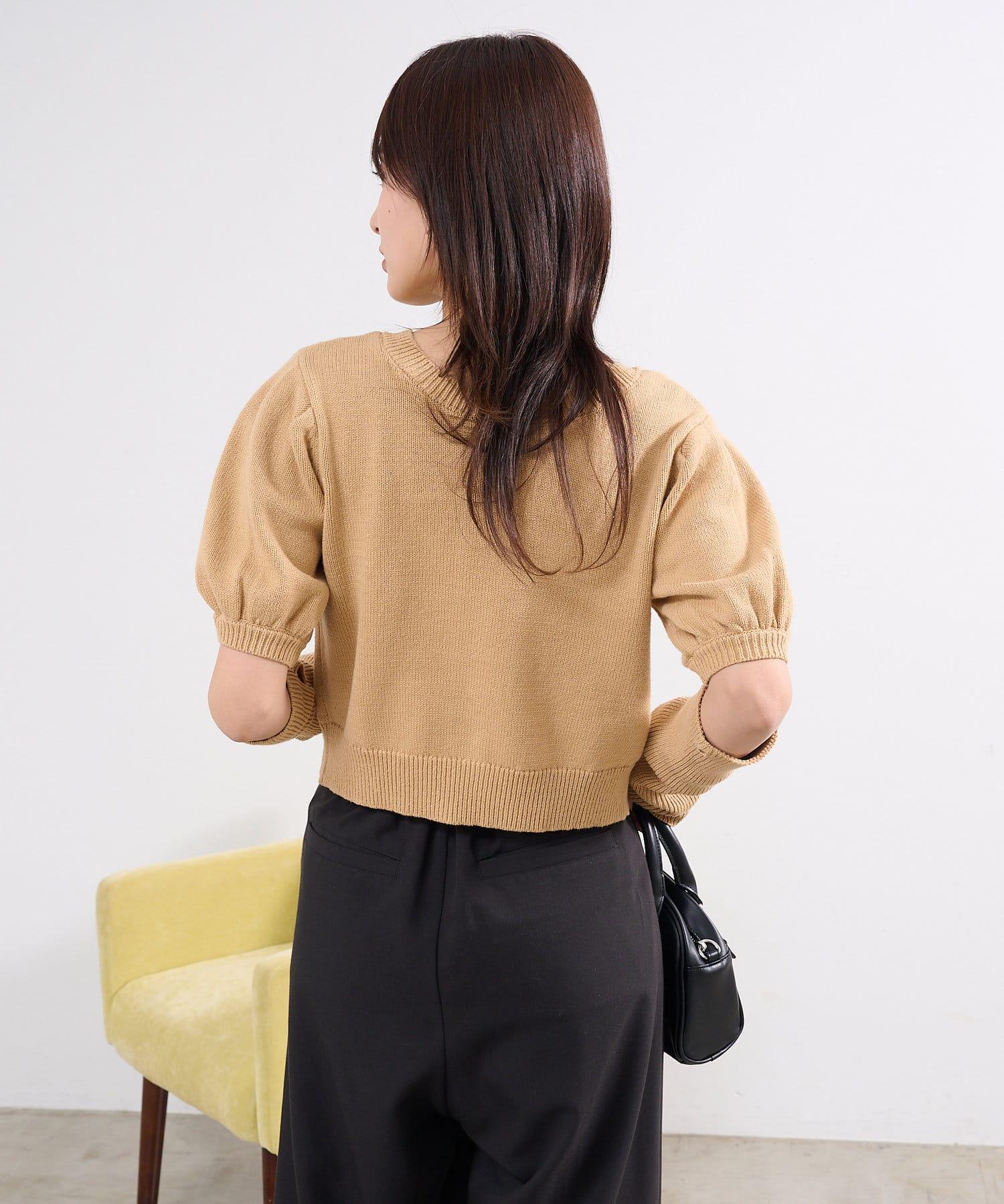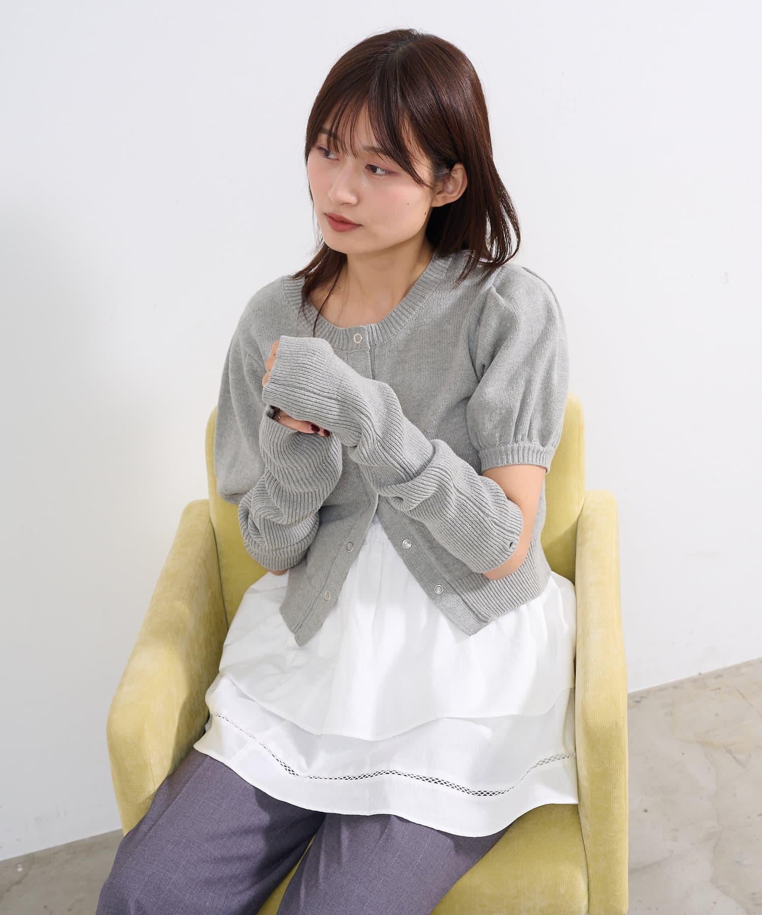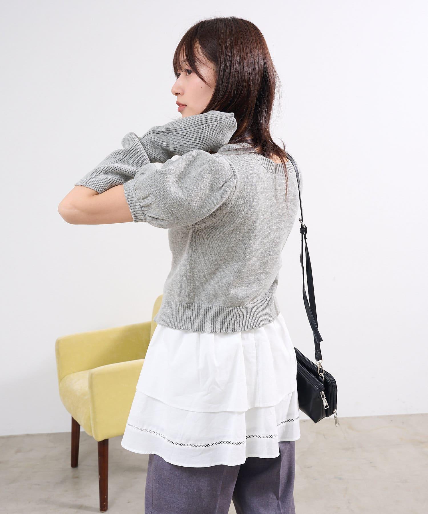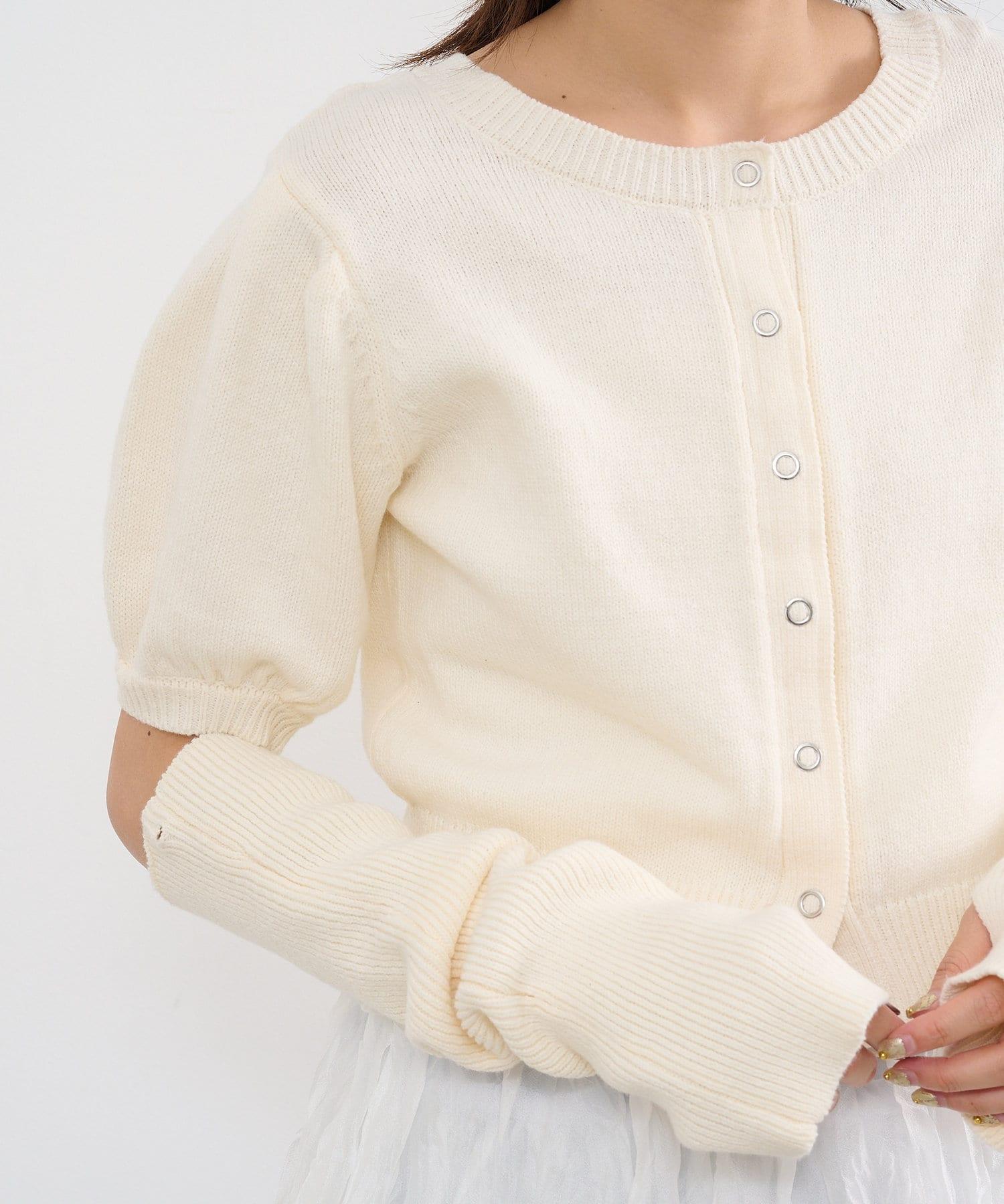 【2025春夏/4色可選/前後2WAY】短袖褶皺針織衫·袖套套裝