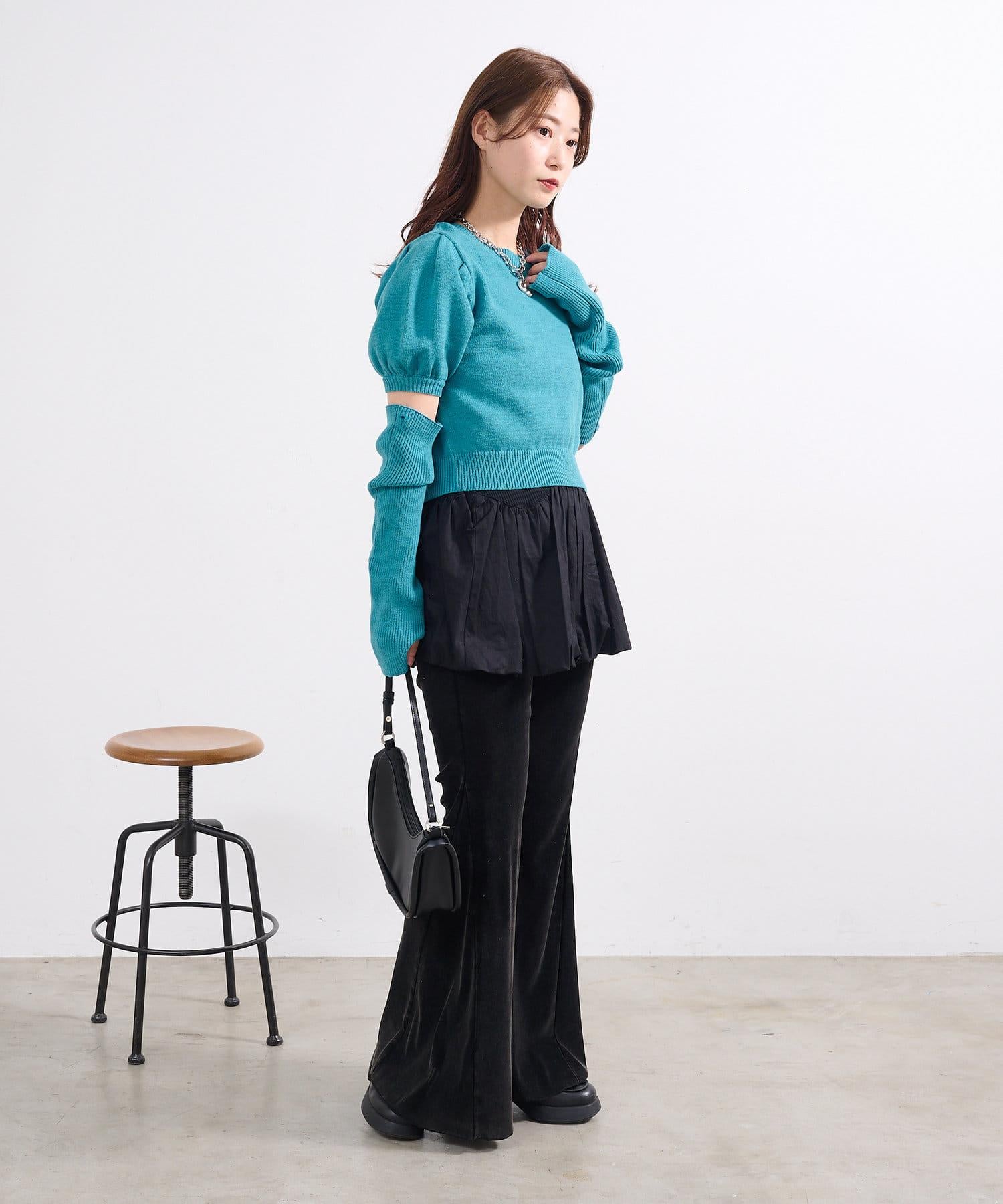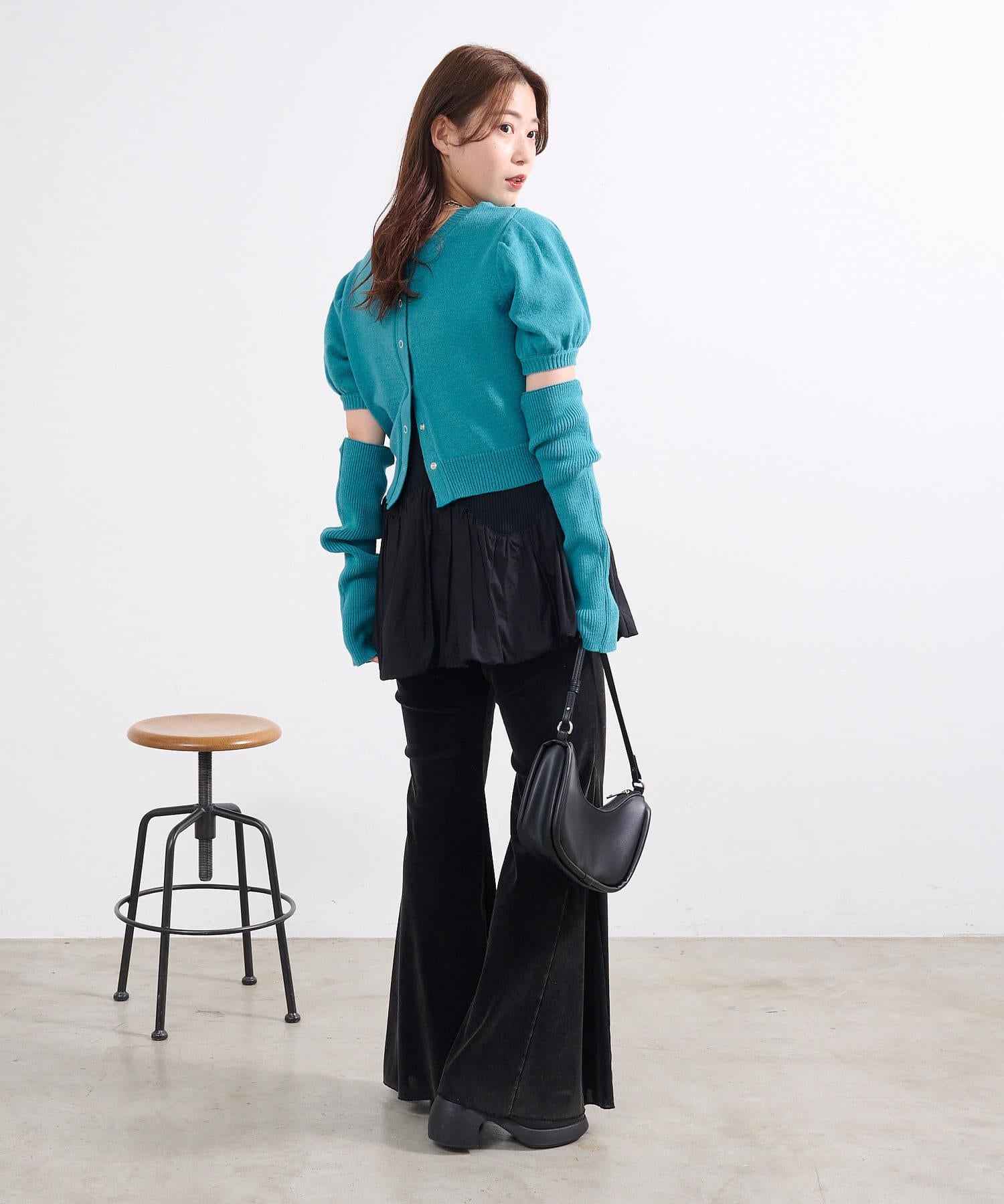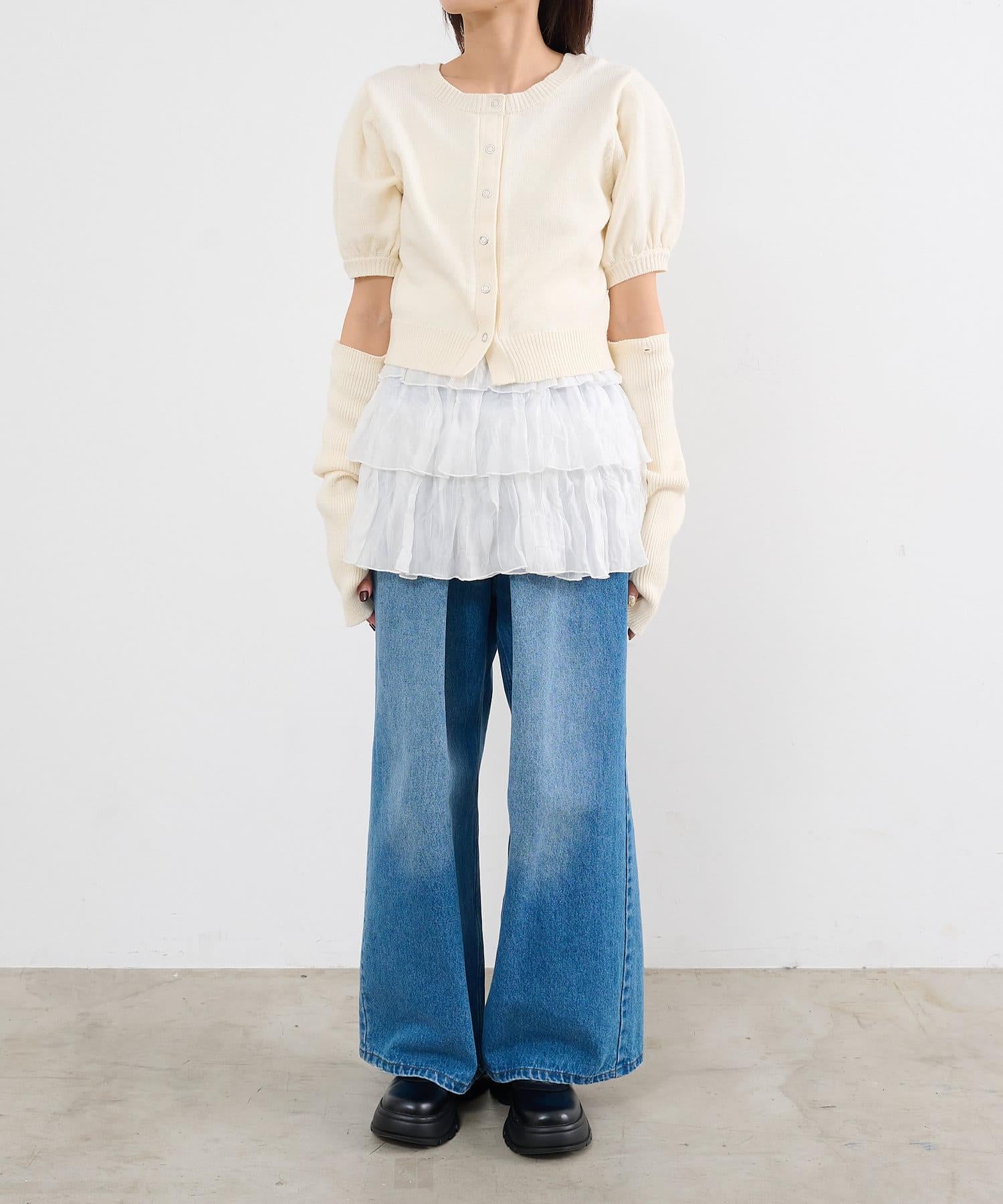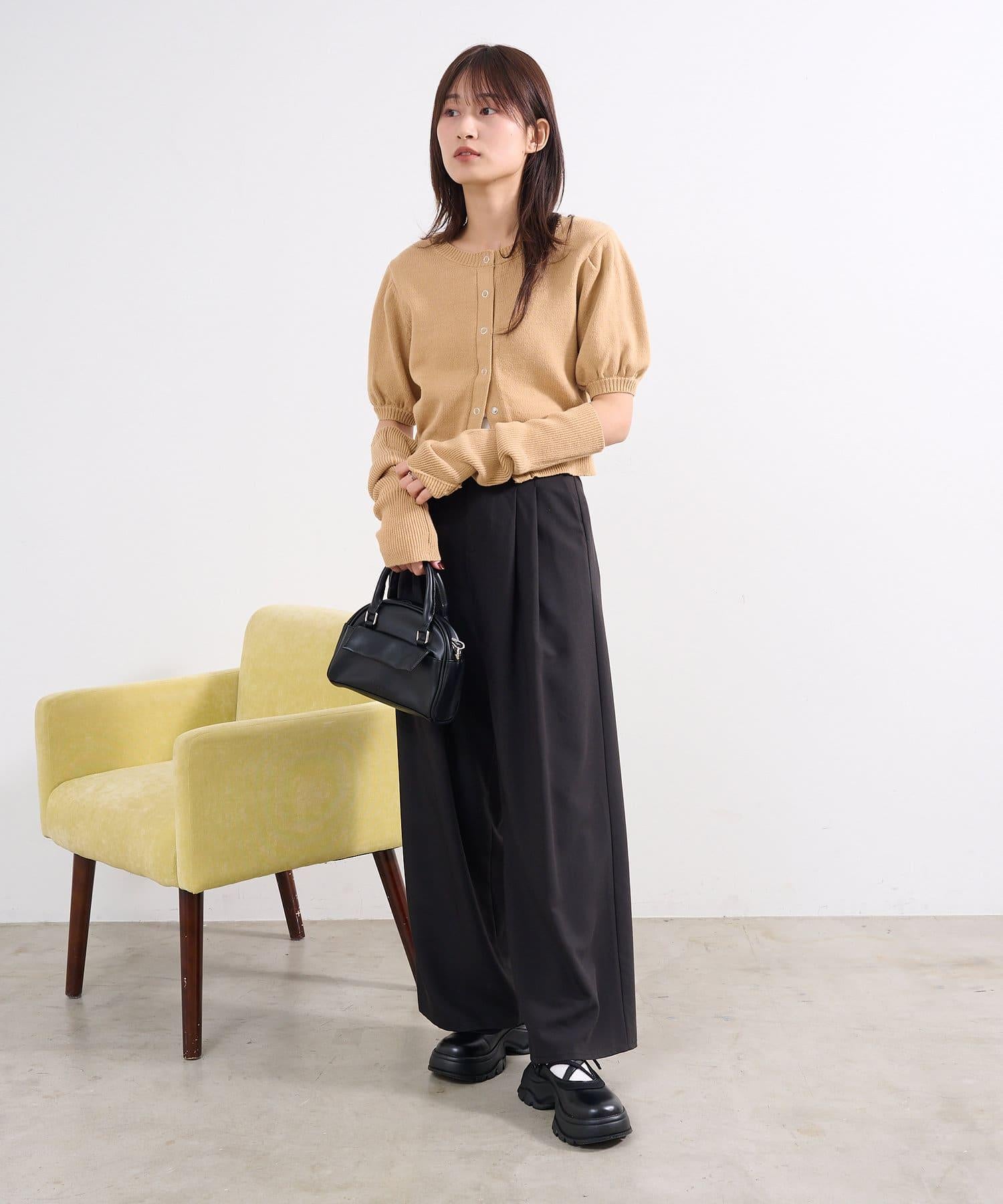 【2025春夏/4色可選/前後2WAY】短袖褶皺針織衫·袖套套裝