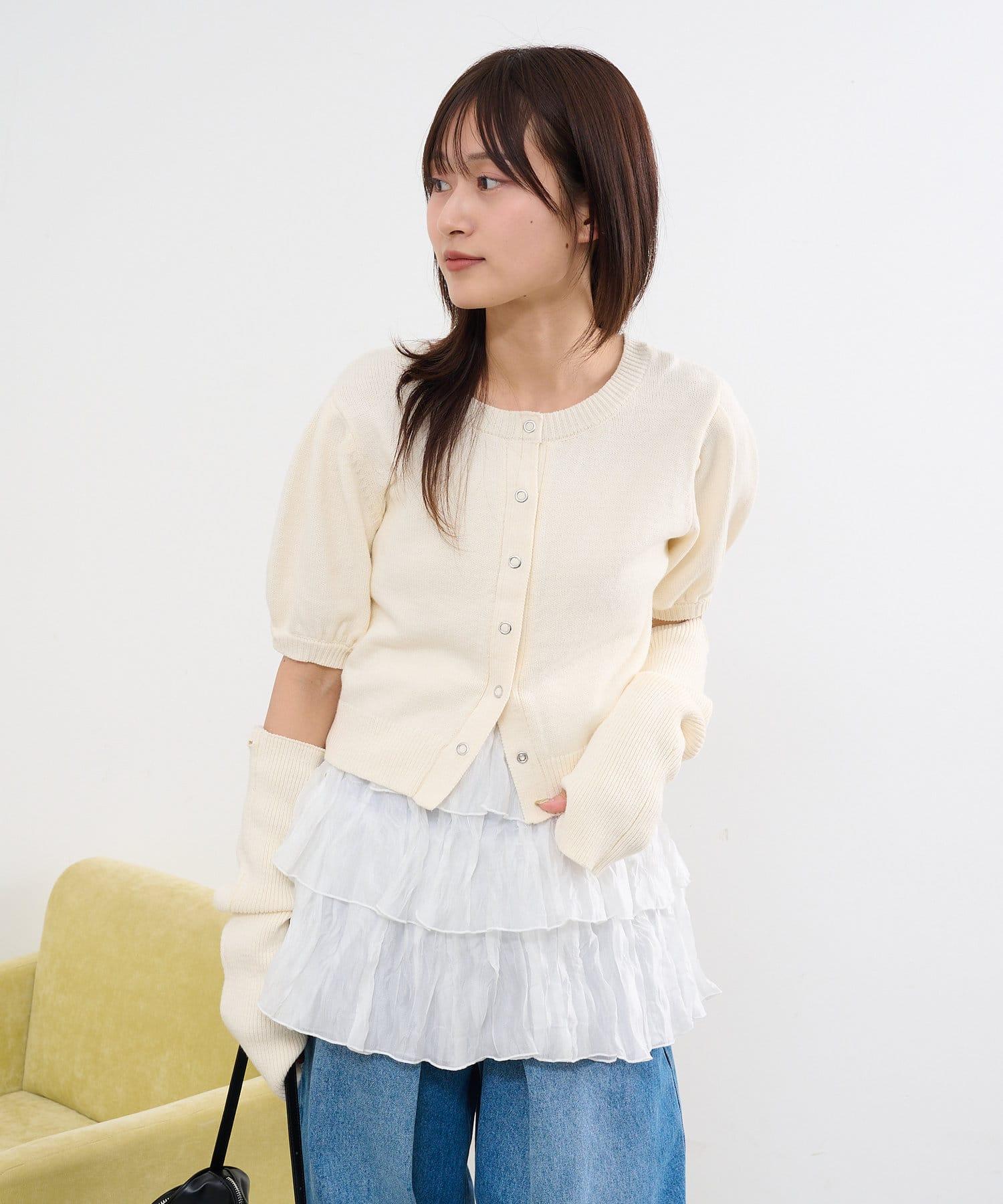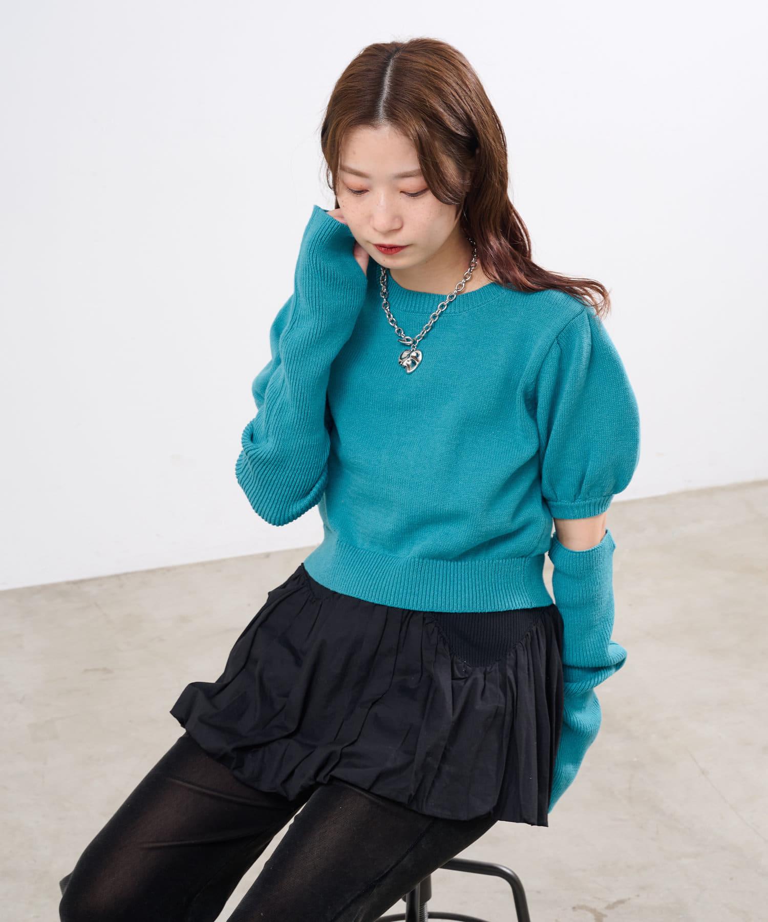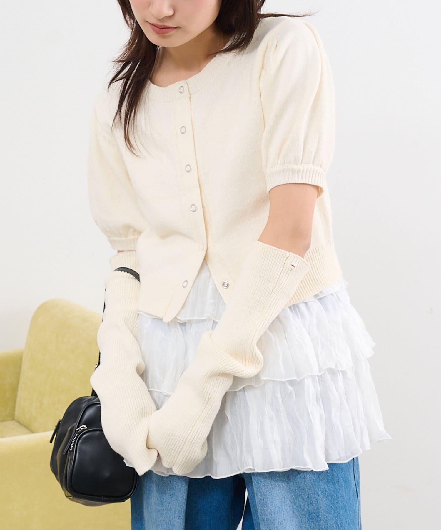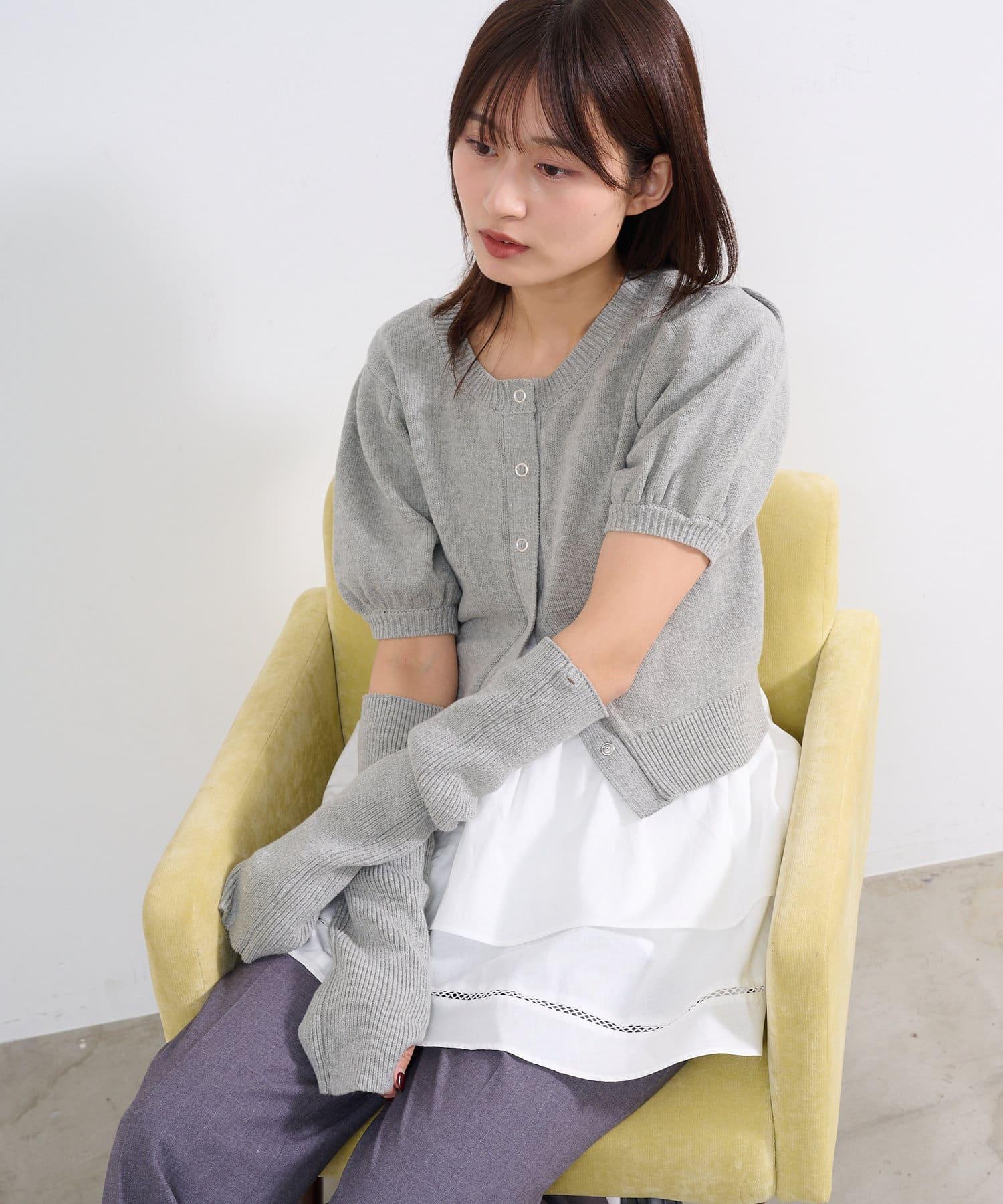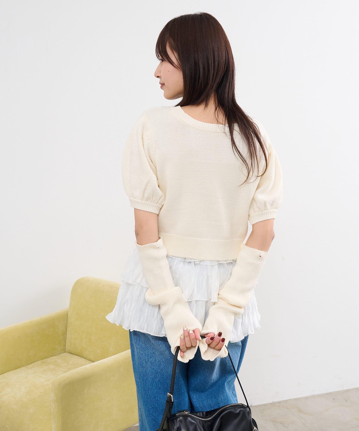 【2025春夏/4色可選/前後2WAY】短袖褶皺針織衫·袖套套裝
