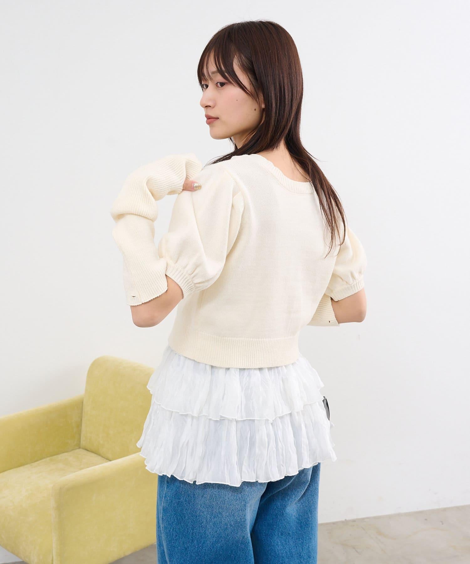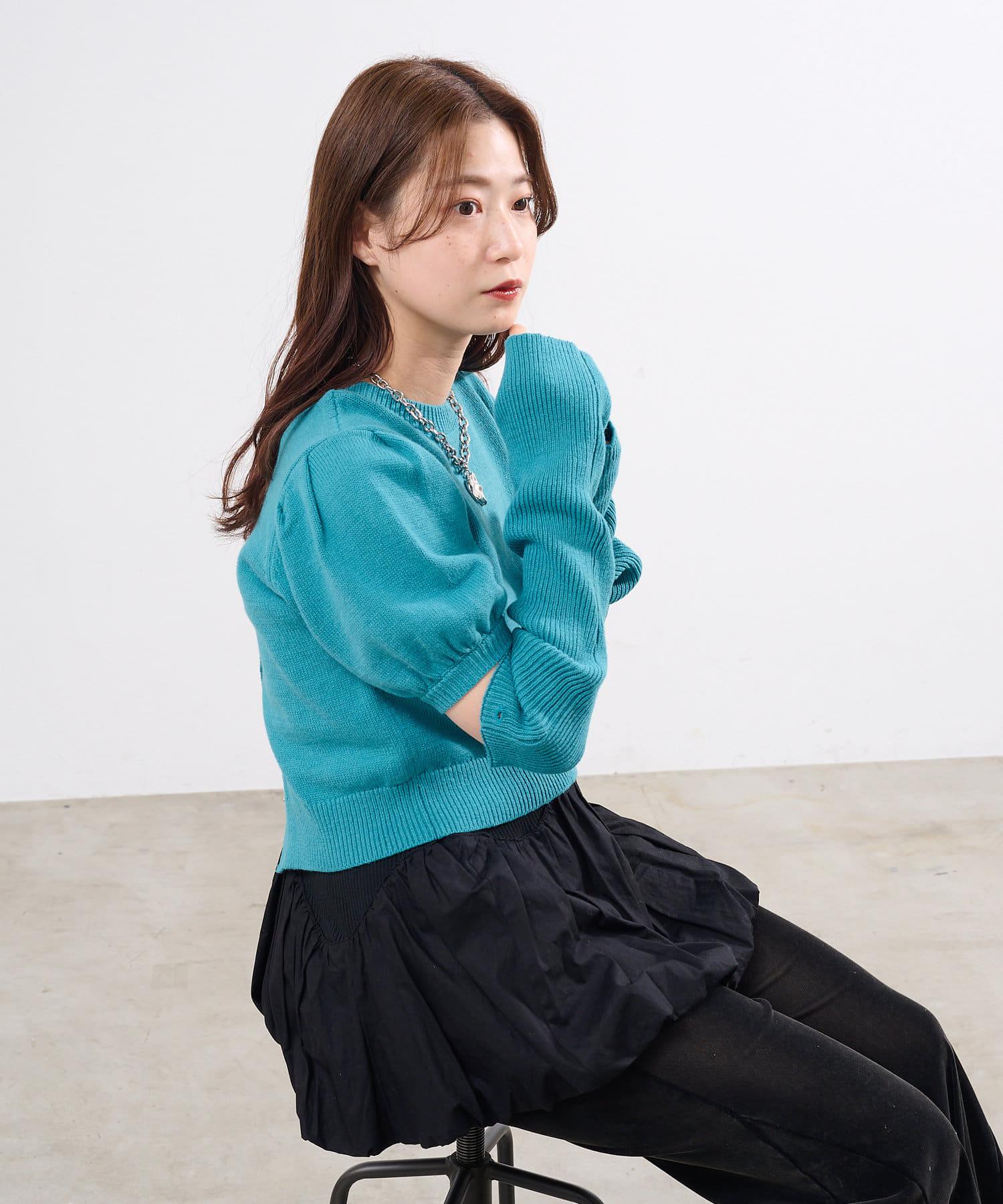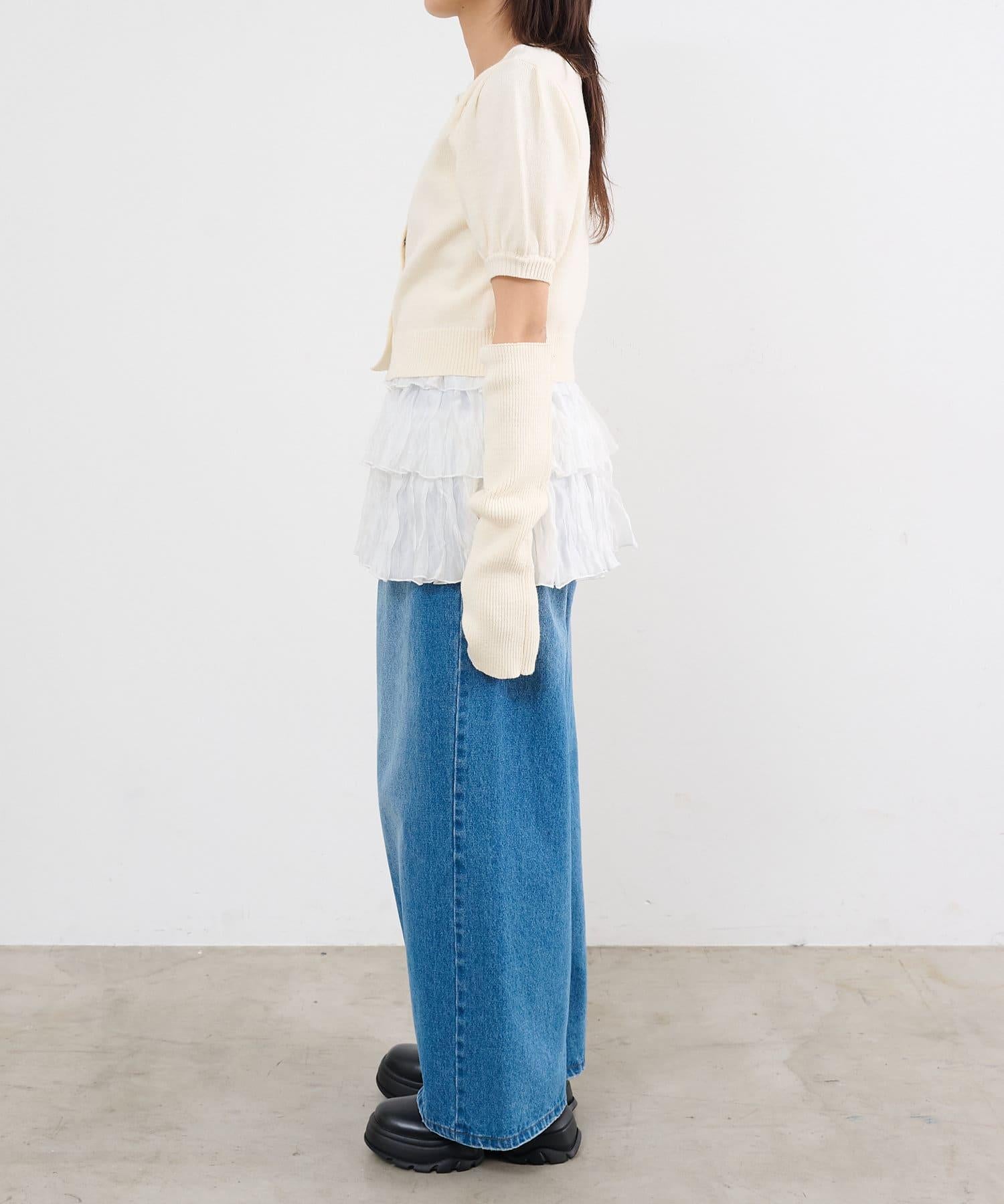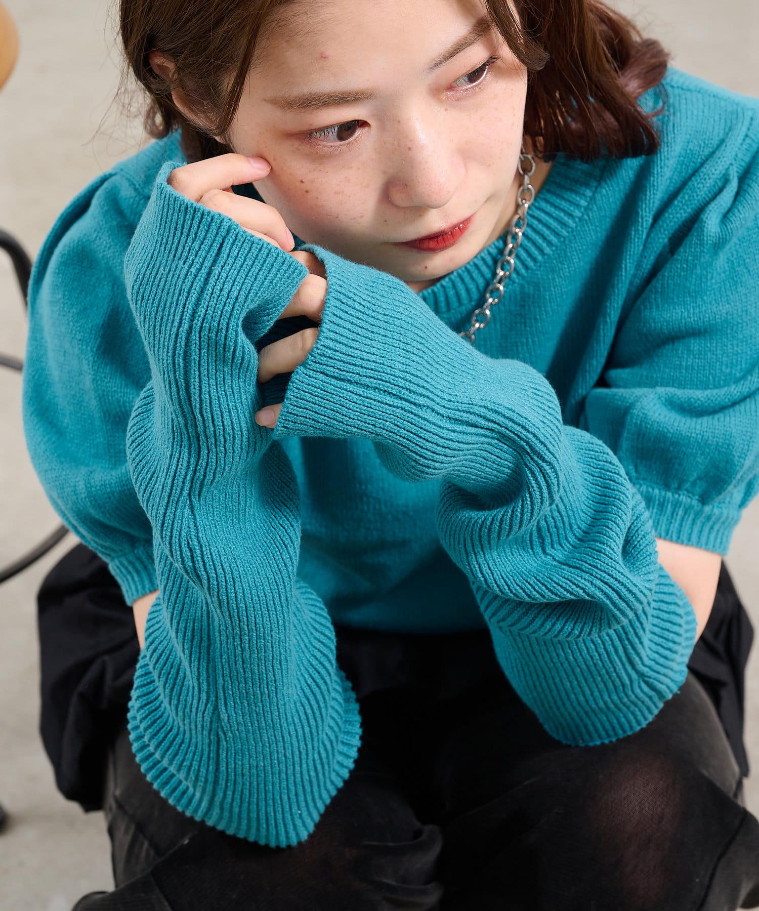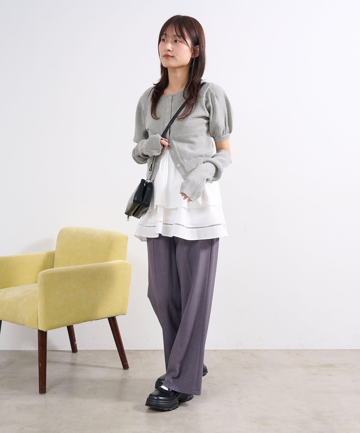 【2025春夏/4色可選/前後2WAY】短袖褶皺針織衫·袖套套裝