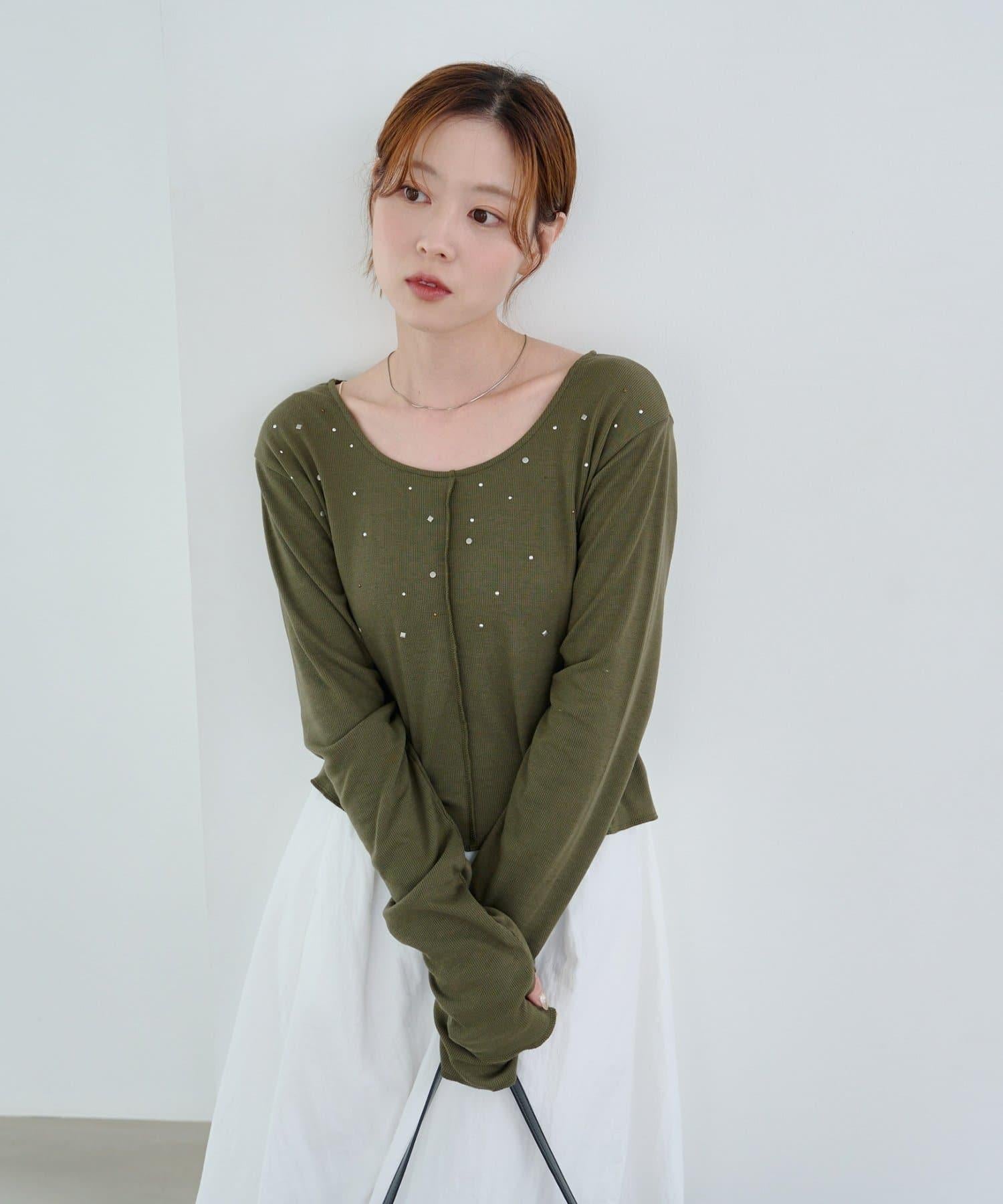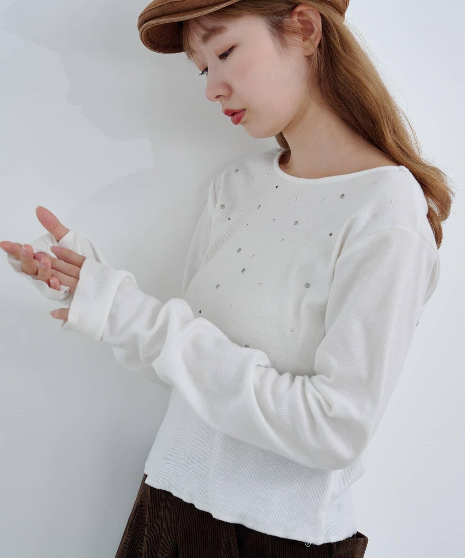 預約商品【2025AW】鉚釘羅紋針織上衣