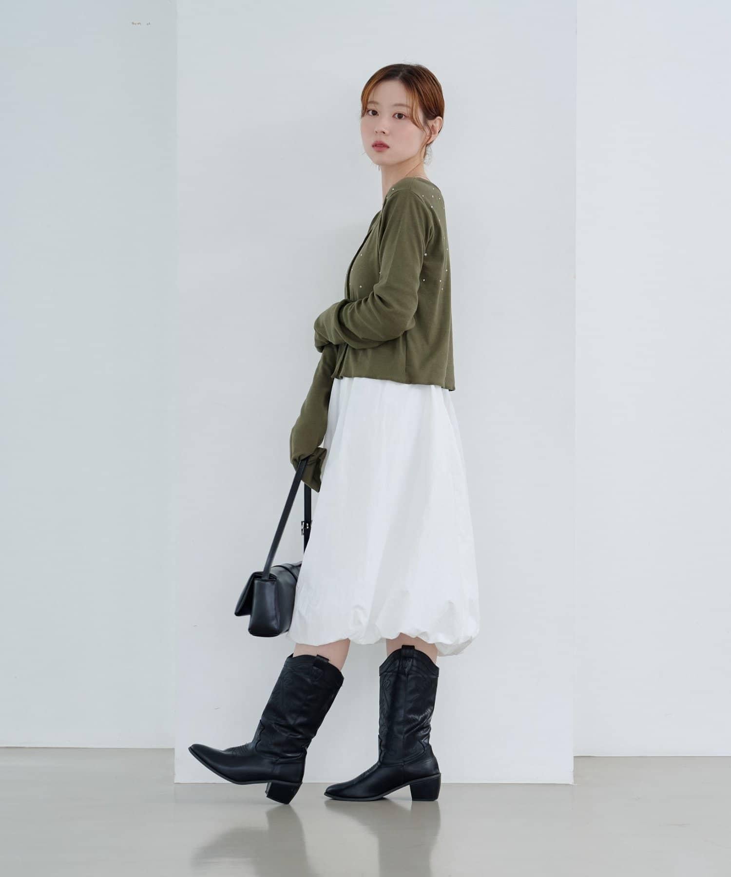與裙子搭配,給人經典、成熟、可愛的印象。