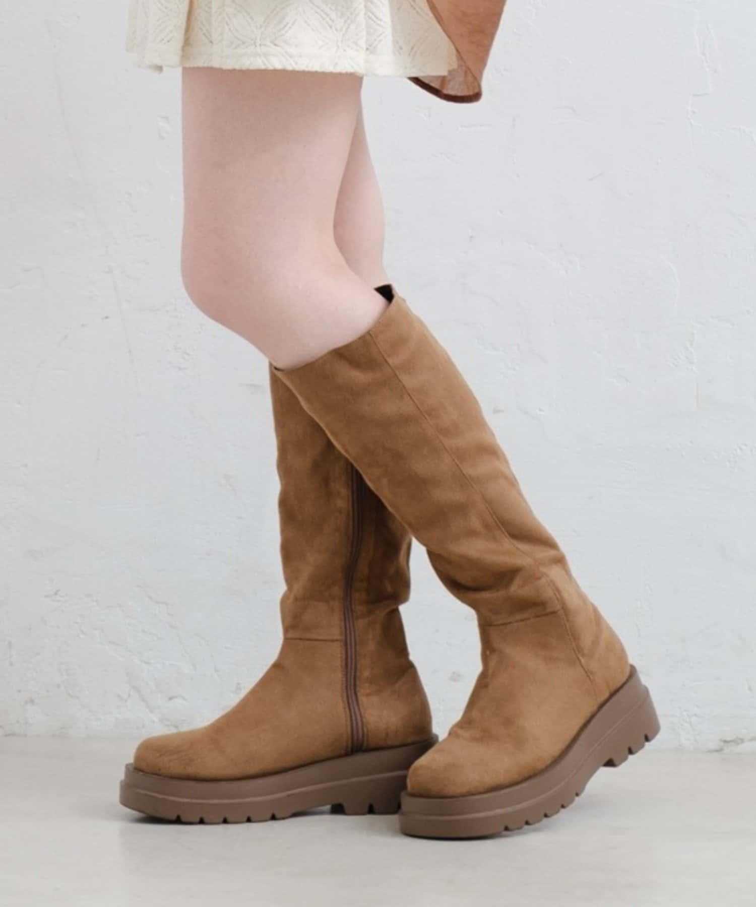 長筒靴採用柔軟的仿麂皮製成,質感自然。