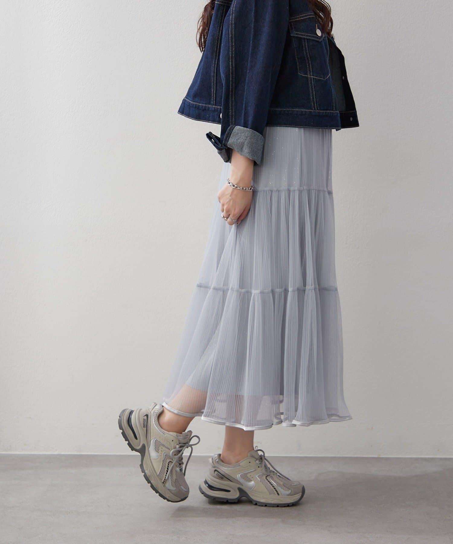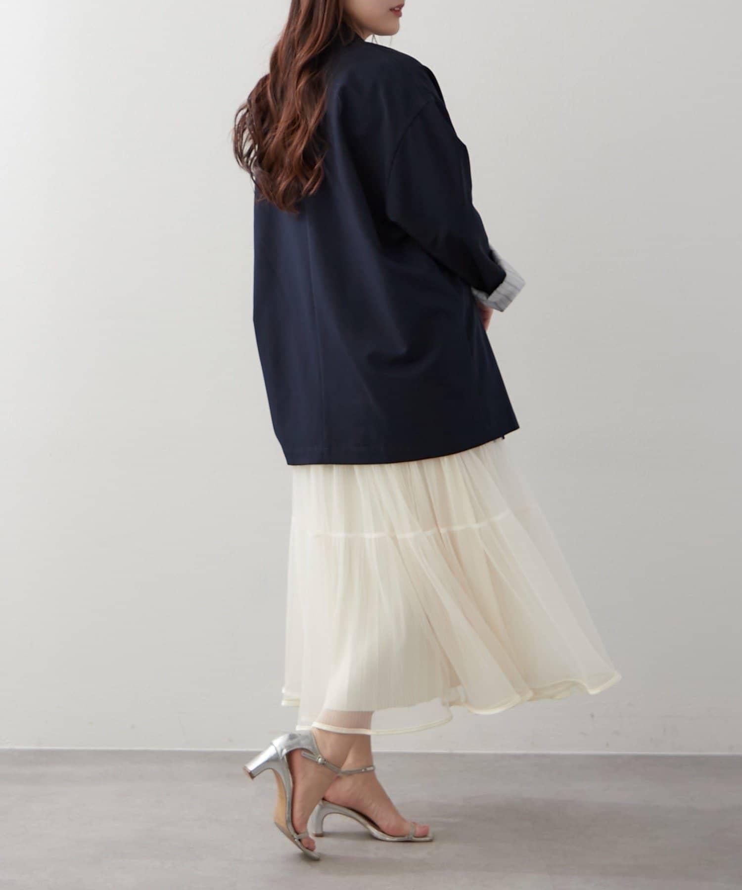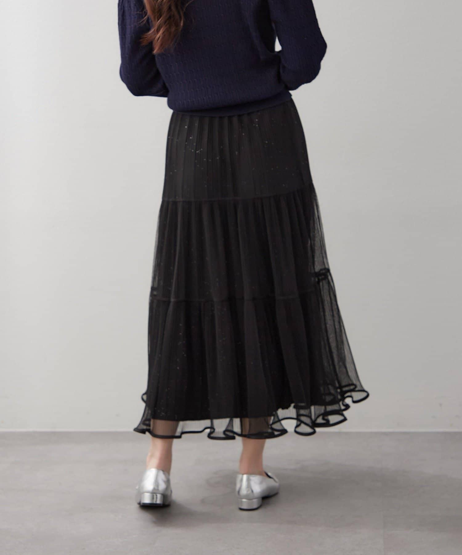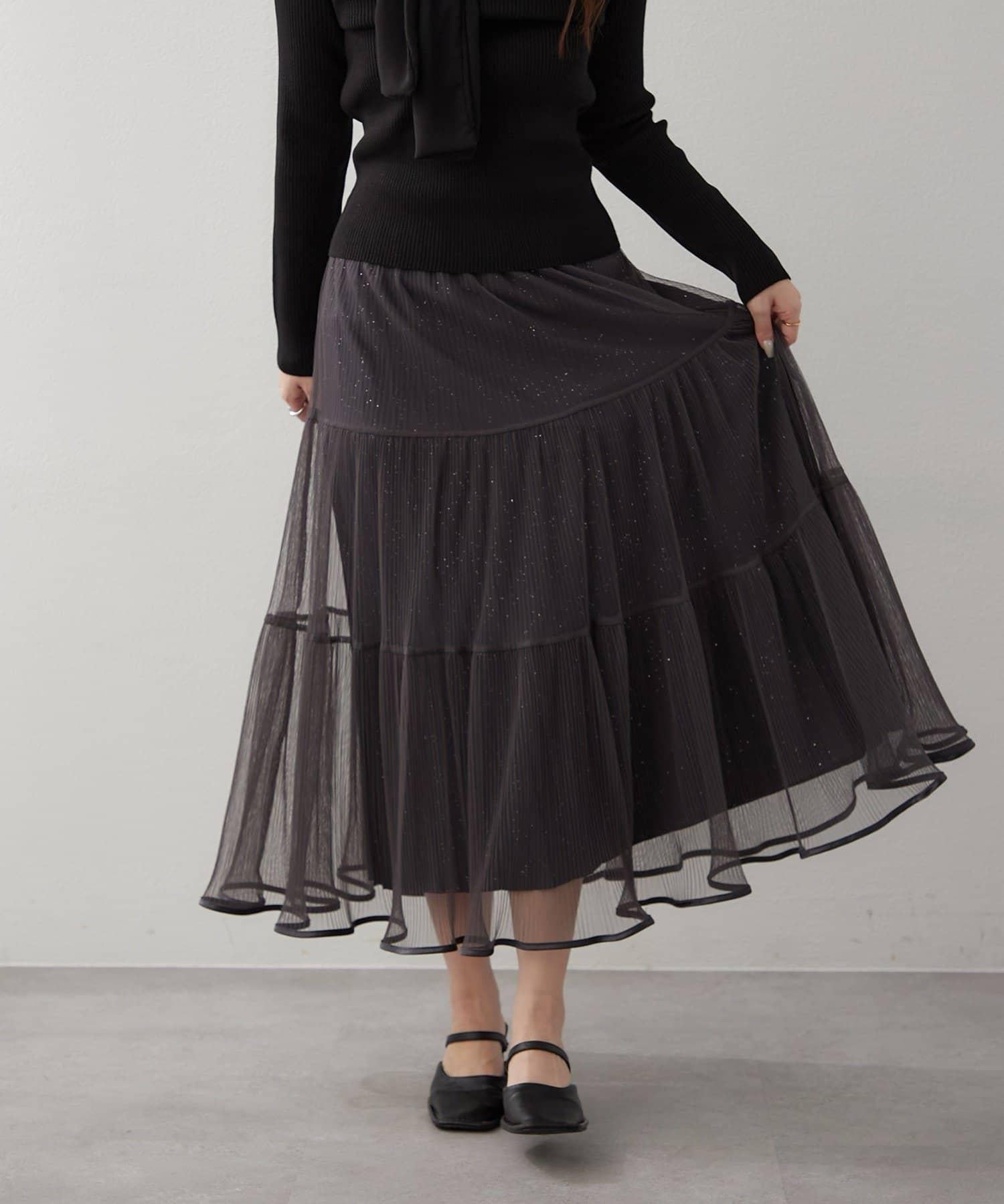 薄紗裙身,採用微微閃亮的薄紗材質。