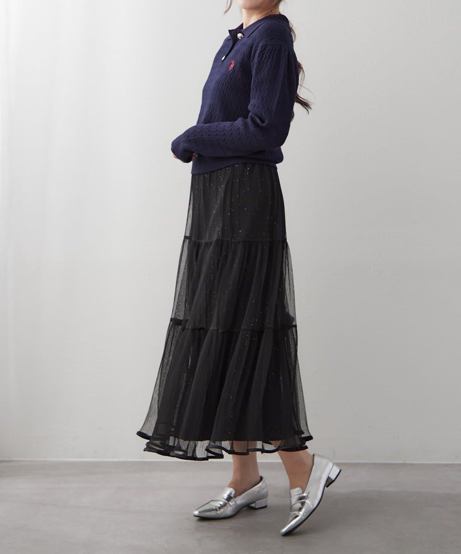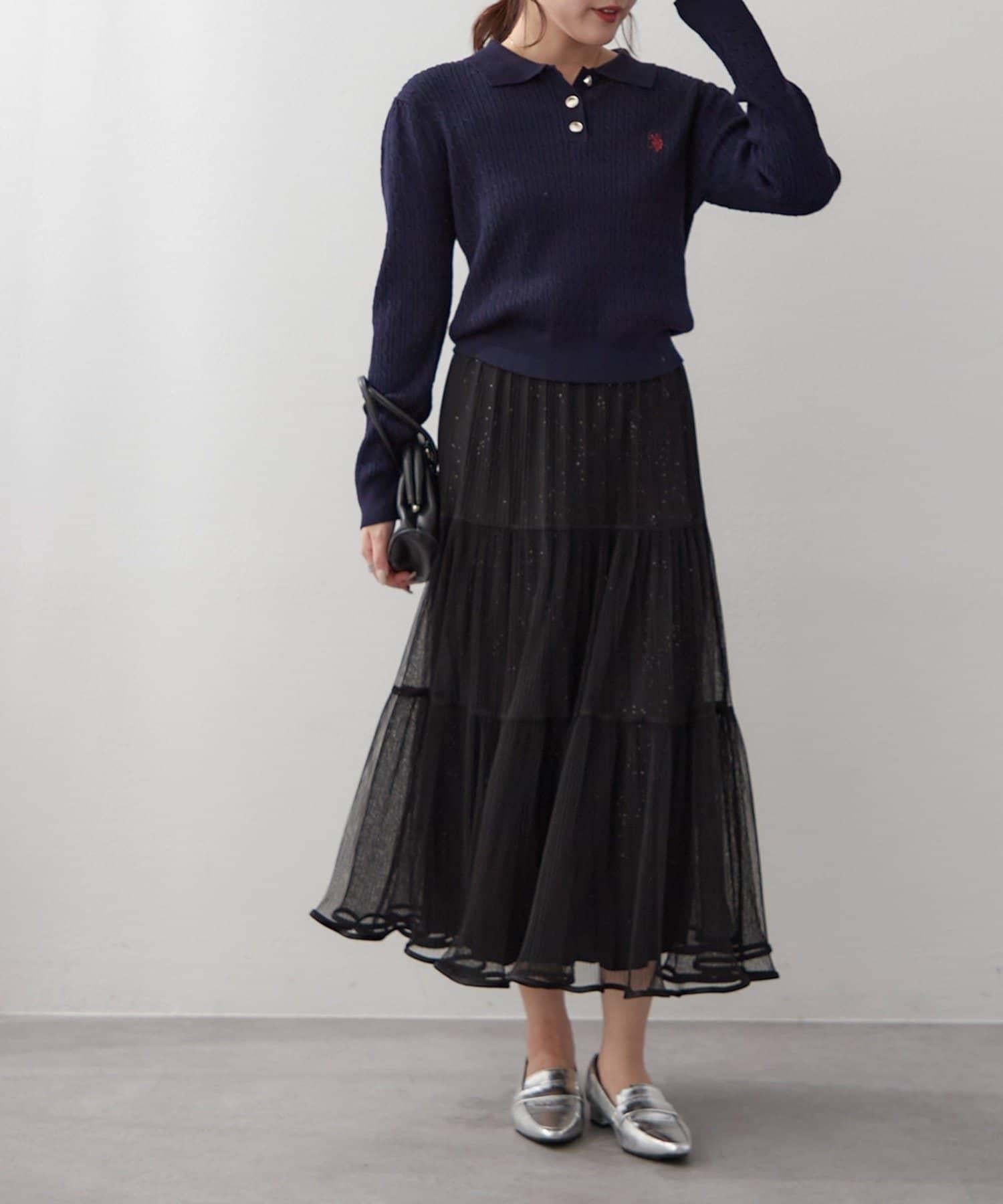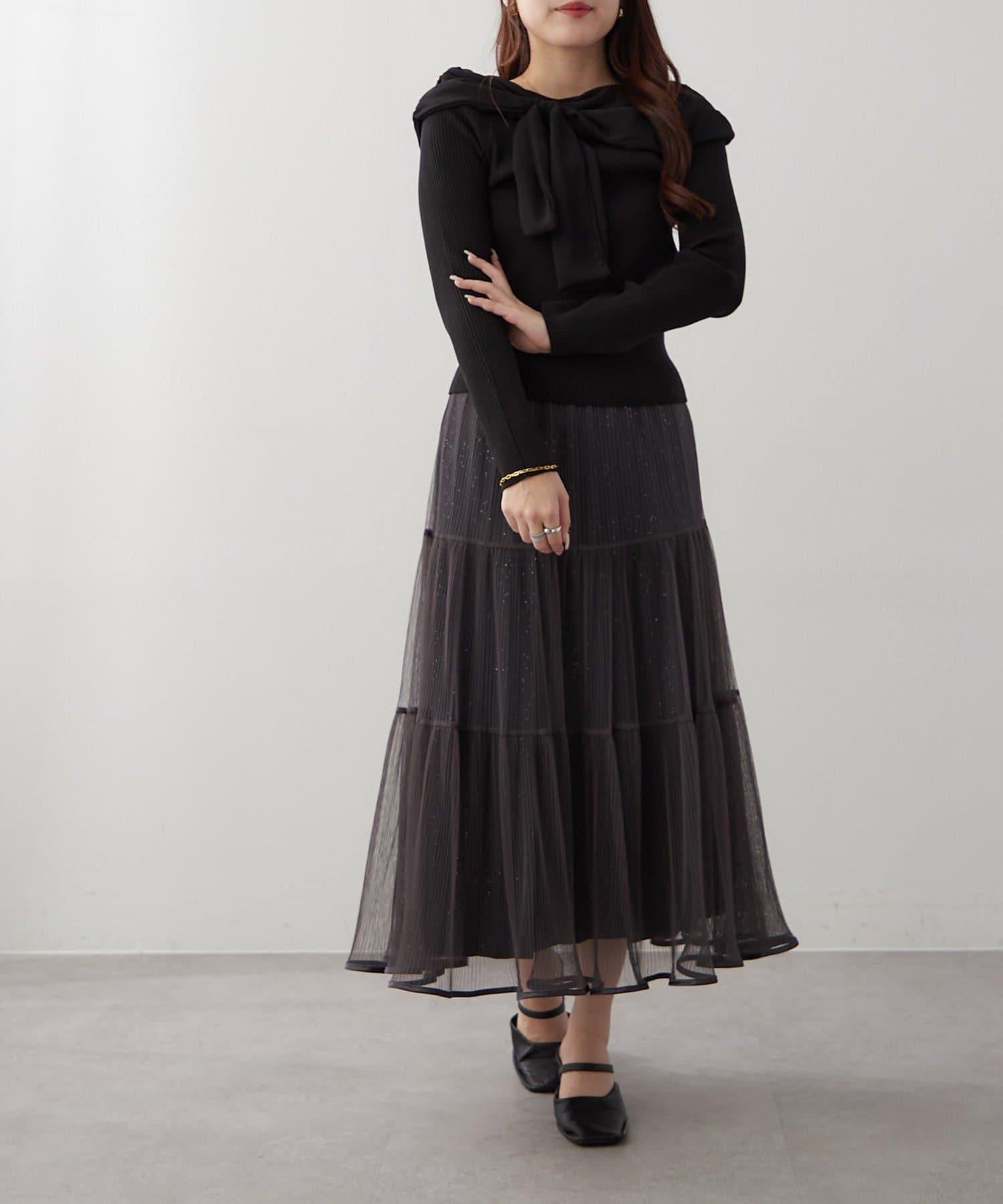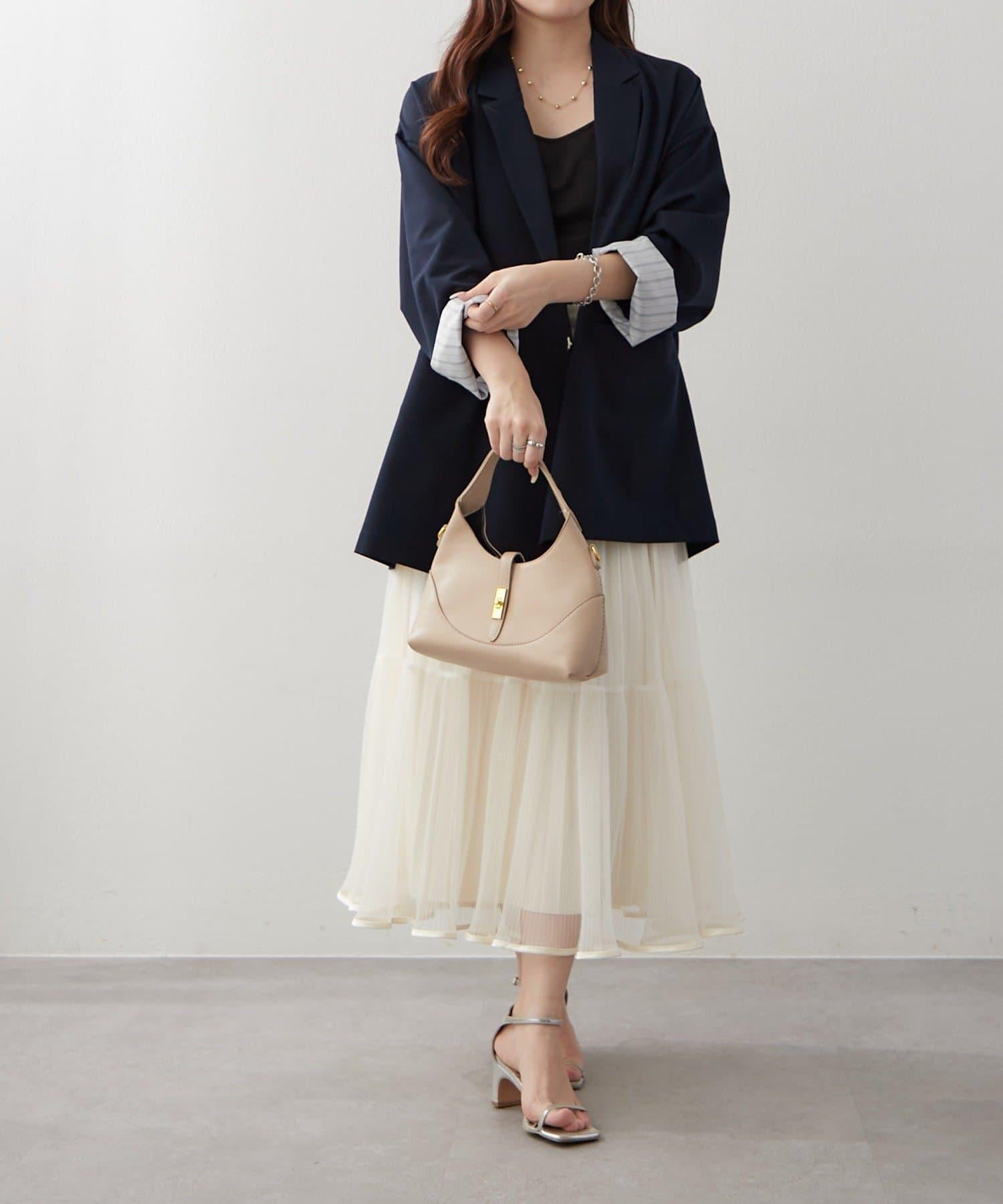 薄紗裙身,採用微微閃亮的薄紗材質。