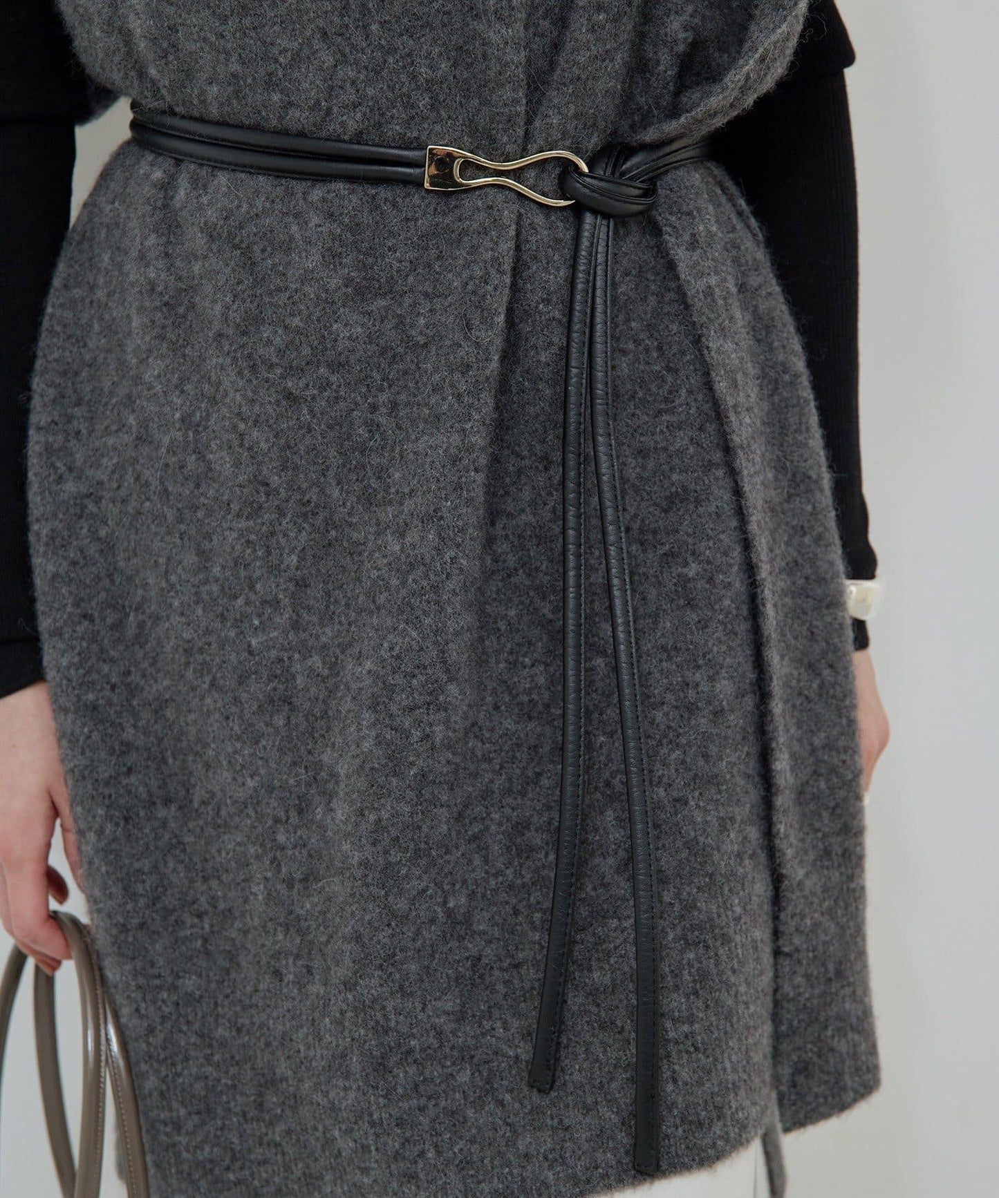 腰帶有兩種顏色可供選擇:黑色具有收緊效果,而灰米色則可與針織衫完美融合。