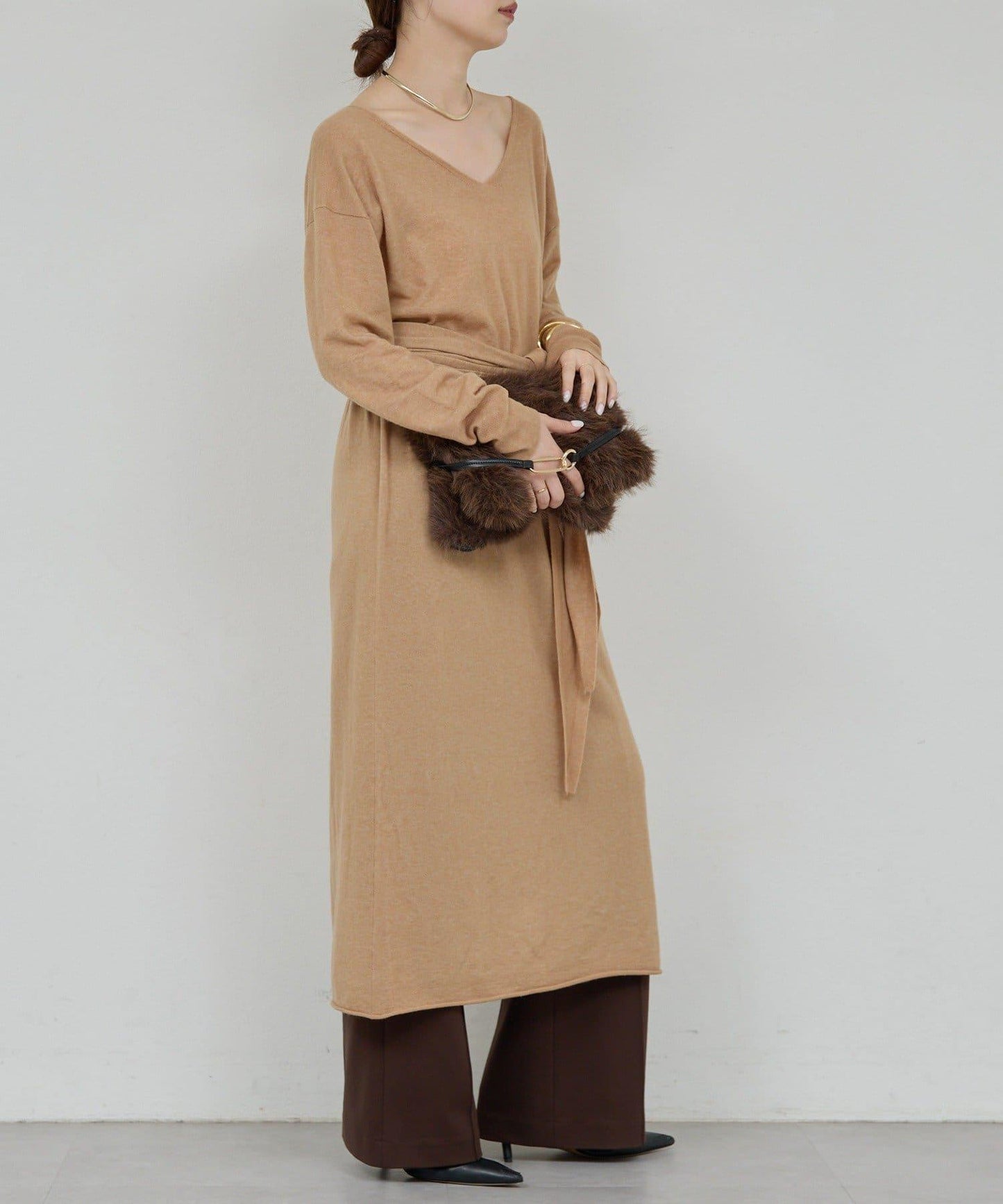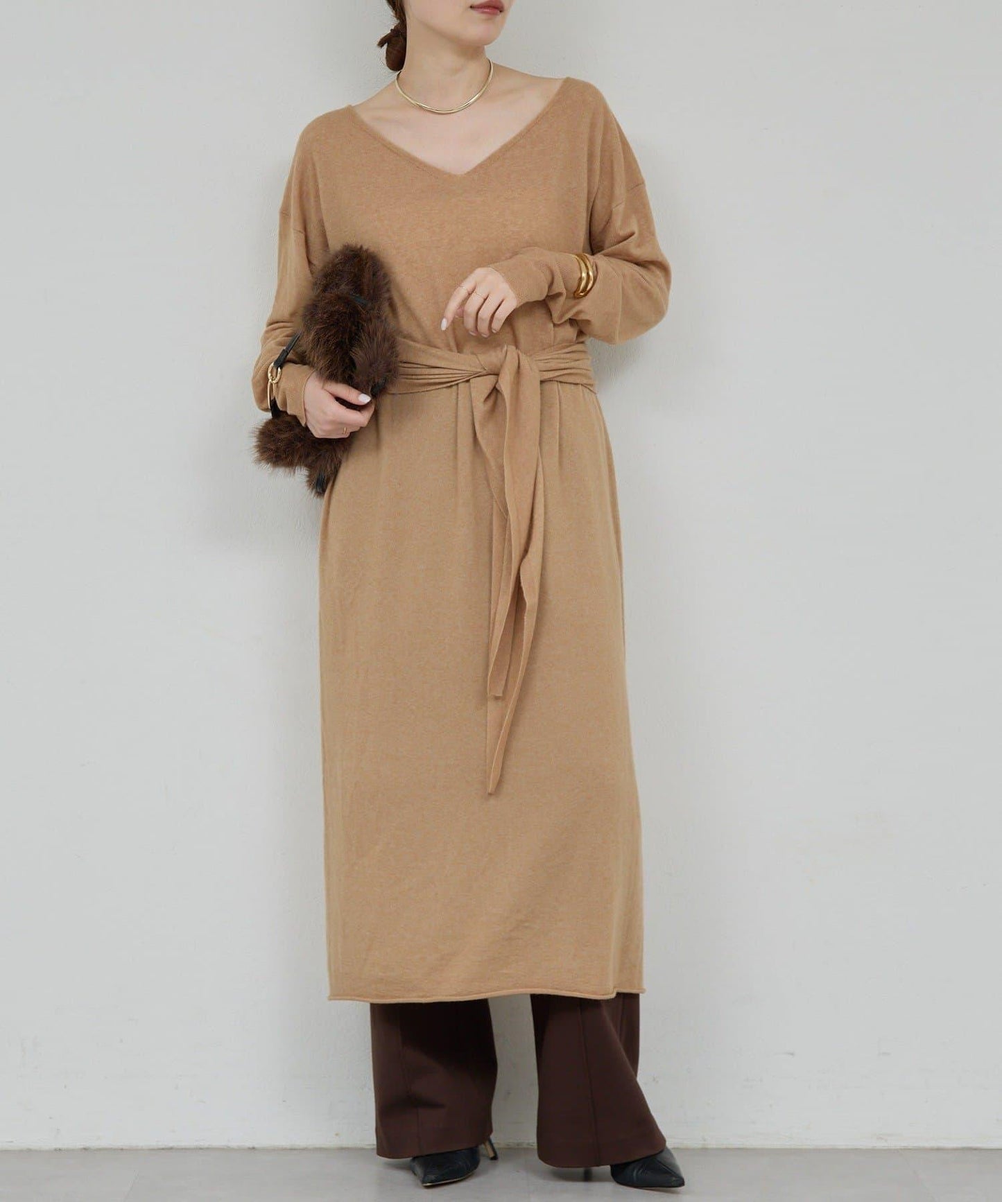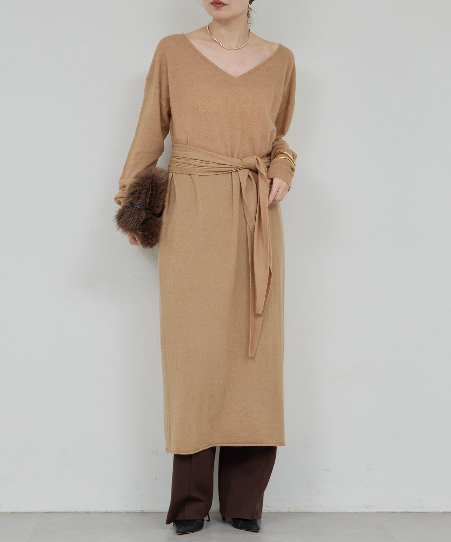 預約商品【25週年紀念款】附腰帶長款針織連衣裙